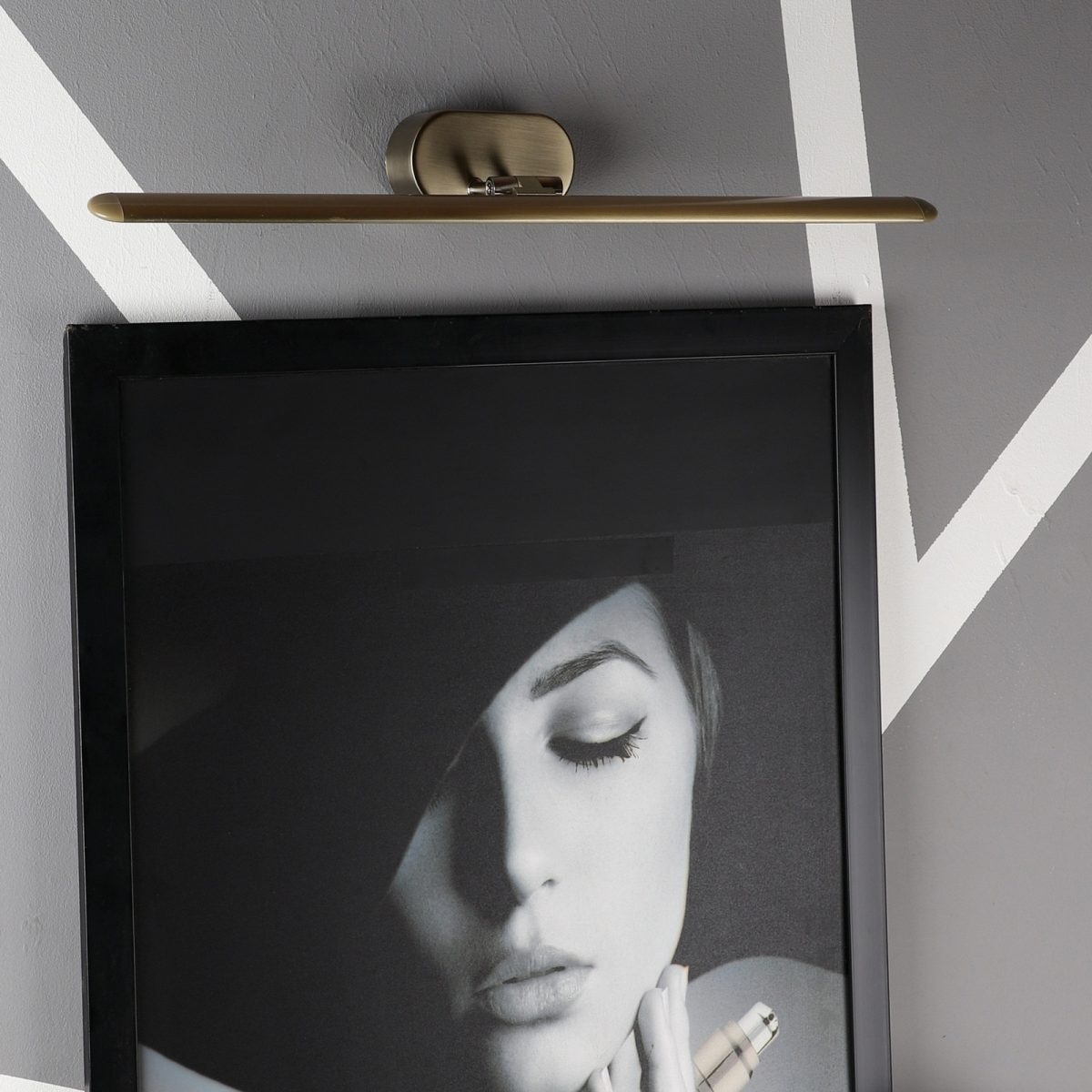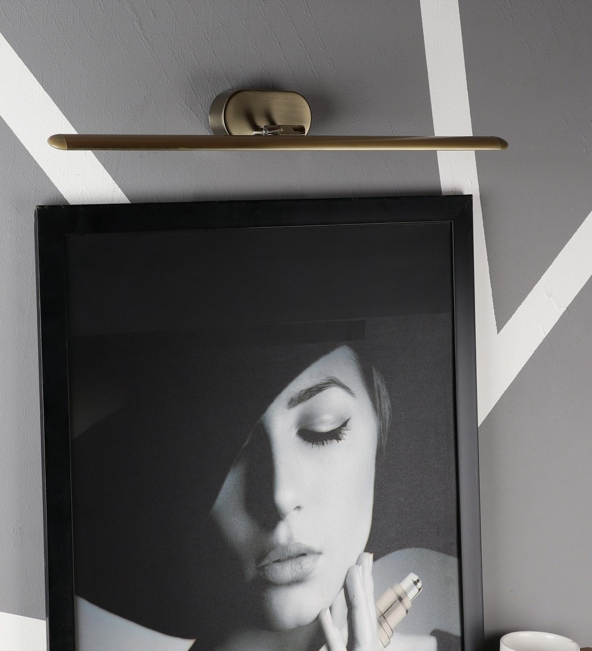 Antique brass finish LED picture light using high quality LED and driver with high success rate having less than 0.5% replacement with warm white (yellow) light output. It features one adjustible point. Its sleek design is preffred by lot of customers. It is usually placed over the painting or a photo frame on the wall. Can also be used above the mirror. It is also available in small size with codes ML338-S