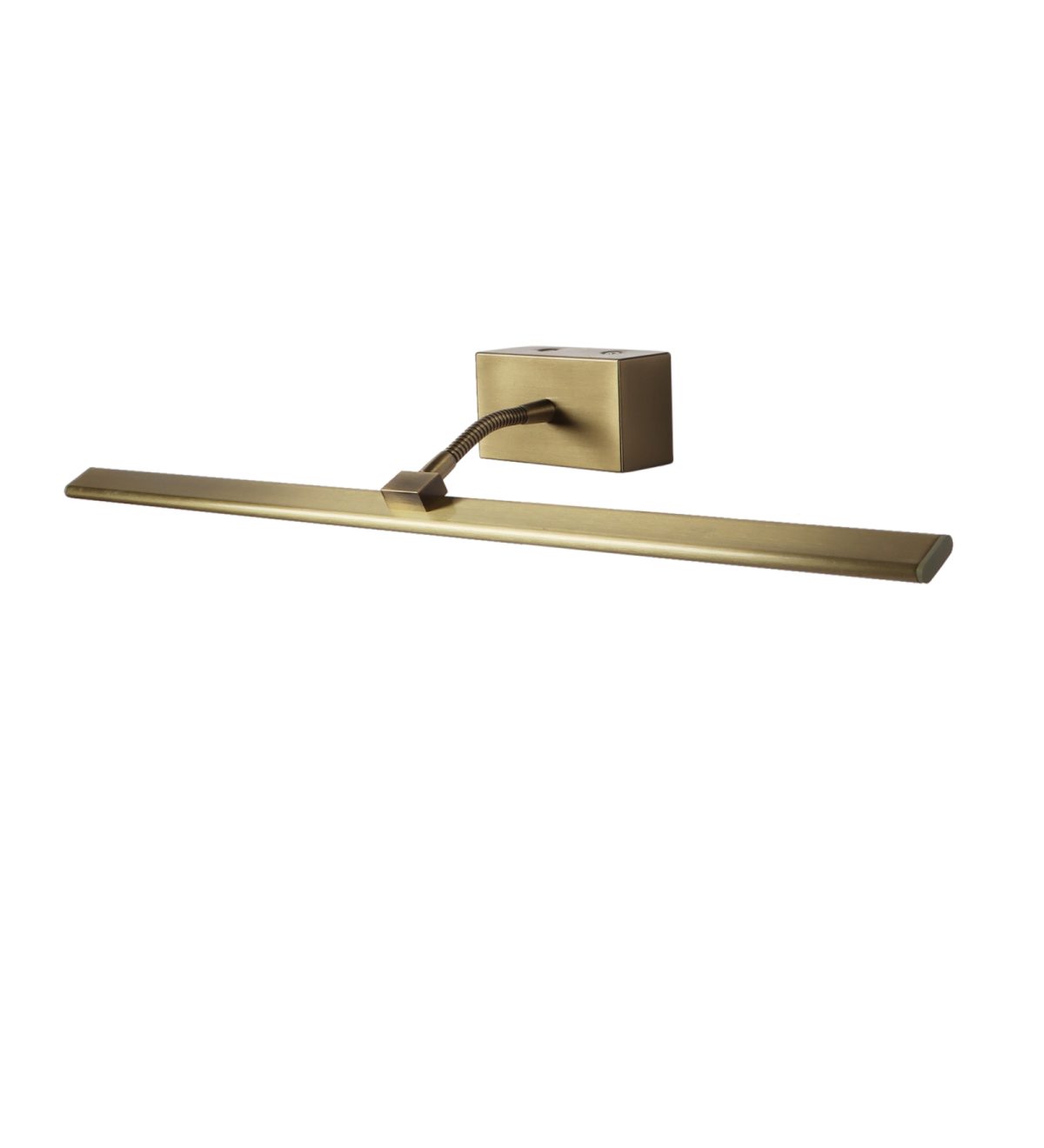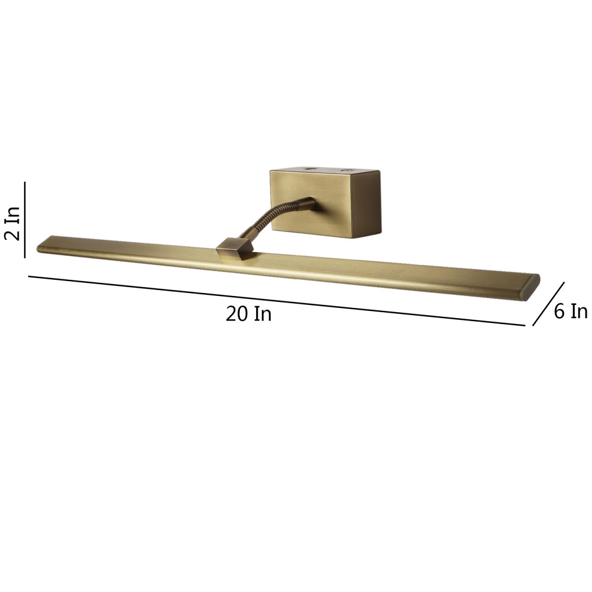 Antique brass finish tricolour LED picture light using high quality LED and driver with high success rate having less than 0.5% replacement. It features one adjustible point. Can be positioned at all angles wherever required. Its sleek design is preffred by lot of customers. It is usually placed over the painting or a photo frame on the wall. Can also be used above the mirror. It is also available in small size with codes ML398-S.
