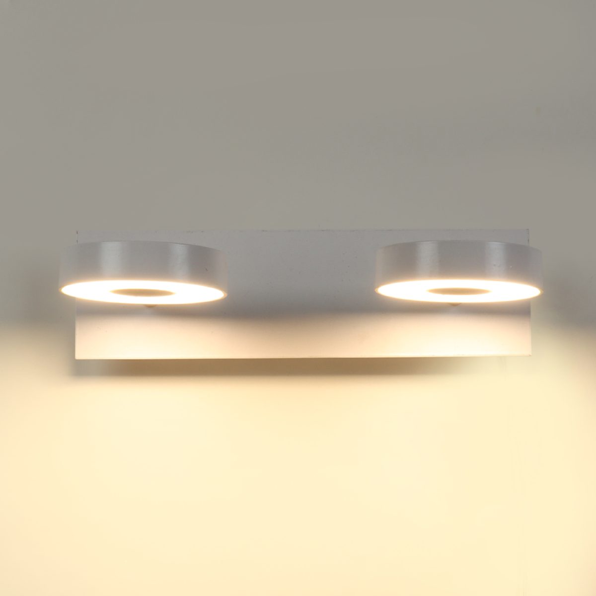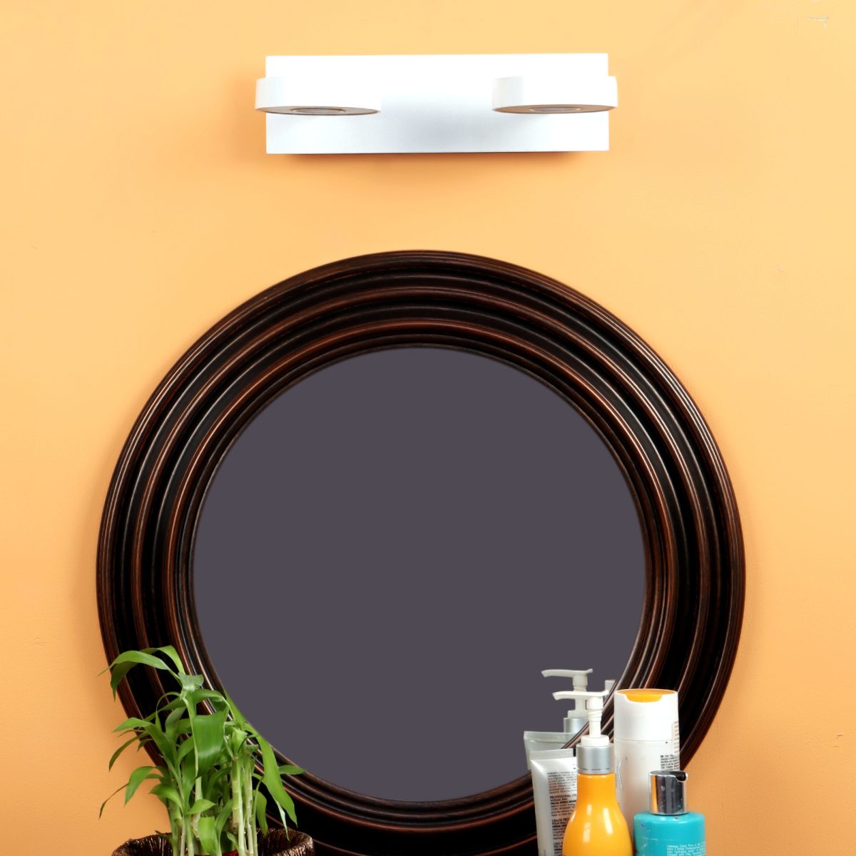 Aluminium die cast, premium powder coated adjustable picture light in white finish. It is having with two spots of 7W each to provide a very bright output. Total wattage is 14 watt having warm white (yellow) light output. The light emitting spot is mounted on a rotatable neck which can be rotated in all the directions enabling spot to be positioned wherever required. Picture lights are functional wall lights which offer a direct light on the object we need to enhance. Can also be made available in white (6000K) and neutral white (4000K) light output for bulk requirement. Also available in one spot and three spot options with code SL96 and ML297-3.