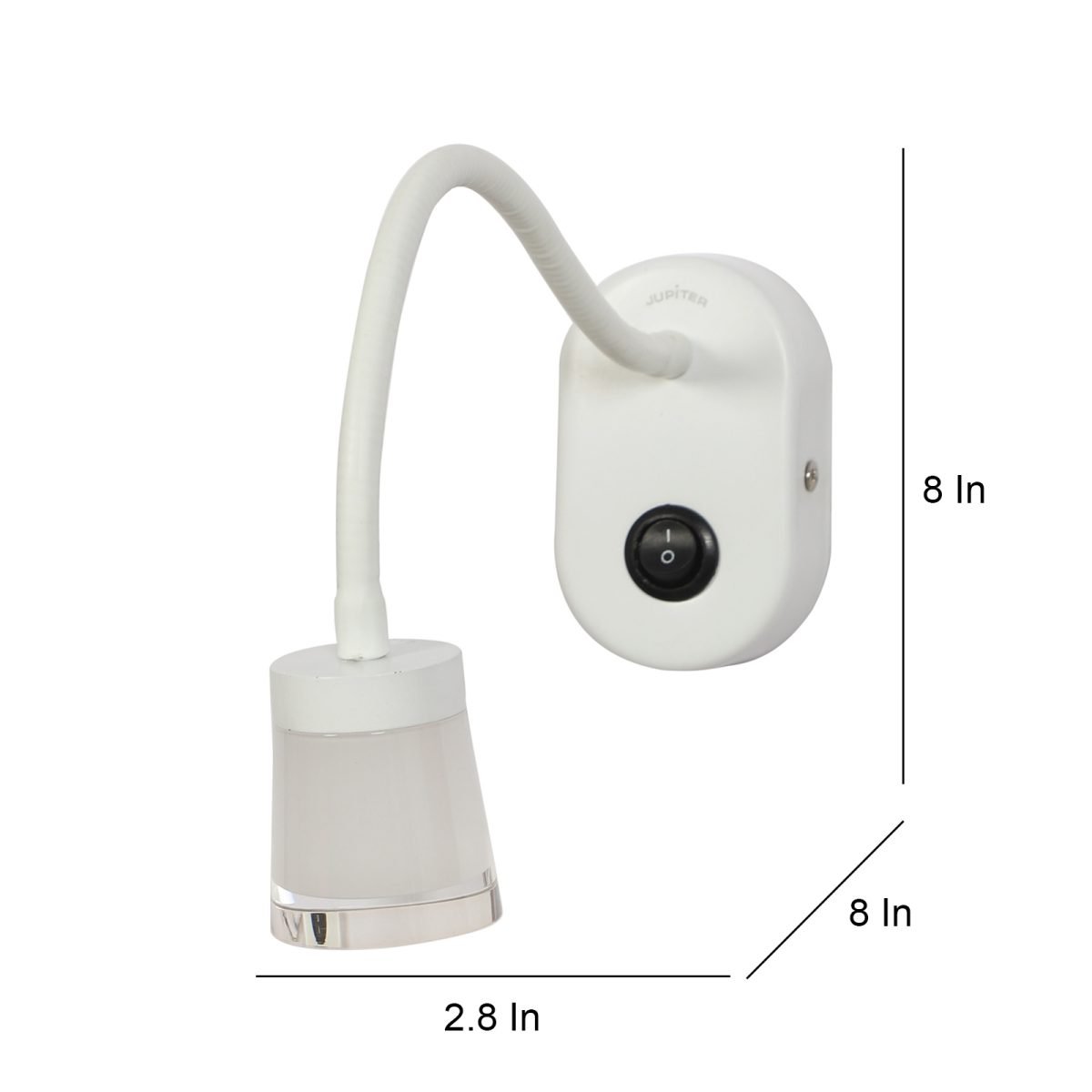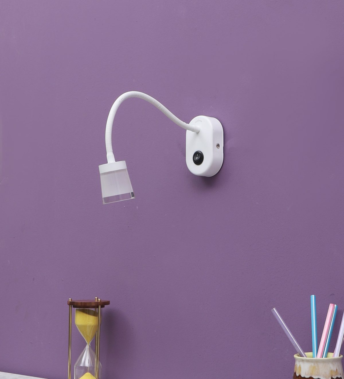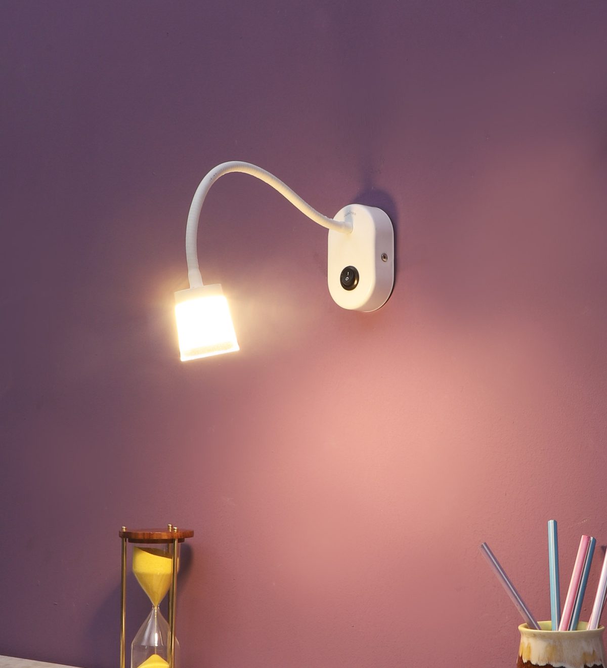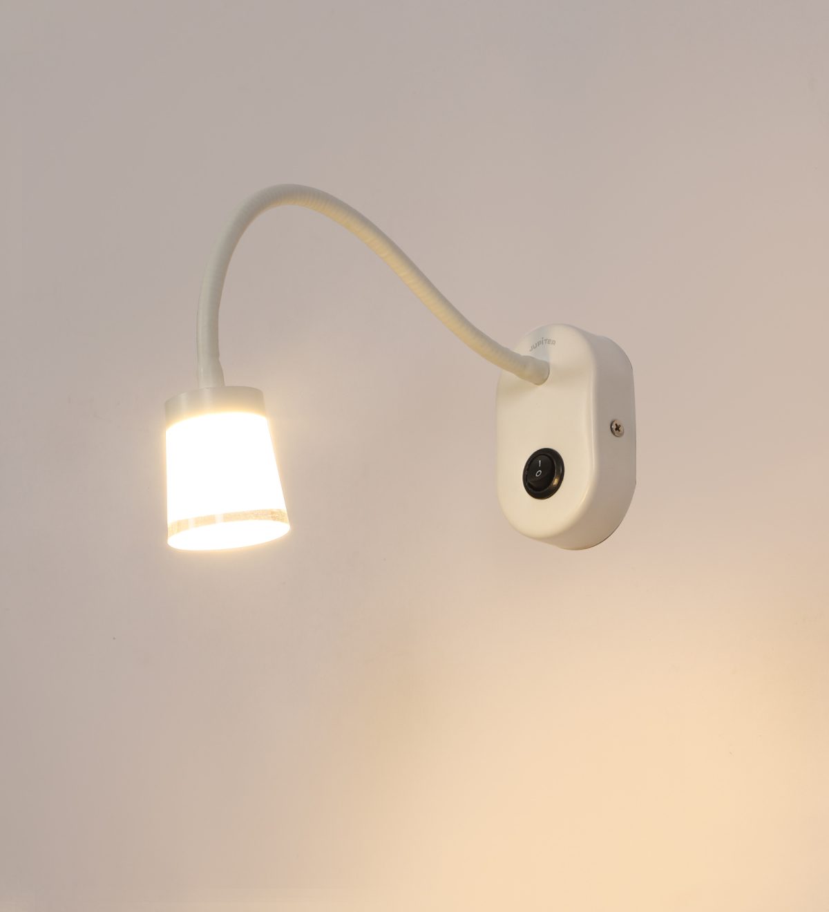 White , sleek, premium, aluminium, mild steel adjustable bed side spot light using high quality LED and driver. Ideal to install on the side of the bed at a low height. This highlights a small area giving yellow light , which can be adjusted by rotating the pipe in any required direction. The sleep of the other person is not disturbed while using this light since the area highlighted is limited. It can also be used as a spot light or a picture light to enhance the look of any object.