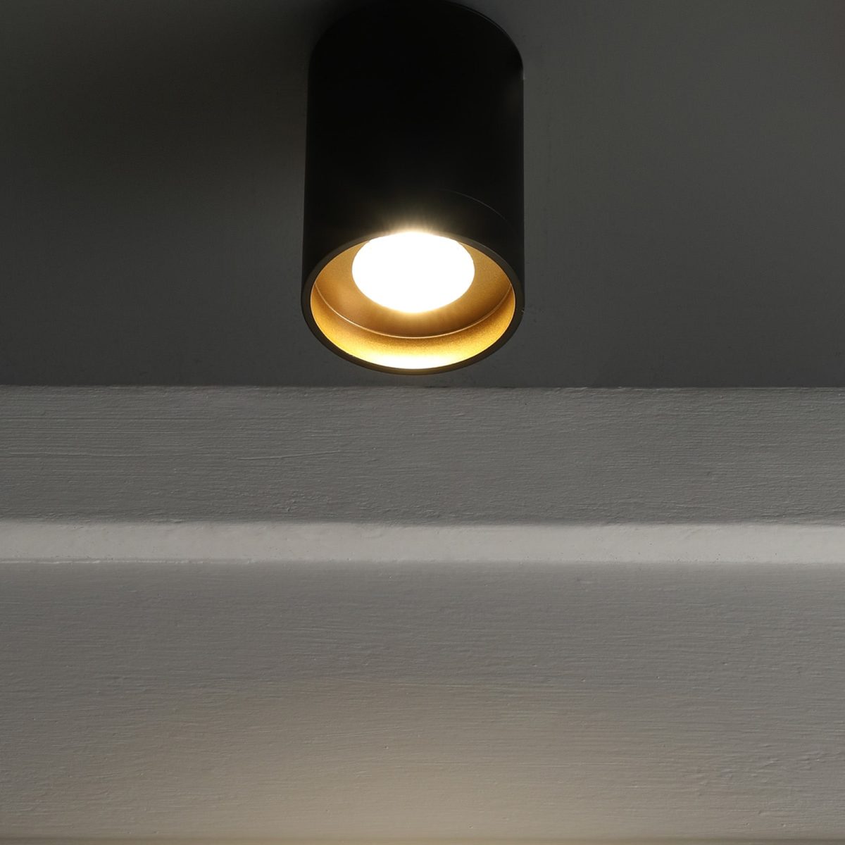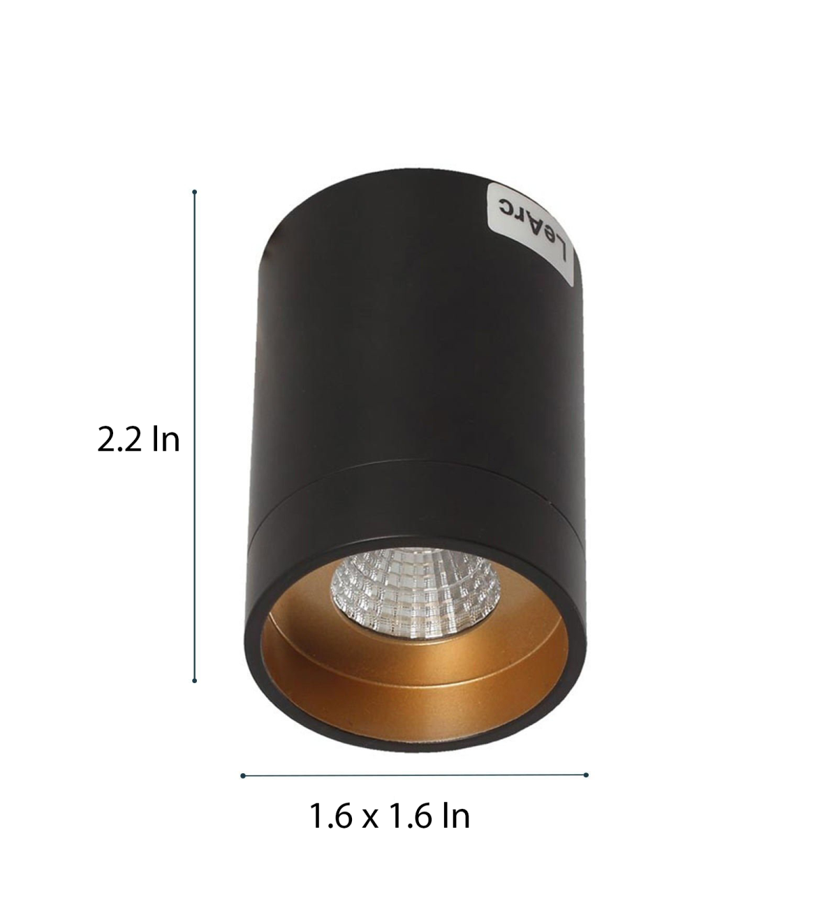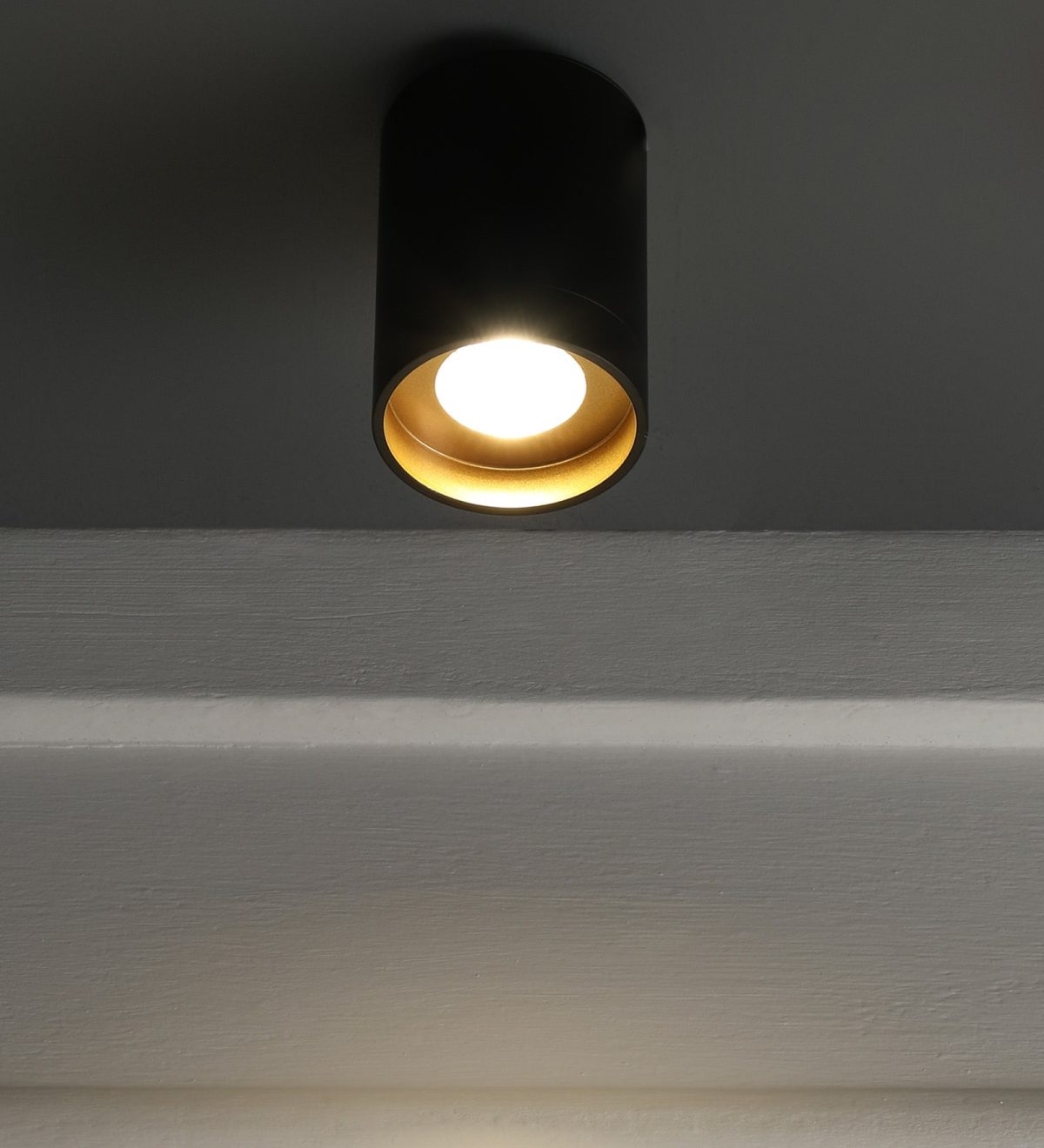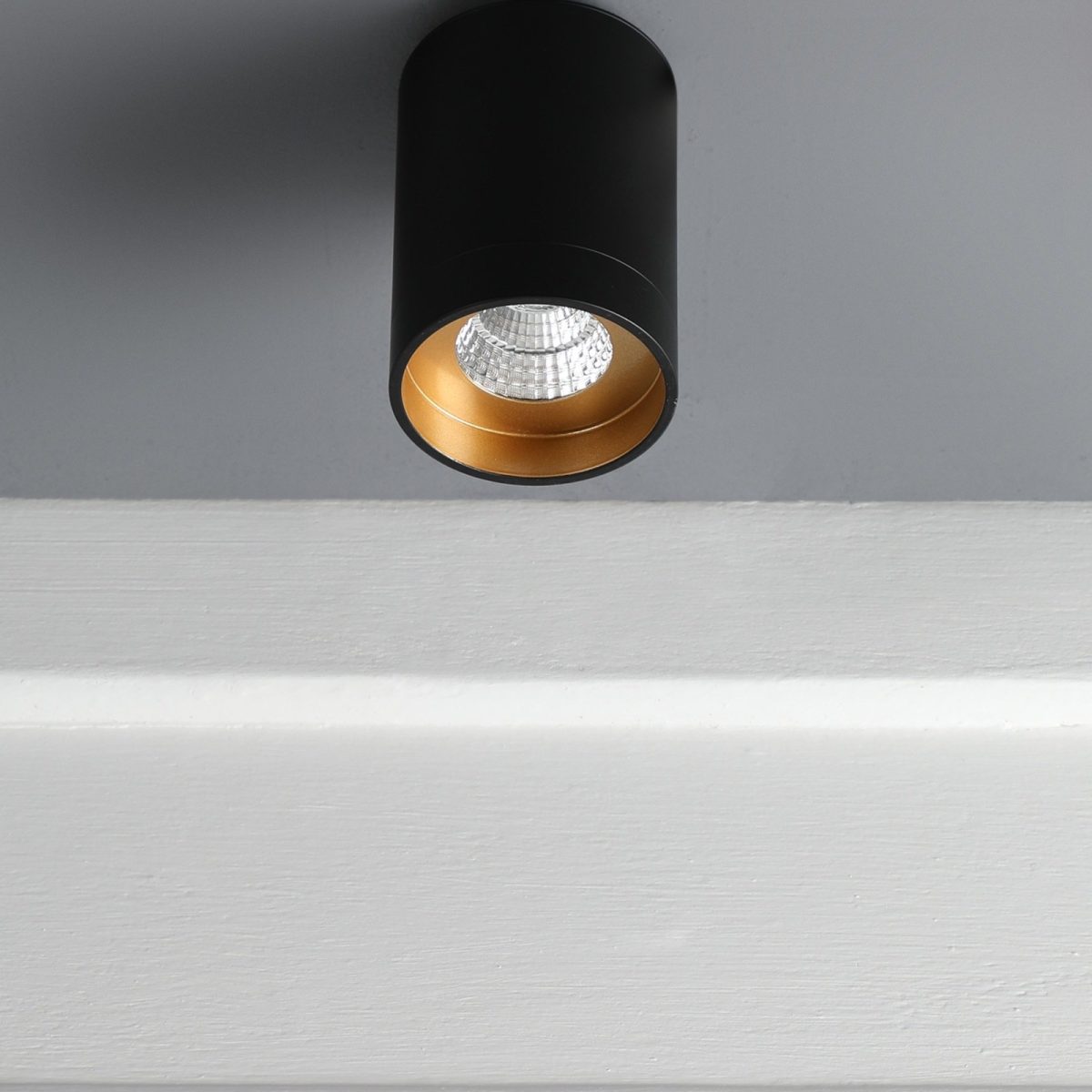 Premium black brush gold ceiling surface light for indoors, outdoors and cabinets.