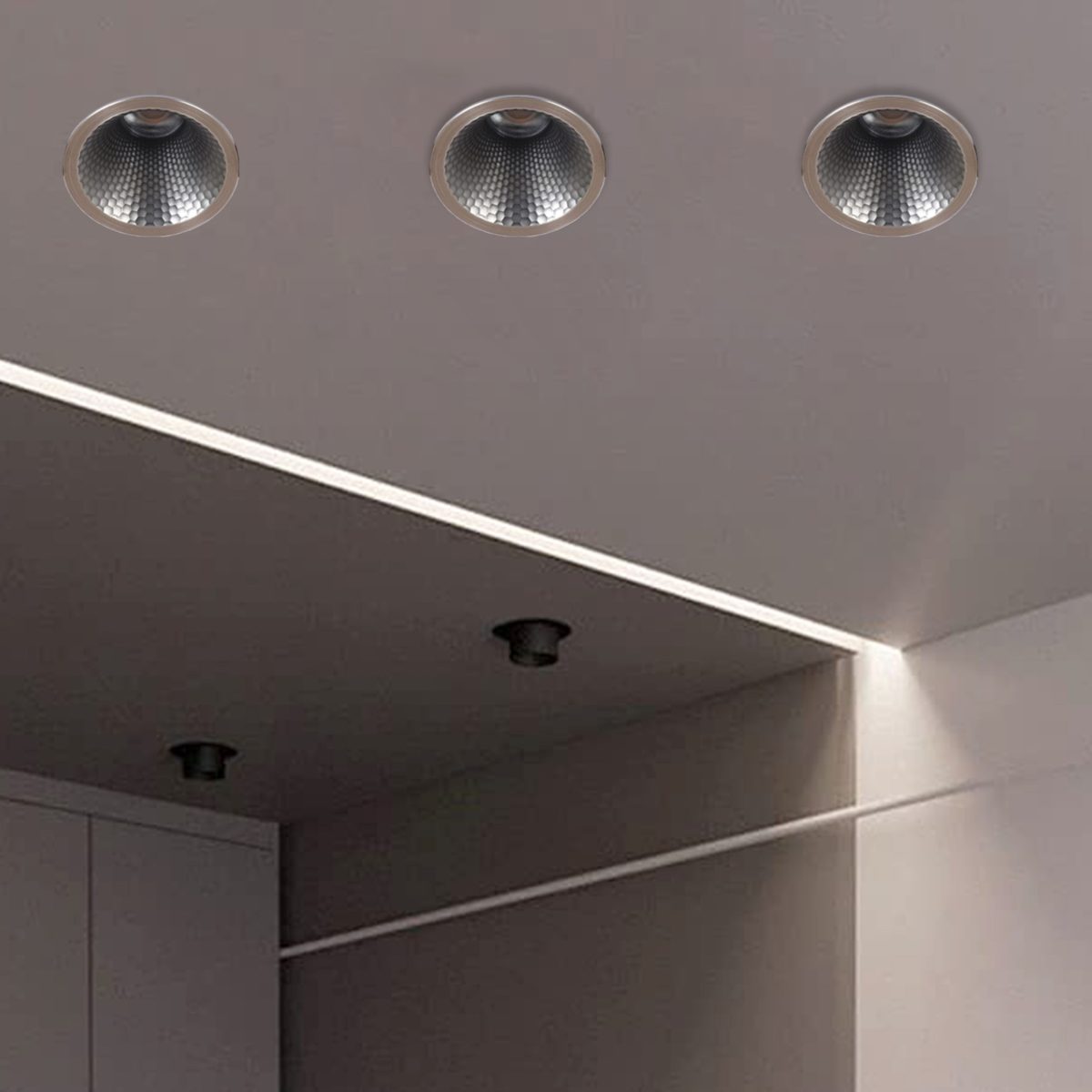 LEARC Premium Titanium finish 21 watt dimmable and tunable (RF, BT, MESH, WIFI) LED downlight.