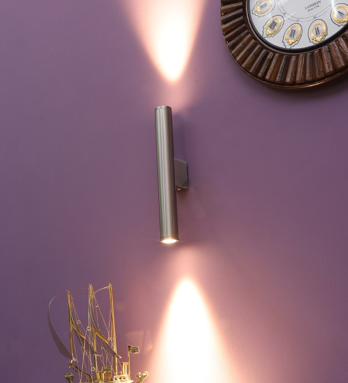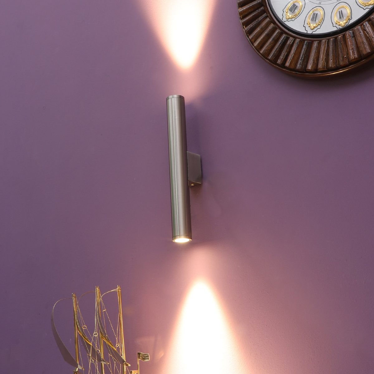 Satin up and down (6*2=12 watt) LED wall light using high quality LED and driver with high success rate having less than 0.5% replacement with warm white (yellow) light output. This design is largely preferred by architects and interior designers. Application includes both residential and commercial premises. Also used as a wall highlighter. Can be customized as per requirement.