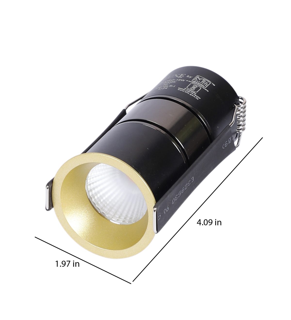 LEARC ultra thin high wattage 2 inch 15 watt gold Bridgelux LED extra bright recessed light.