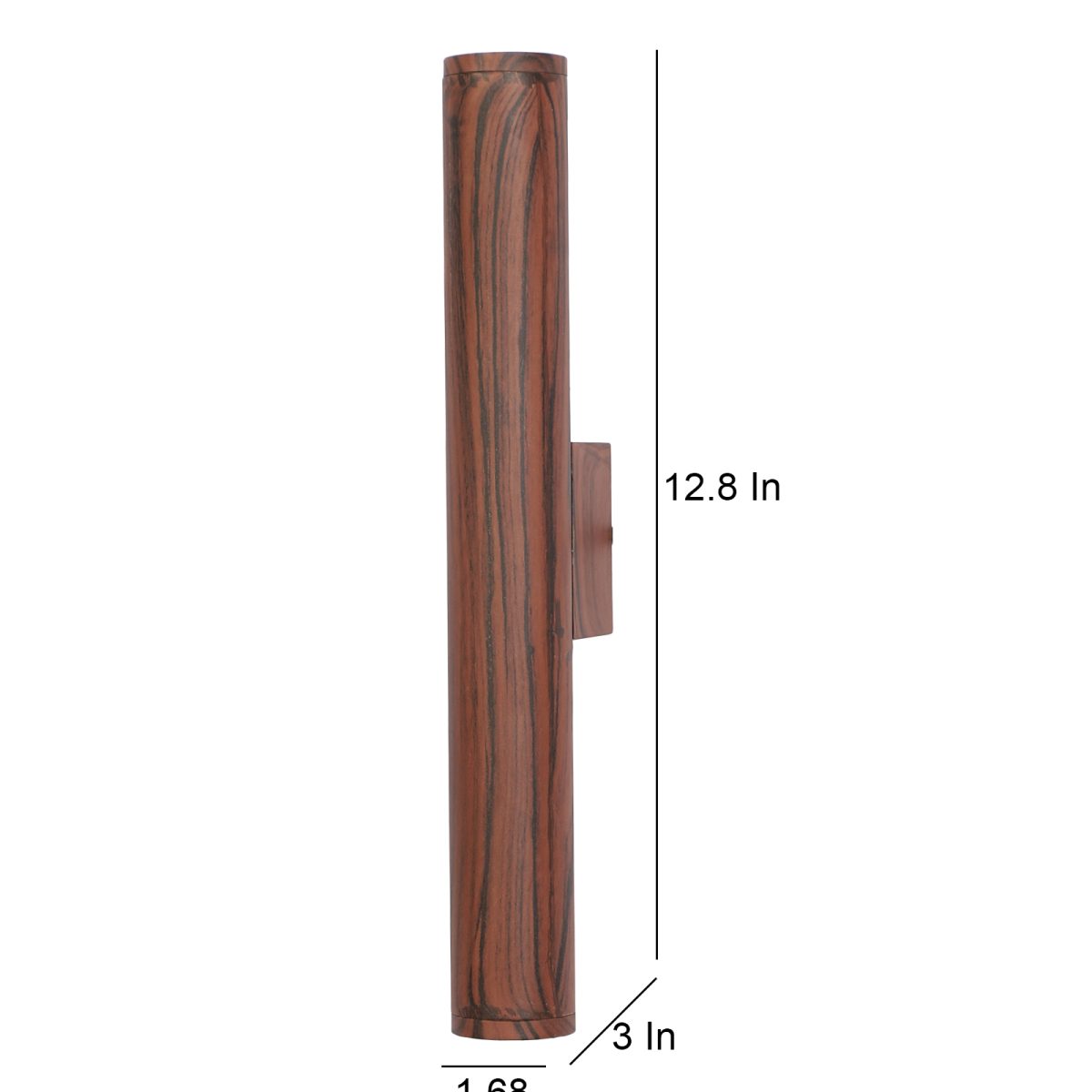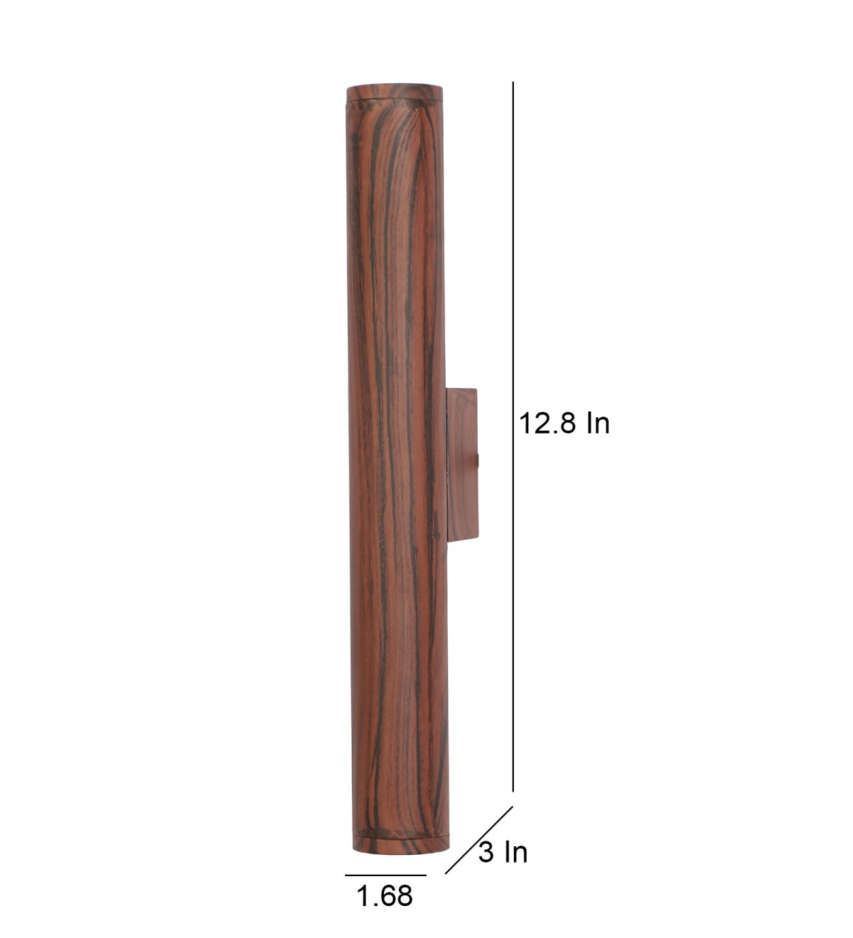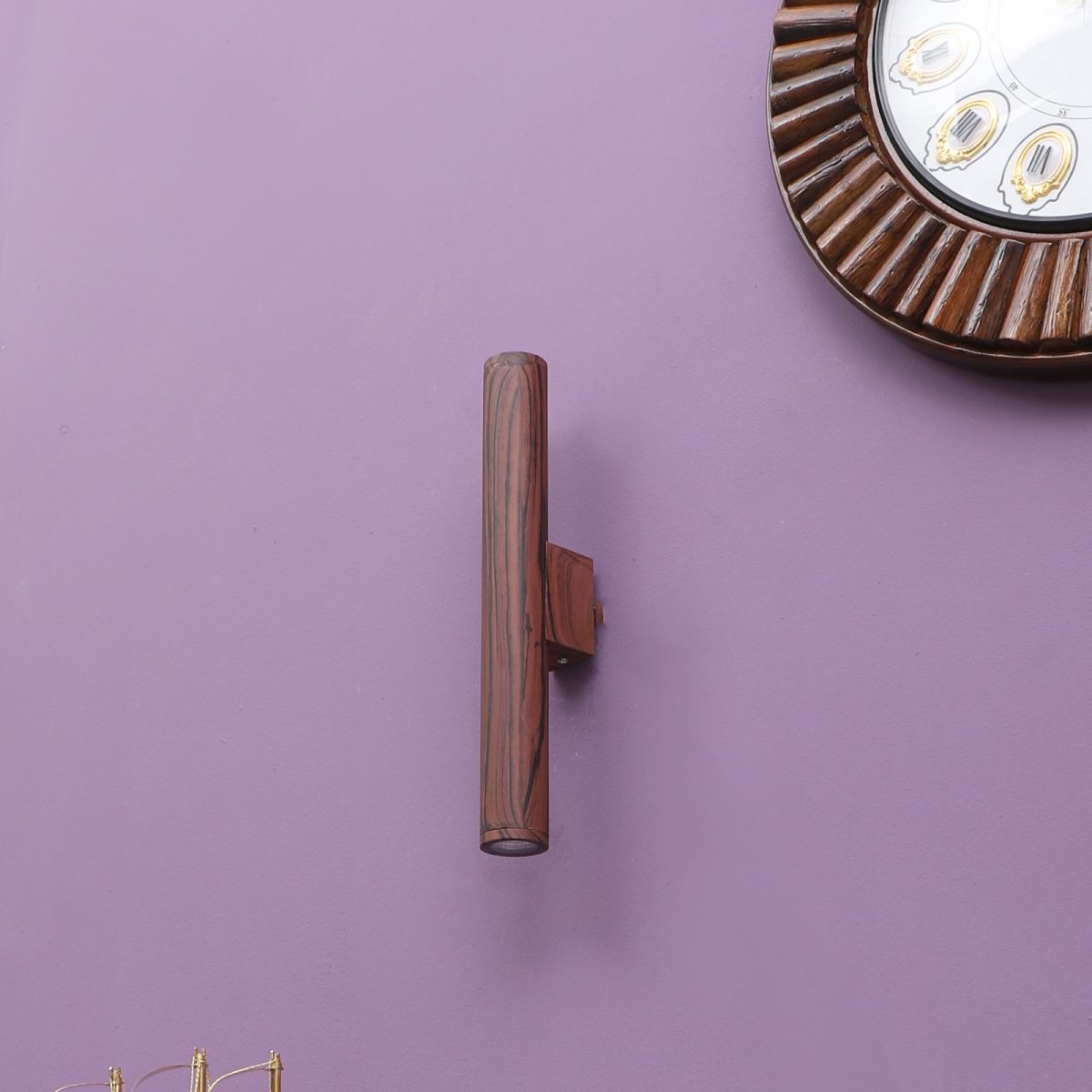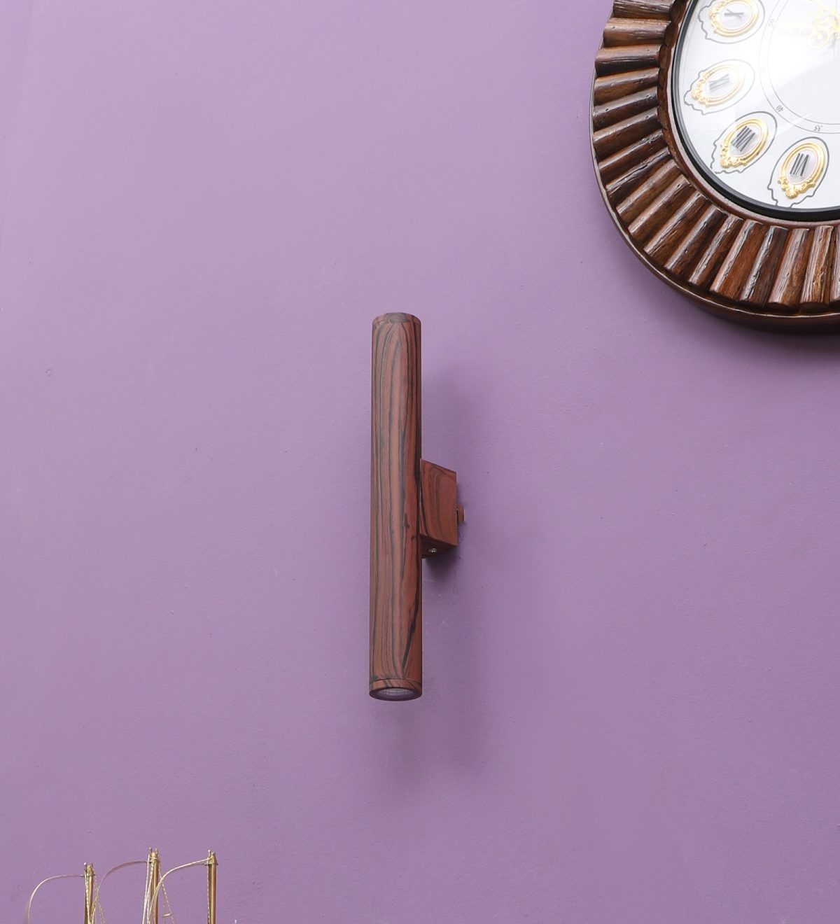 Brown (premium wood finish with grains) up and down (6*2=12 watt) LED wall light using high quality LED and driver with high success rate having less than 0.5% replacement with warm white (yellow) light output. This design is largely preferred by architects and interior designers. Application includes both residential and commercial premises. Also used as a wall highlighter. Can be customized as per requirement.