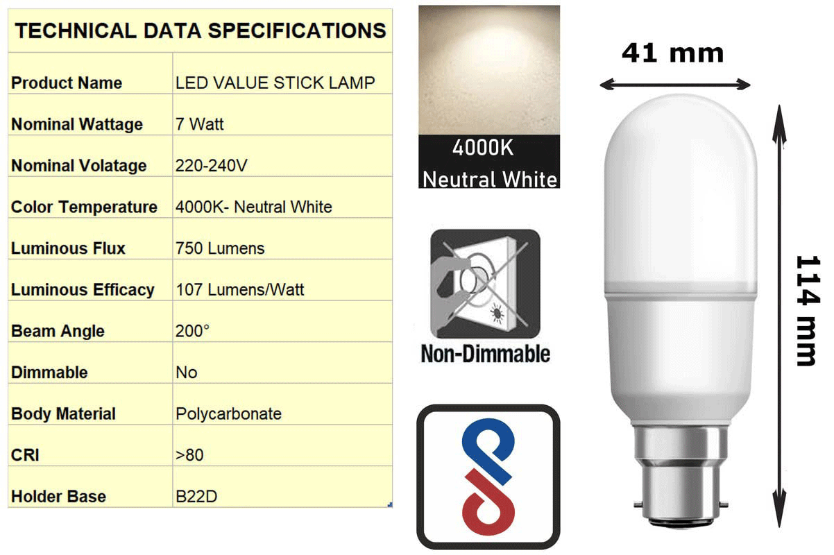 OSRAM LEDVANCE LED VALUE STICK 7W B22 CANDLE LAMP COOL DAY LIGHT WHITE 6500K LA1024