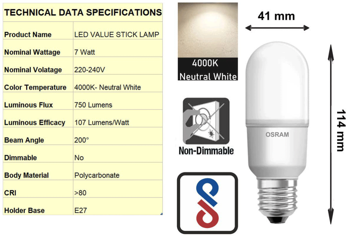 OSRAM LEDVANCE LED VALUE STICK 7W E27 CANDLE LAMP WARM WHITE YELLOW 2700K LA1019