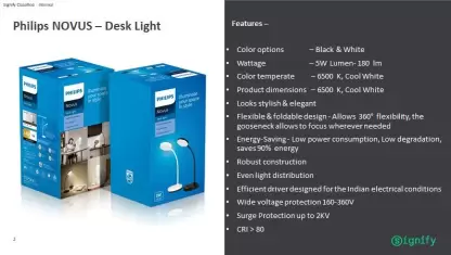 PHILIPS COSMOS 5 WATT LED TOUCH CONTROLLED DIMMABLE RECHANGABLE TABLE STUDY AND DESK LAMP WITH WHITE LIGHT PH1530
