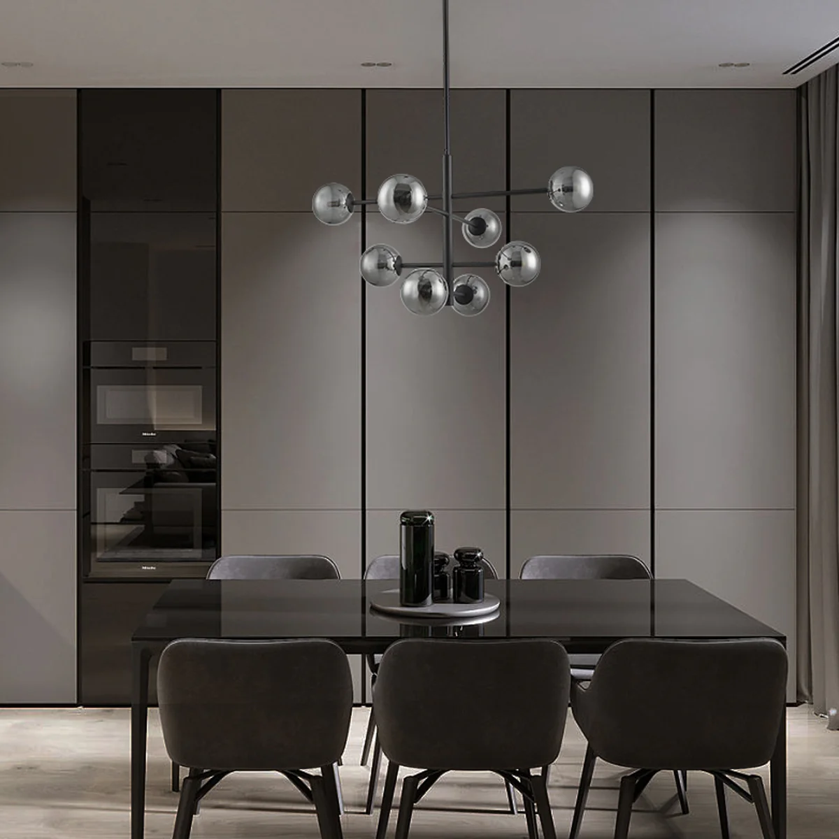 Warmth and ambience CELESTIAL series of fixtures, with their contemporary designs, will lend warmth and create a delectable ambience in your abode. This particular fixture comes with 8 smoky black heads, which will ooze out warmth when lit, and be a style statement on its own when not lit up.