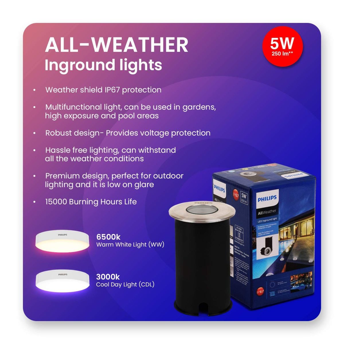 *Hassle free lighting, can withstand all weather conditions.