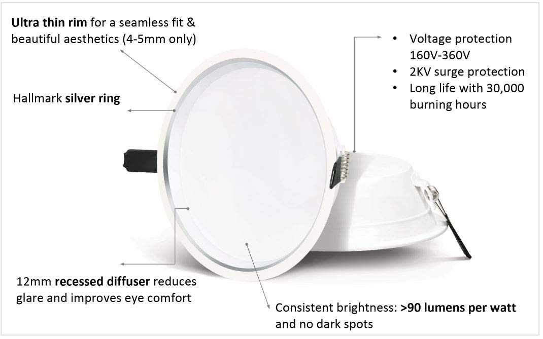 • Decorative finish downlighter with hallmark silver ring for beautiful aesthetics