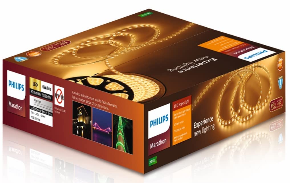 PHILIPS MINI MARATHON 72 LED PER METER ROPE LIGHT 6 WATT PER METER WATERPROOF IP65 20 METER WARM WHITE (YELLOW) PH1453