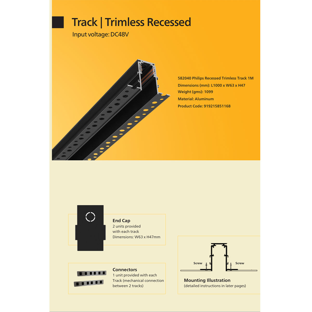 PHILIPS WEBBER 582040 RECESSED TRIMLESS TRACK CHANNEL 1 METER.