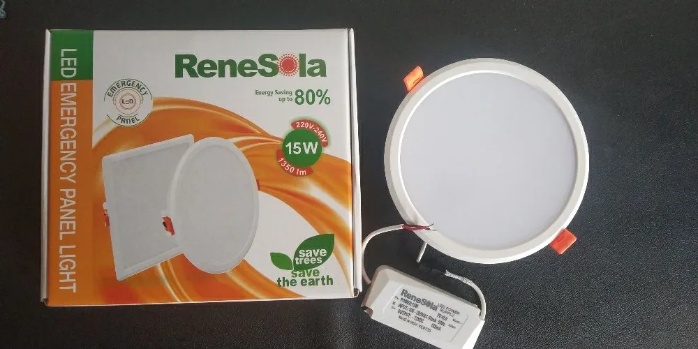 RENESOLA 15 WATT PC EMERGENCY PANEL LIGHT SQ WHITE LIGHT WITH UPTO 4 HOUR BACKUP RN1084.