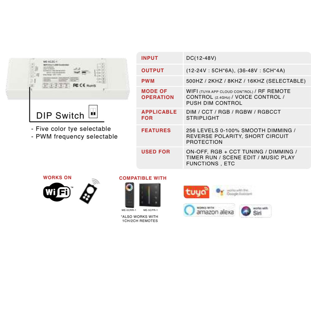 RF and WiFi controller for 5 channel for DIM / CCT / RGB / RGBW / RGBCCT STRIPLIGHT
