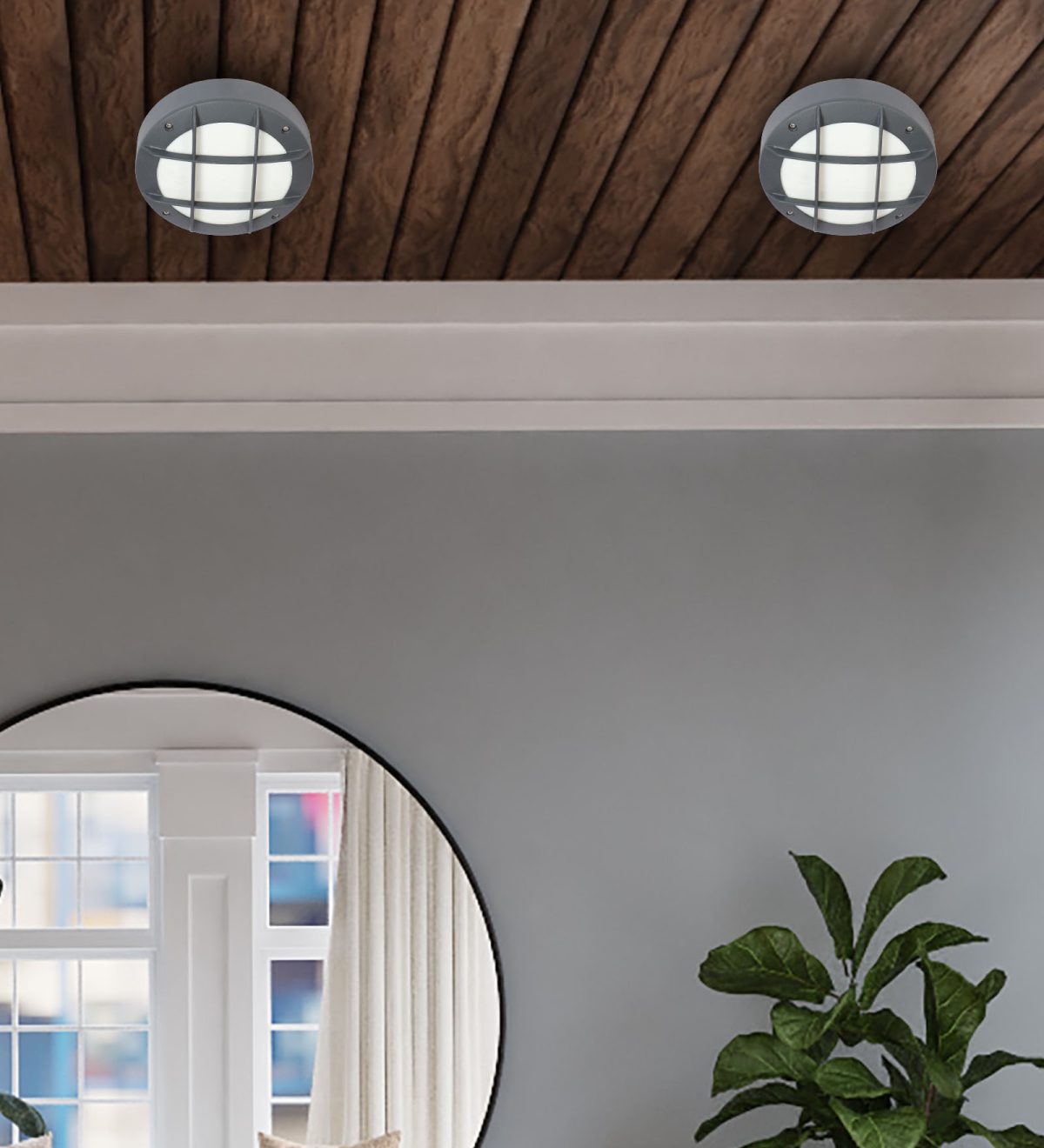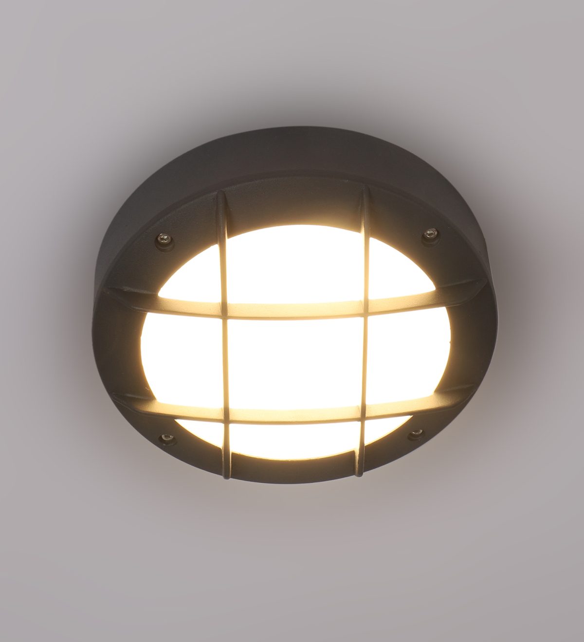 SUPERSCAPE aluminium 10 watt round half cut LED Bulkhead grey with high quality acrylic diffuser,Top branded LED, Philips driver 3K BUL41