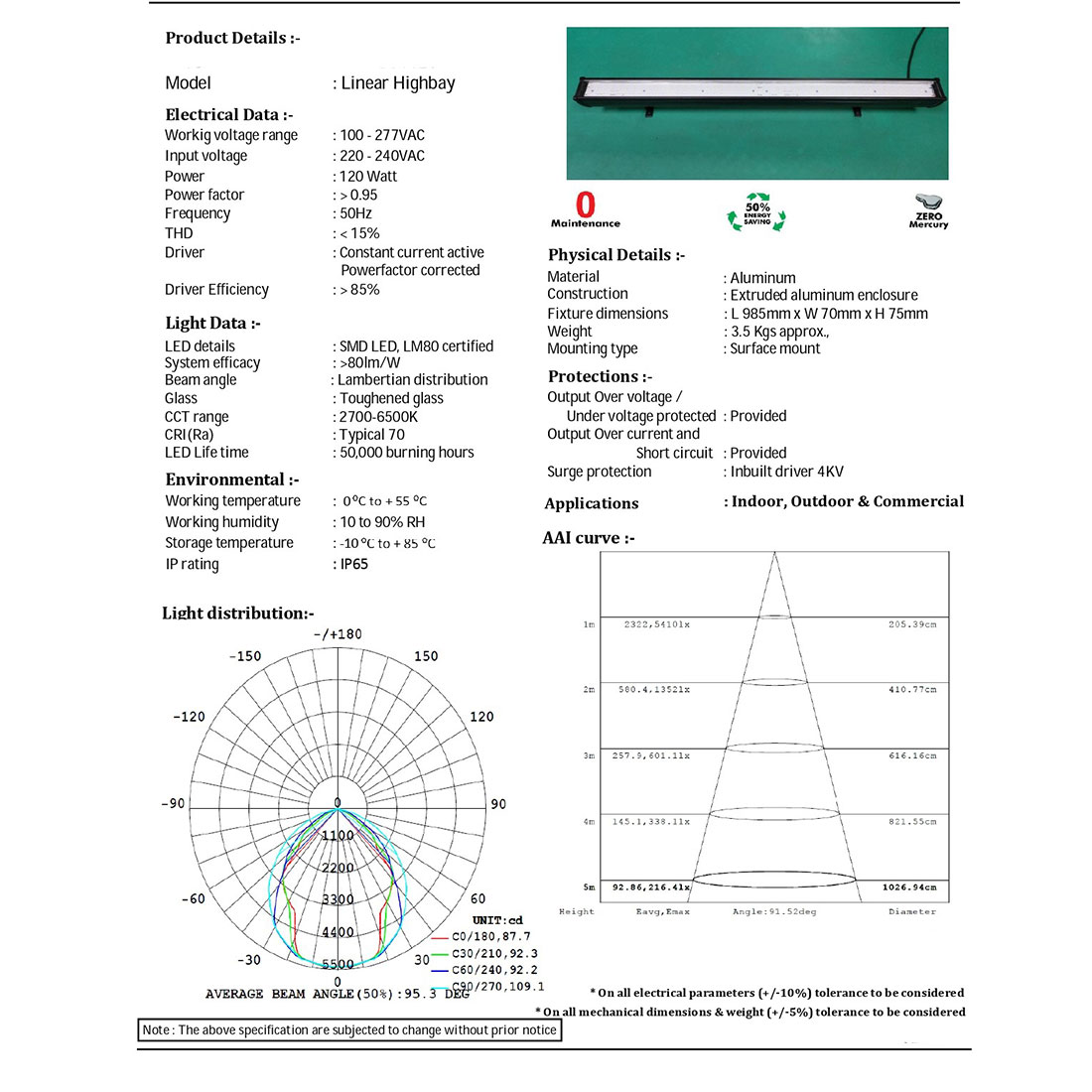 SUPERSCAPE 120 watt 39 inch Linear High bay light with glass.