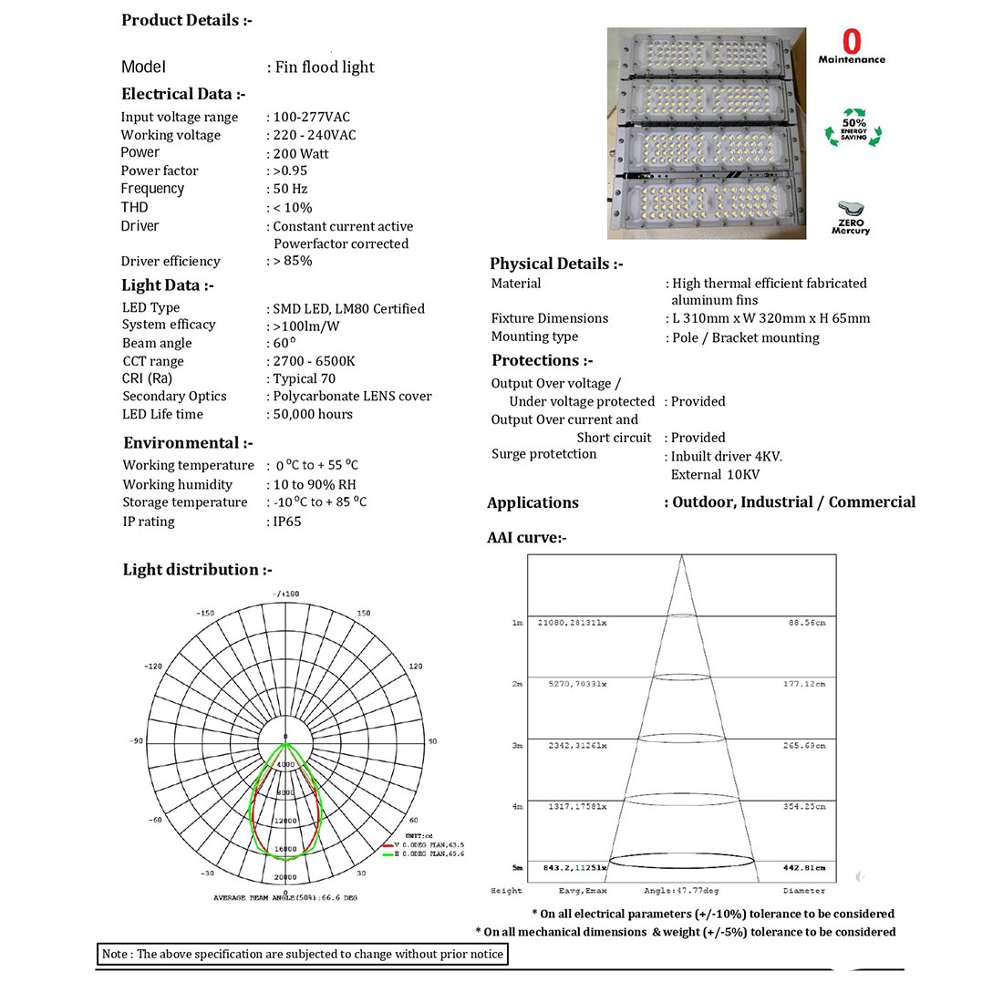 | Lamp Type | SMD HIGH POWER LED LM80 certified |