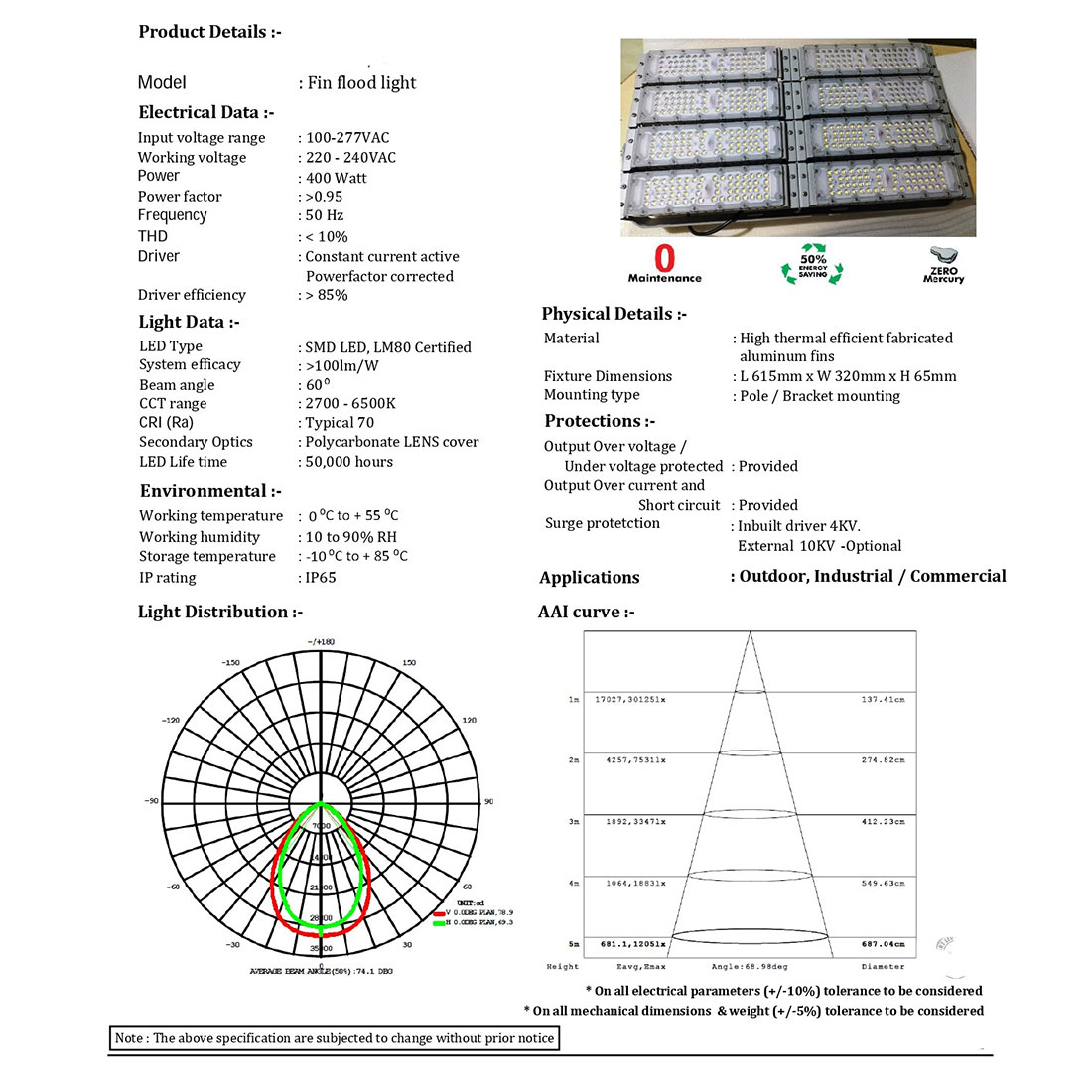 | Lamp Type | SMD HIGH POWER LED LM80 certified |