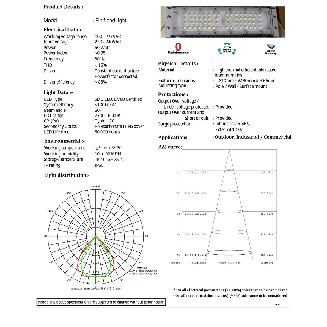 | Lamp Type | SMD HIGH POWER LED LM80 certified |