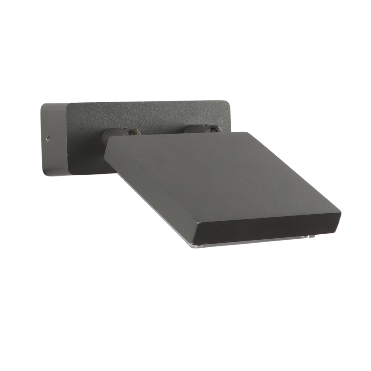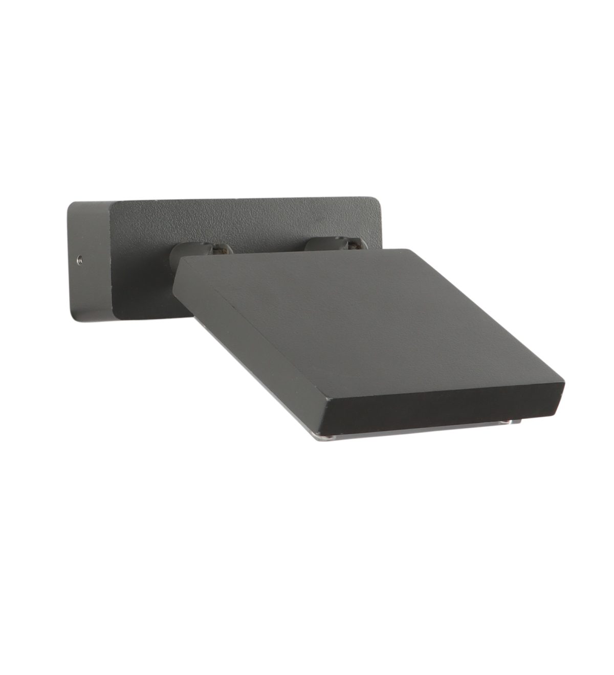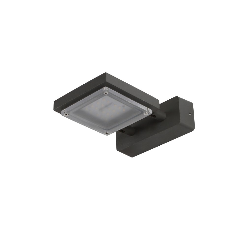 Compact, rectangular, aluminium die cast modern outdoor wall mounted adjustible spot light in grey finish, using high quality LED and driver with high success rate having less than 0.5% replacement. IP54 rated, providing protection from sprayed water in any direction and making this light perfect for use outdoors. It can also be used in indoor applications. Application areas include Stair case walls, passage to staircase, terrace walls, terrace gardens outdoor walls, boundary walls, open parking, stilt parking, basement parking, balcony, highlighting name plate.