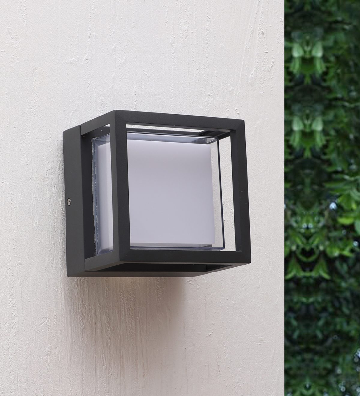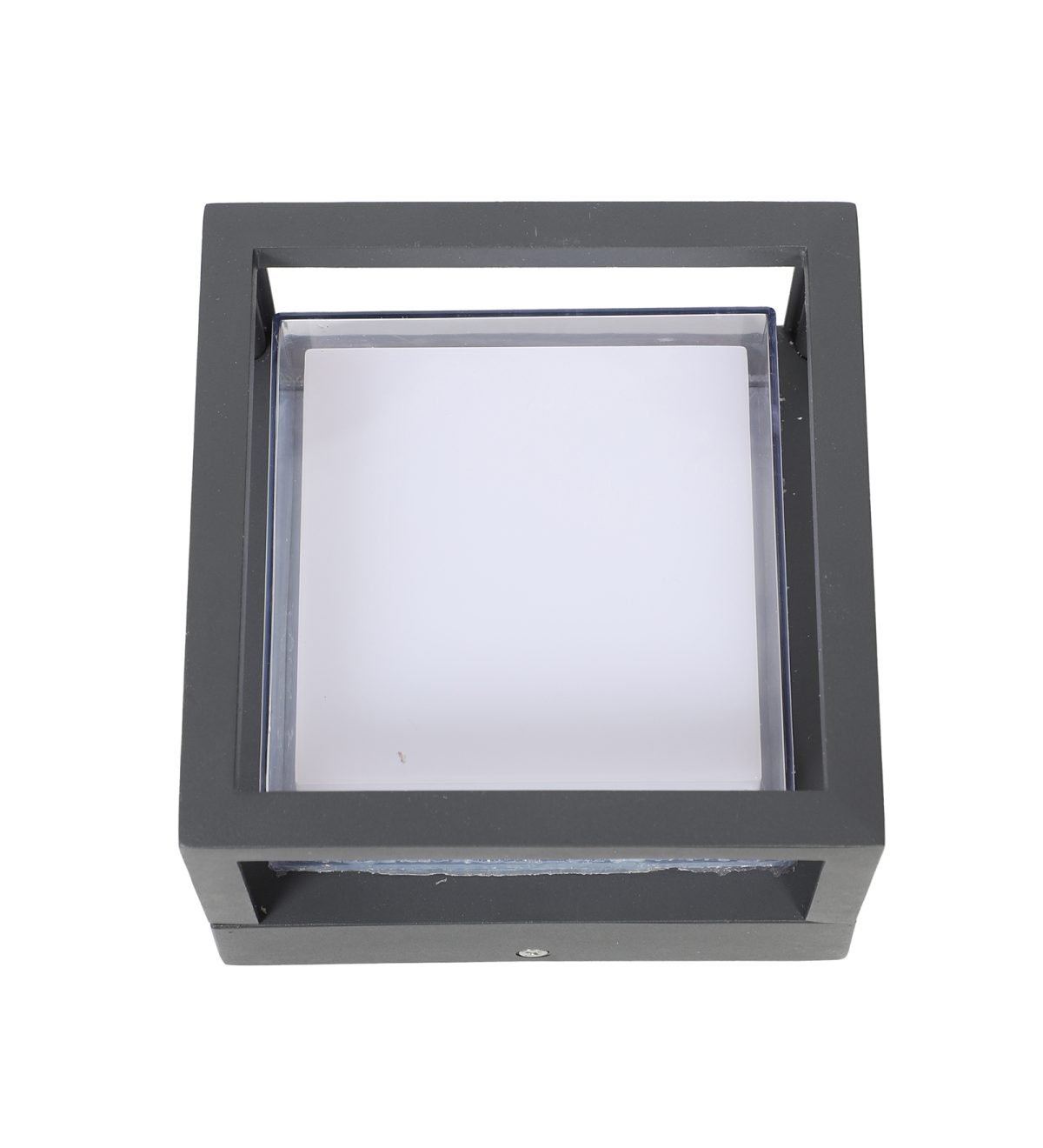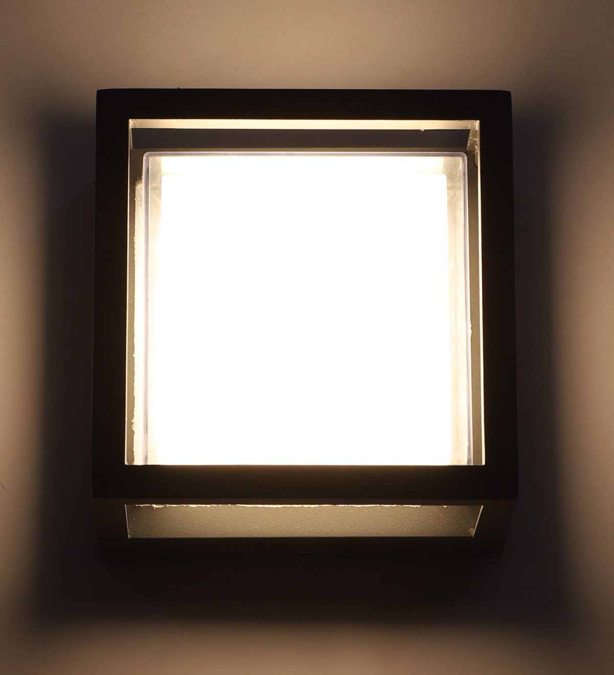 Square aluminum die cast 12 watt outdoor wall light in grey finish using high quality LED and driver. It is a compact light with bright output spreaded uniformly in all the directions for a good visual effect. It can be used in both indoor and outdoor applications such as stair case walls, terrace walls, outdoor walls, boundary walls, open parking, stilt parking, basement parking, passage walls, entrance pillars.. Can also be used as a ceiling light.