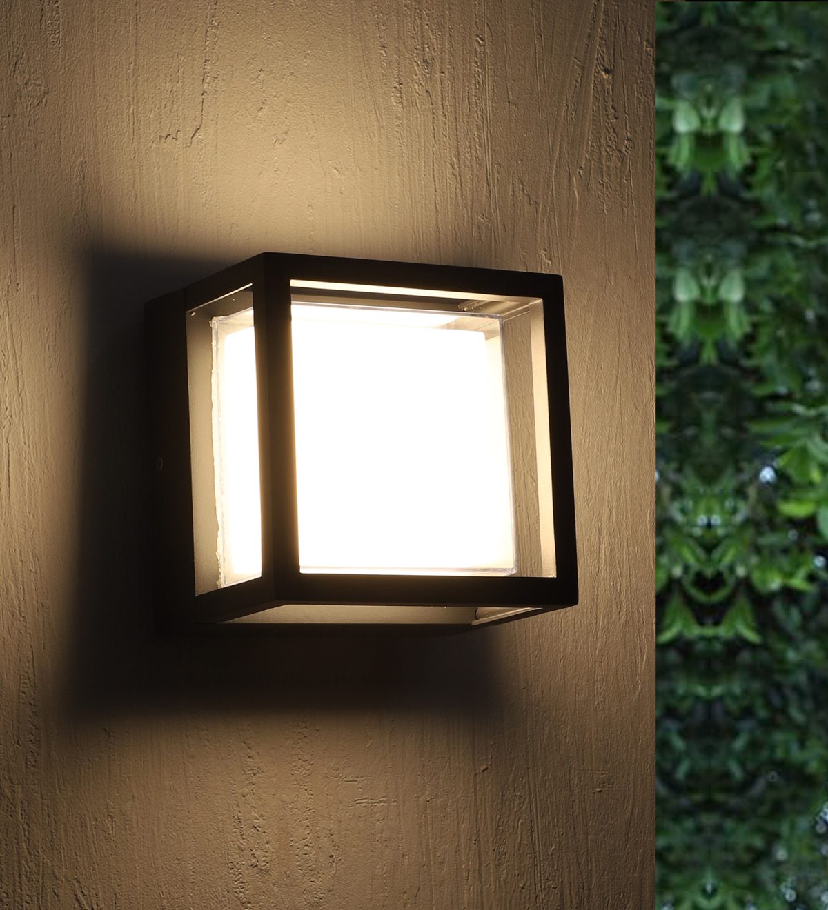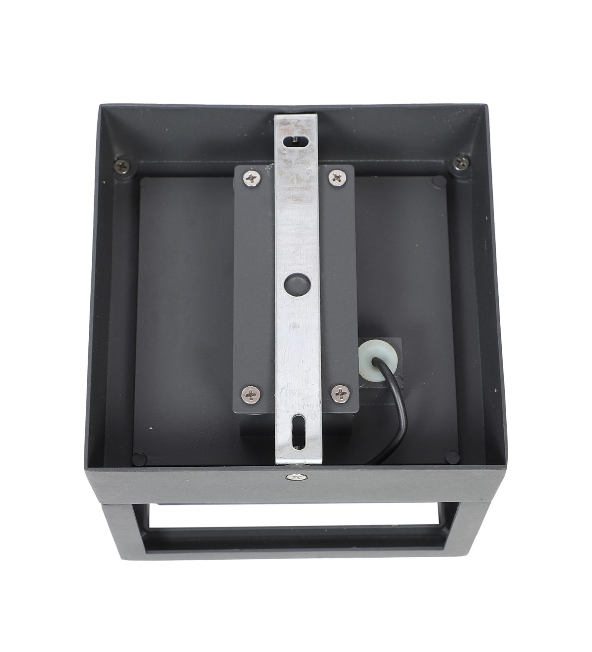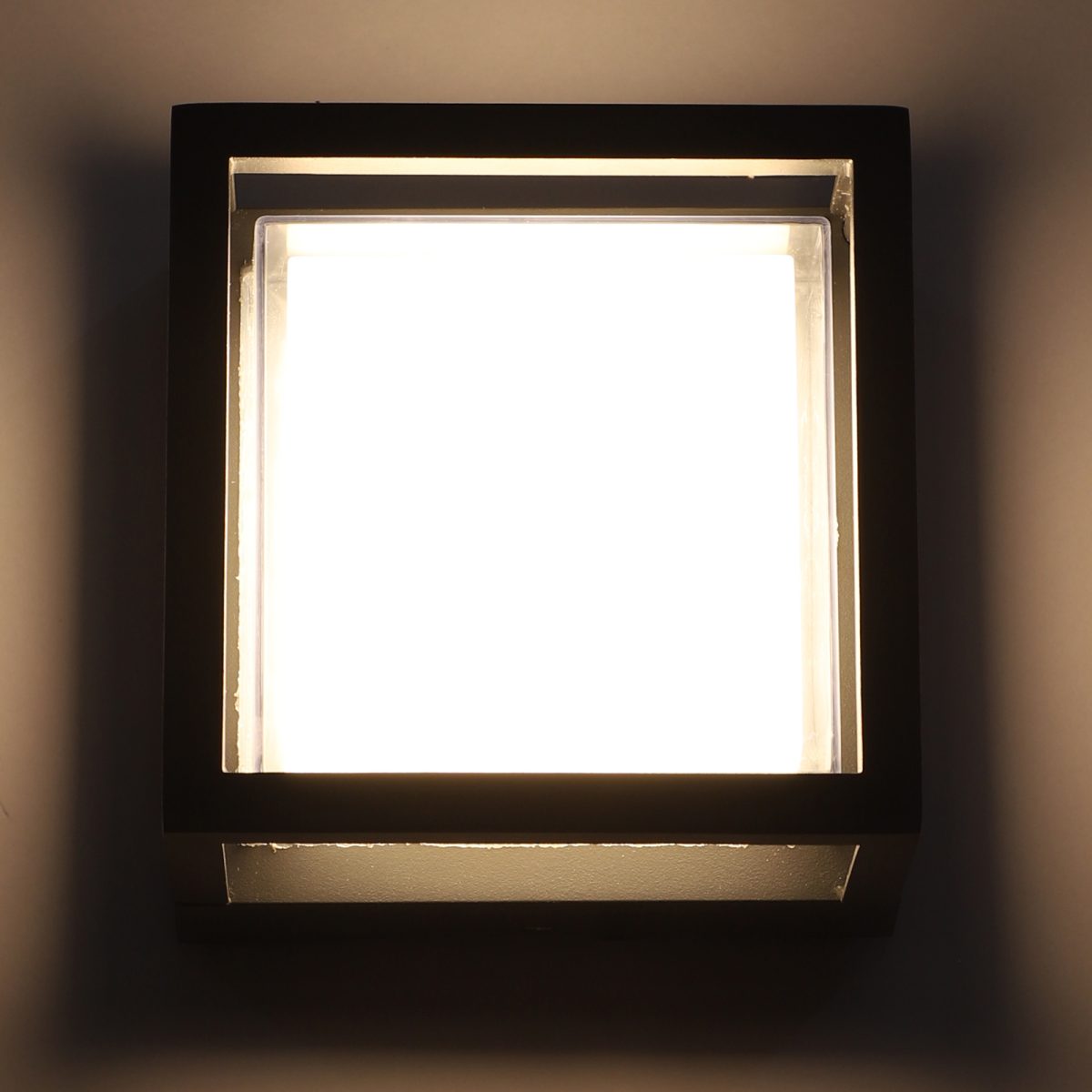 Square aluminum die cast 12 watt outdoor wall light in grey finish using high quality LED and driver. It is a compact light with bright output spreaded uniformly in all the directions for a good visual effect. It can be used in both indoor and outdoor applications such as stair case walls, terrace walls, outdoor walls, boundary walls, open parking, stilt parking, basement parking, passage walls, entrance pillars.. Can also be used as a ceiling light.