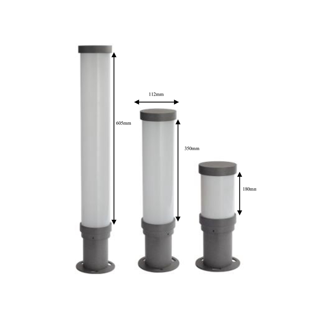 SUPERSCAPE premium aluminium 12 inch 12 watt LED bollard grey with top branded LED driver and acrylic diffuser 3K K1290-S