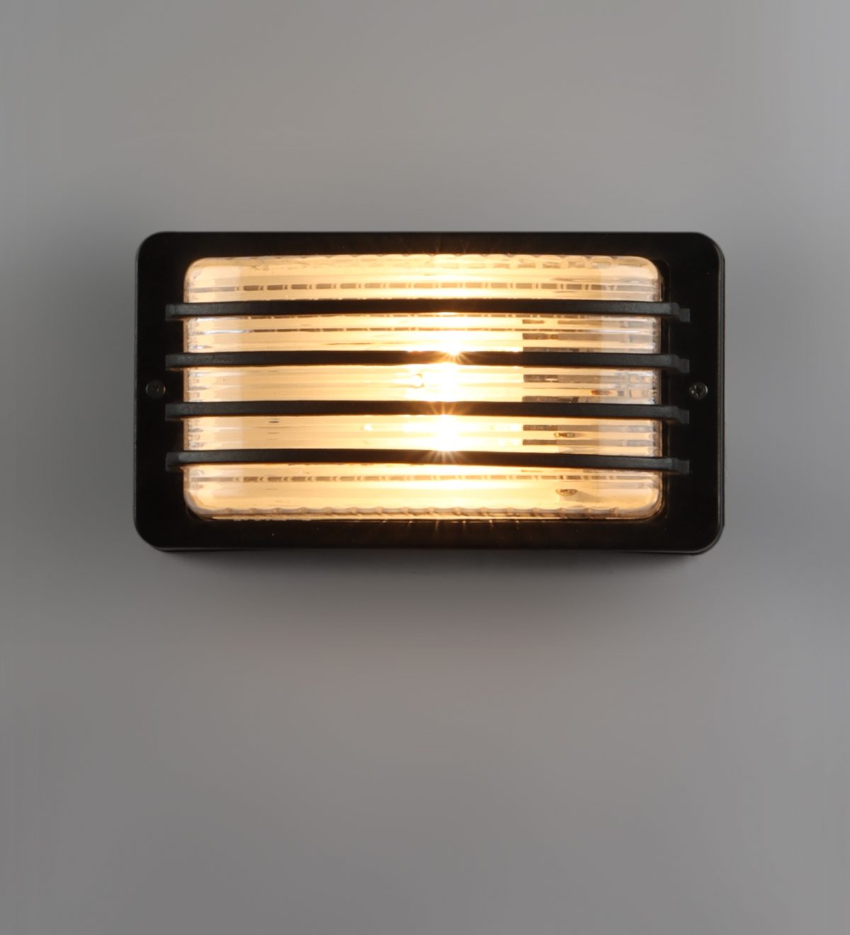 Solid heavy aluminium die cast export quality maintenance free bulkhead light with high quality poly carbonate suitable for exterior lighting.These lights look fab mounted on bare wood or brick and while suitable for outdoor use these lights would look equally as good in theme restaurants and bars. IP44 rated, providing protection from sprayed water in any direction and making this light perfect for use outdoors. It has B22 holder. You can of course swap out the bulb for one that is dimmable, has a higher light output or a different color temperature.