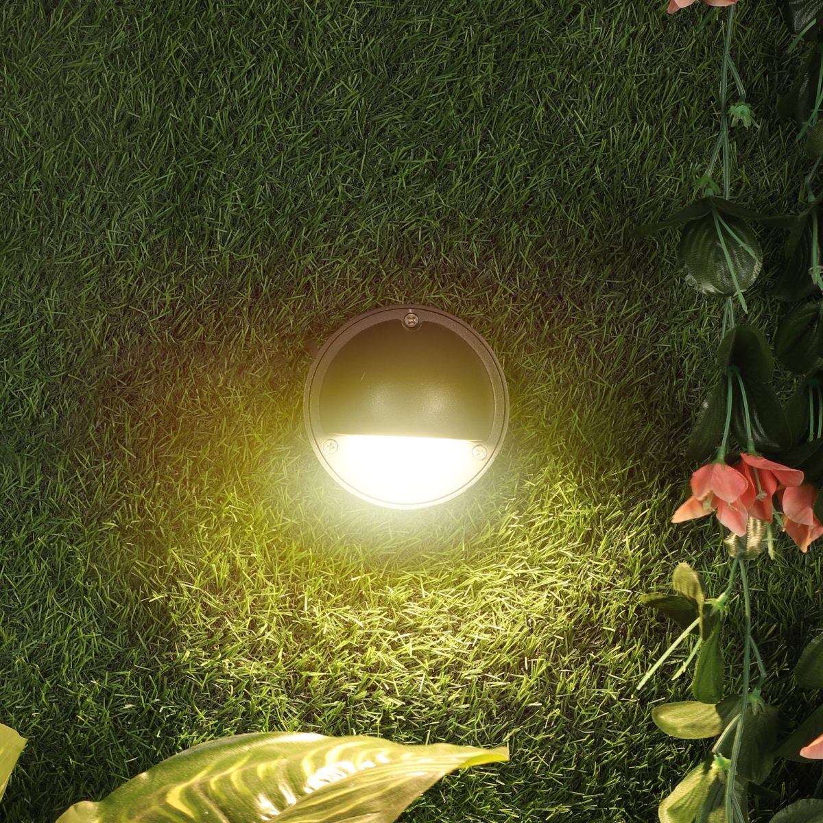 Compact, round aluminium die cast surface foot light using high quality LED and driver with high success rate having less than 0.5% replacement. It can be used in both indoor and outdoor applications such as Stair case walls, steps, passage to staircase, path way, drive way, terrace walls, outdoor walls, boundary walls, open parking, stilt parking, basement parking. It is usually installed at 12 to 15 inches height from the floor.