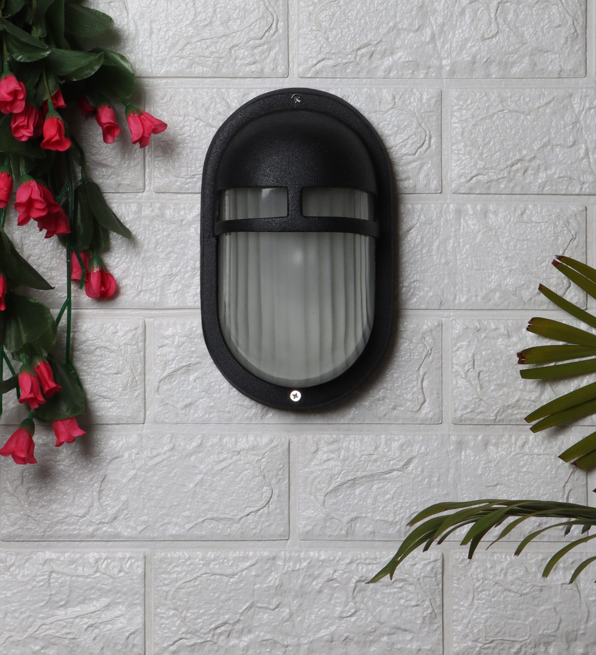 SUPERSCAPE aluminium die cast black vertical exterior Bulkhead light with thick glass for top branded replacable B22 LED lamp BUL06