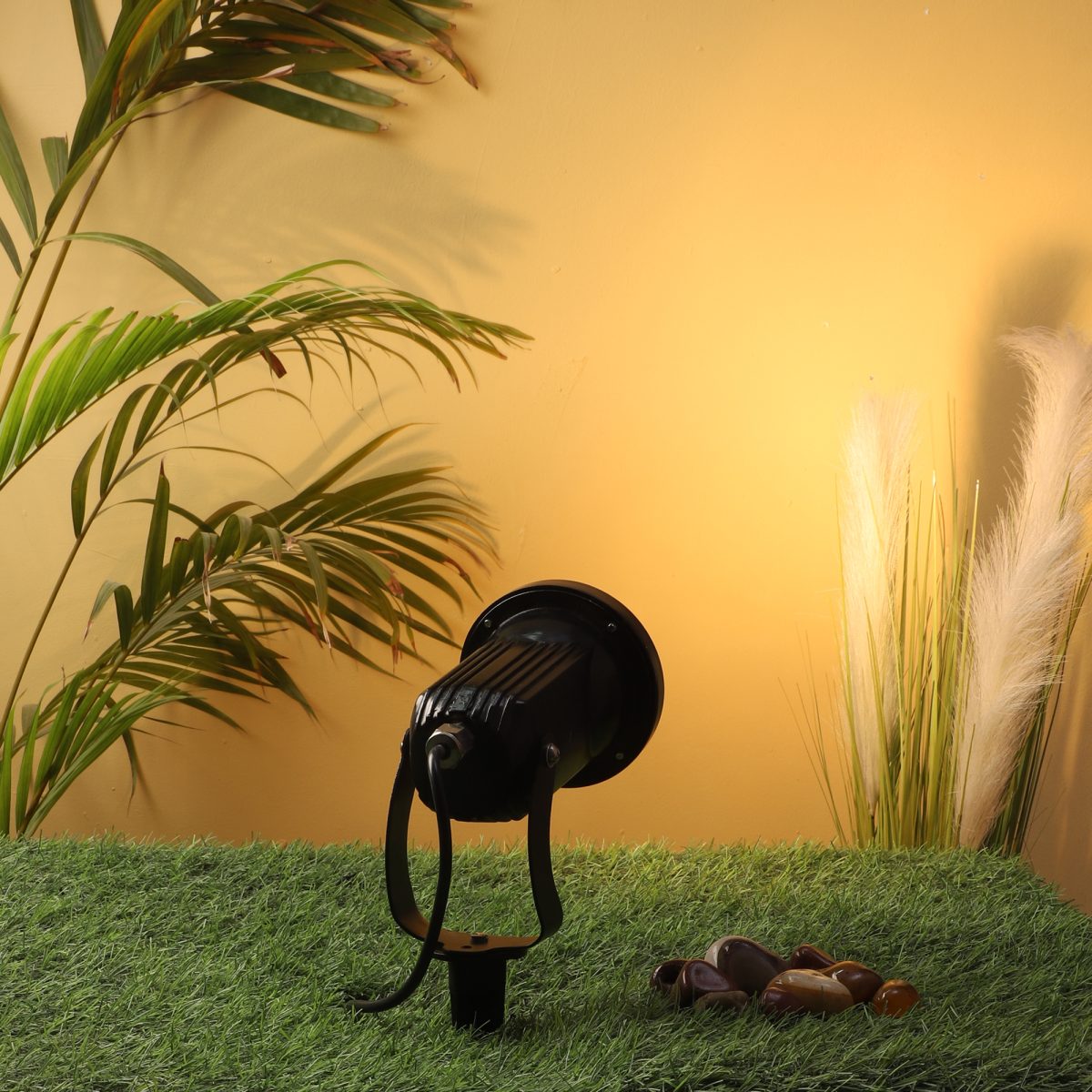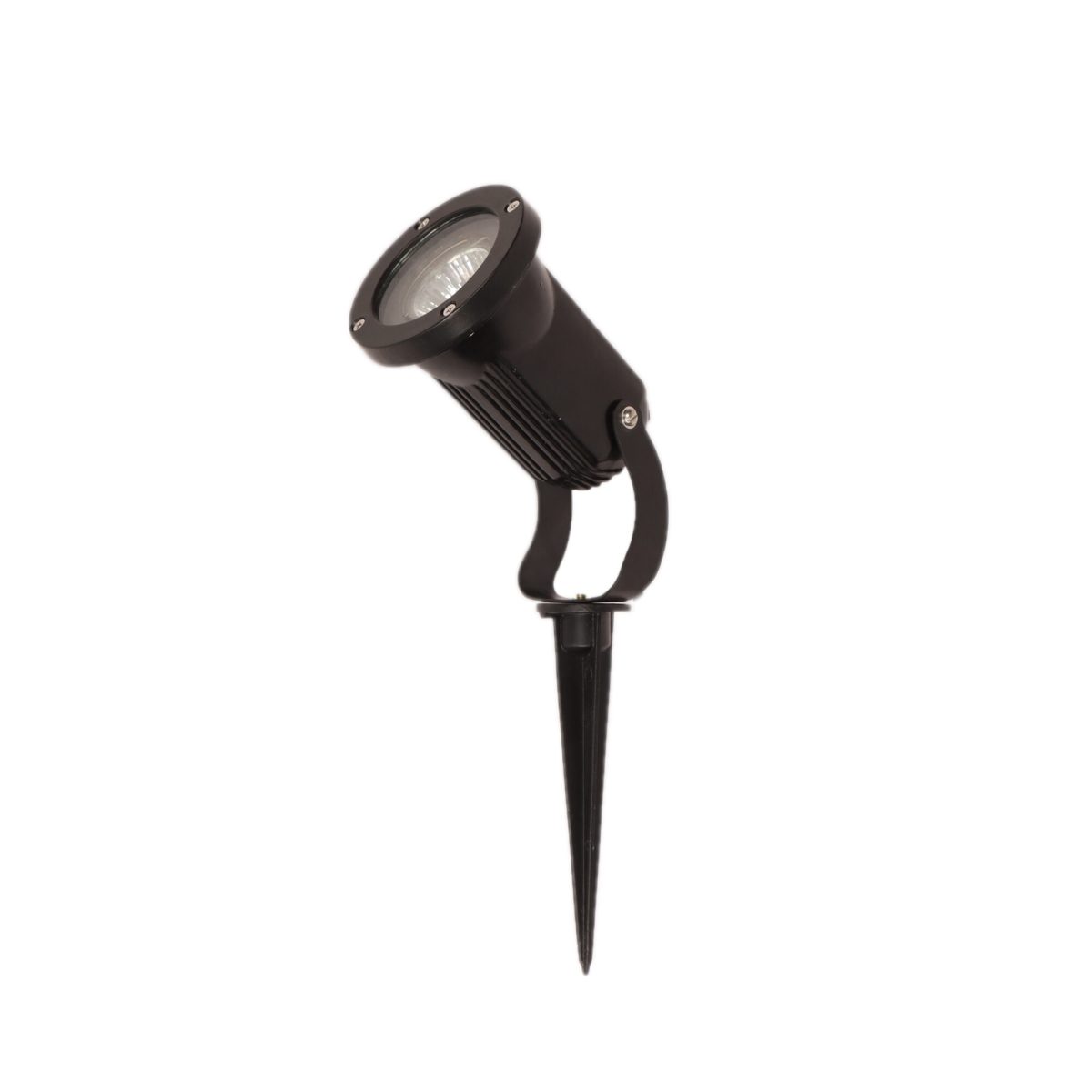Aluminium die cast outdoor spike light It is maintenance free. It uses GU10 LED lamp, which is available locally everywhere in different wattage and colour temperatures. Designed to withstand the harsh conditions of the great outdoors while remaining stylish and functional. Spike lights provide the ultimate flexibility in lighting your garden as they can easily be re positioned when required to illuminate different shrubs and trees throughout the seasons. The head is adjustable allowing you to illuminate any area you desire. Easy for use in gardens small or large. IP 54 rated, protection against splashed water. LAMP NOT INCLUDED.