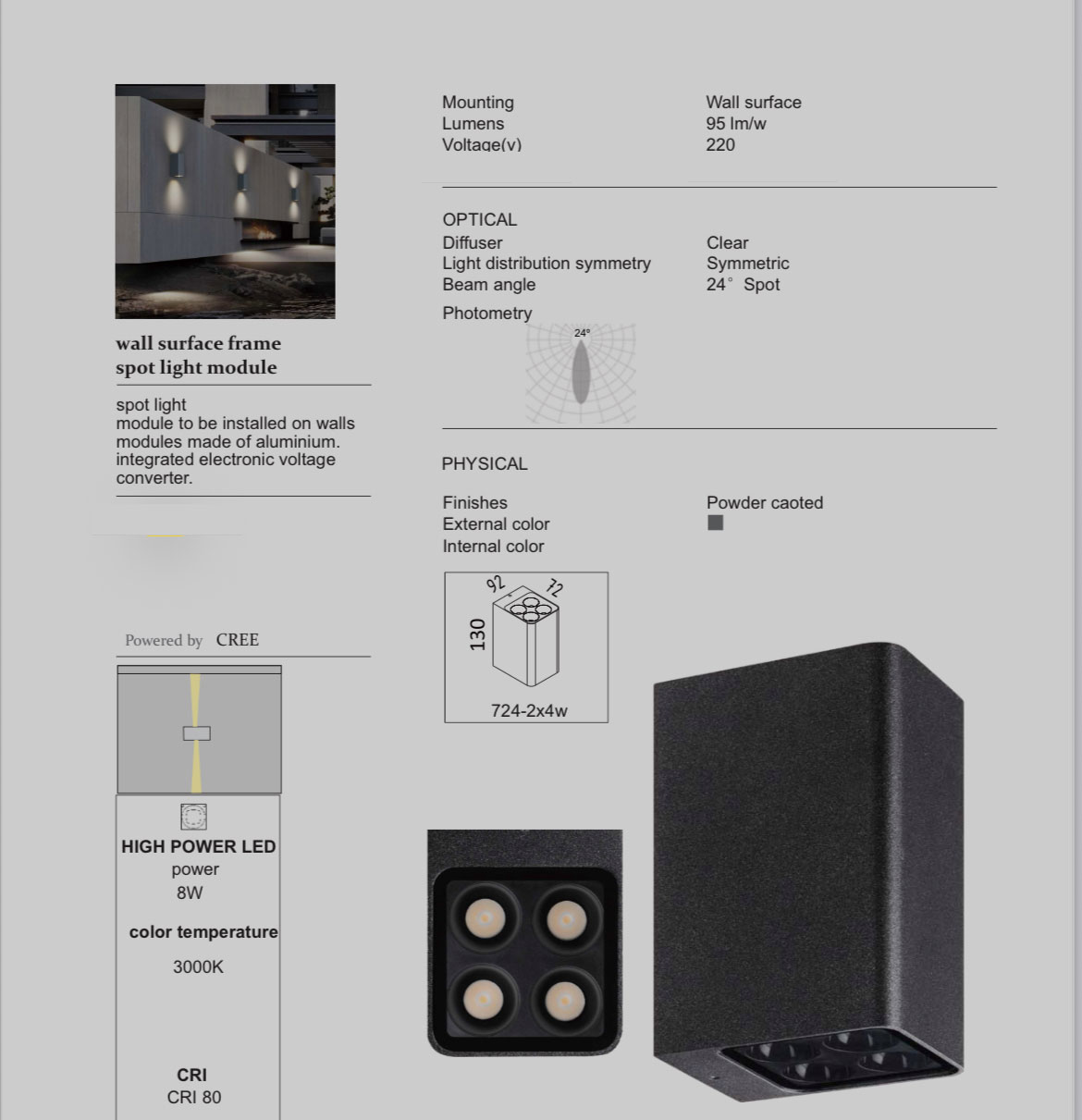 SUPERSCAPE architect choice Exterior Wall Light LED up down two way 2 X 4 watt with top quality LED and driver 3K.
