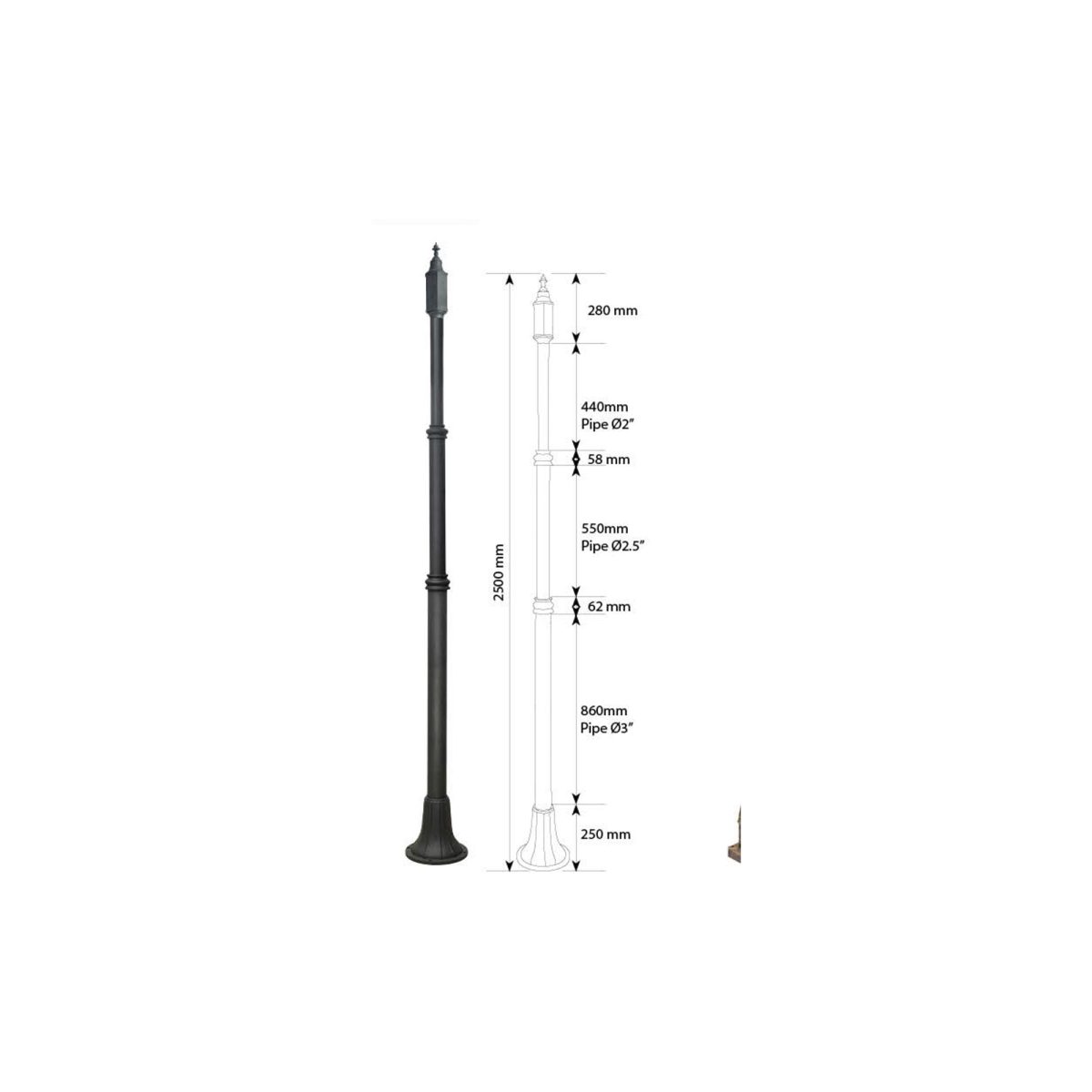 SUPERSCAPE black finish 8.5 feet three light pole light K1158