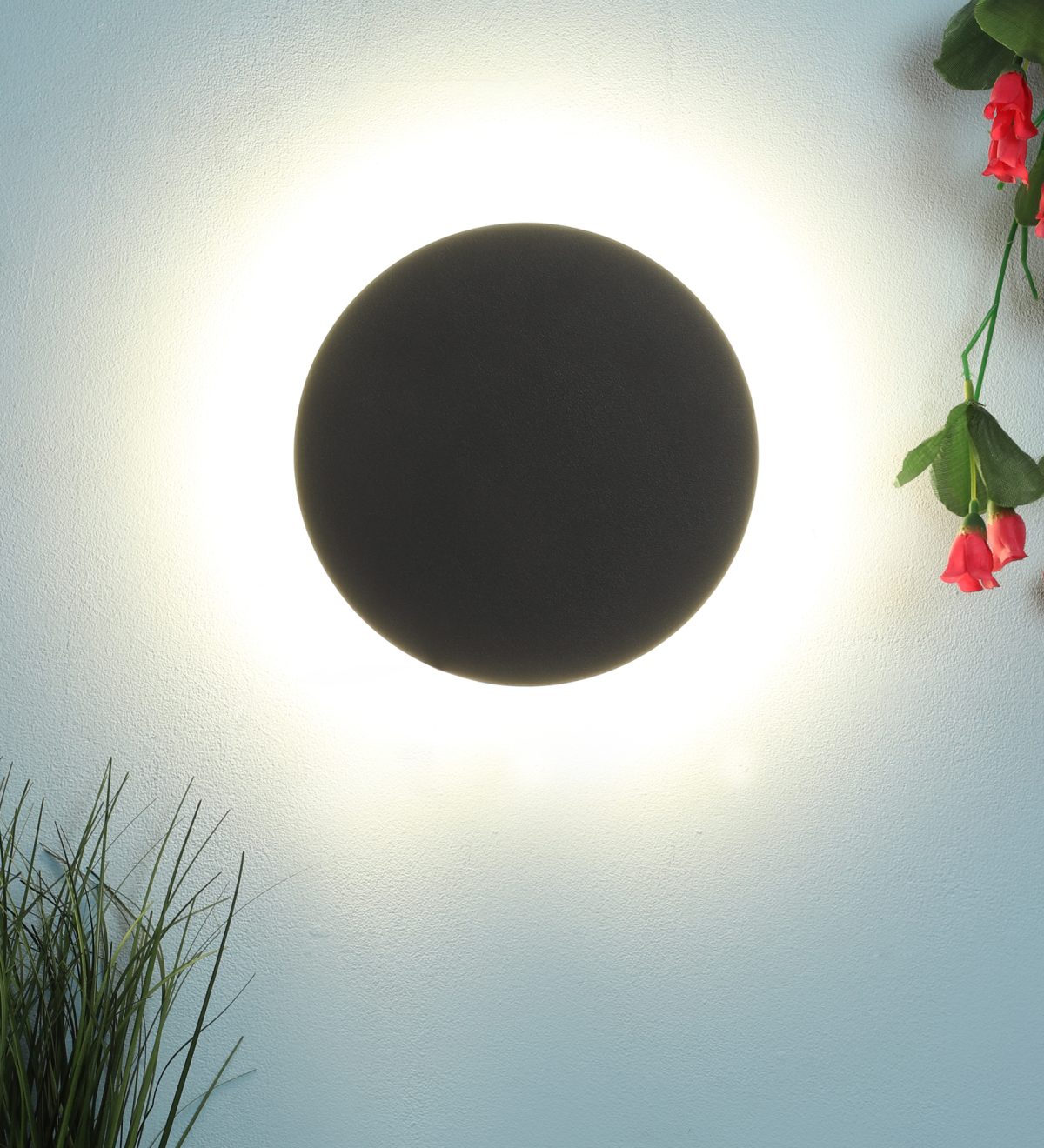 Circular, Indirect lighting, aluminum die cast outdoor wall light in gray finish using high quality LED and driver with high success rate having less than 0.5% replacement. It is preferred by architects and designers wherever indirect lighting effect is required. It can be used in both indoor and outdoor applications such as stair case walls, terrace walls, outdoor walls, boundary walls, open parking, stilt parking, basement parking, passage walls, entrance pillars. IP54 rated. Protection against splashed water can be customized as per requirement for bulk quantities. Similar variation in wall light WL2320. Matching bollards K1061-S, K1061-M, K1061-L.
