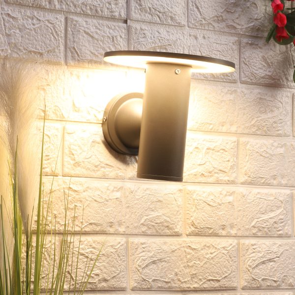 Circular, Indirect lighting, aluminum die cast outdoor wall light in gray finish using high quality LED and driver with high success rate having less than 0.5% replacement. It is preferred by architects and designers wherever indirect lighting effect is required. It can be used in both indoor and outdoor applications such as stair case walls, terrace walls, outdoor walls, boundary walls, open parking, stilt parking, basement parking, passage walls, entrance pillars. IP54 rated. Protection against splashed water can be customized as per requirement for bulk quantities. Similar variation in wall light WL2320. Matching bollards K1061-S, K1061-M, K1061-L.
