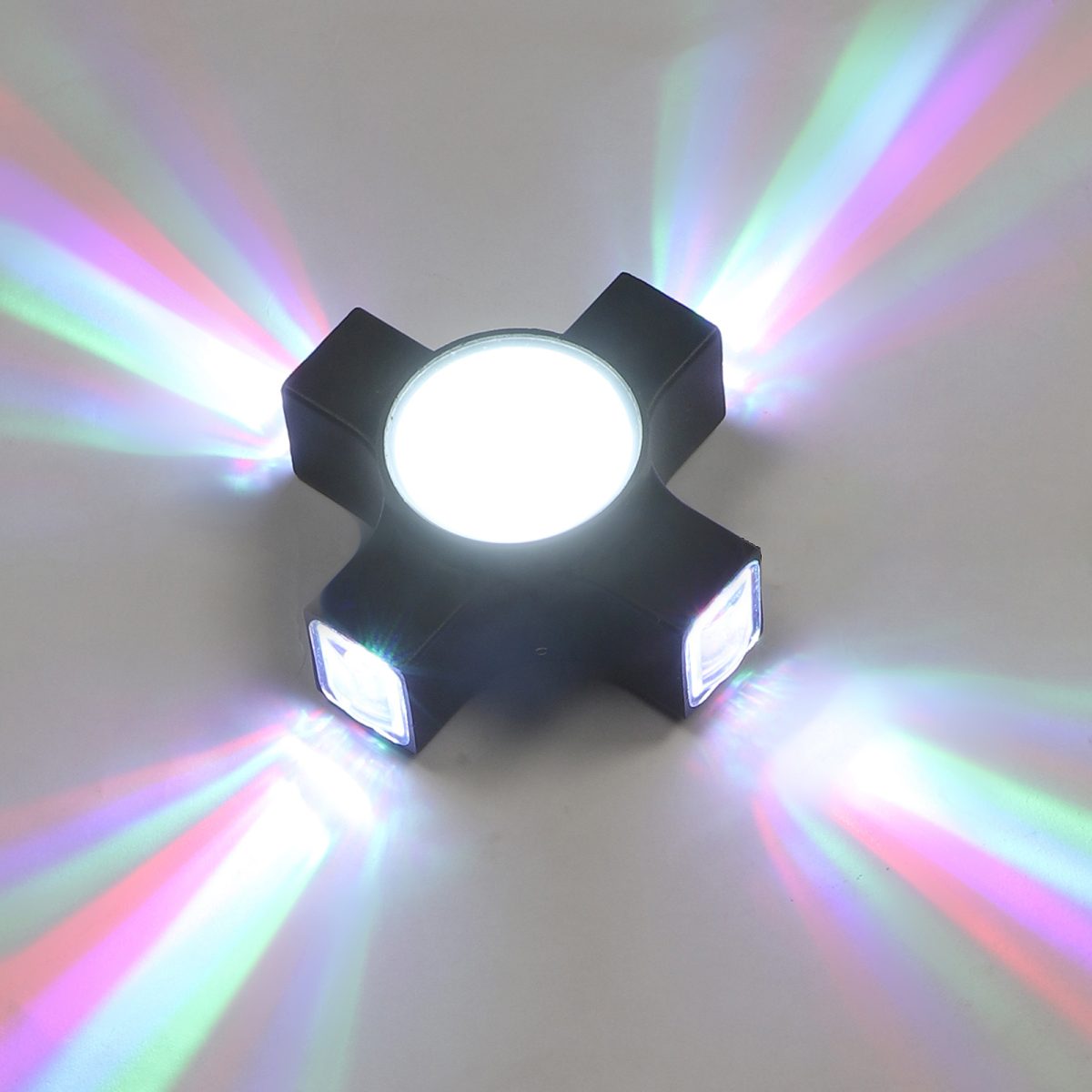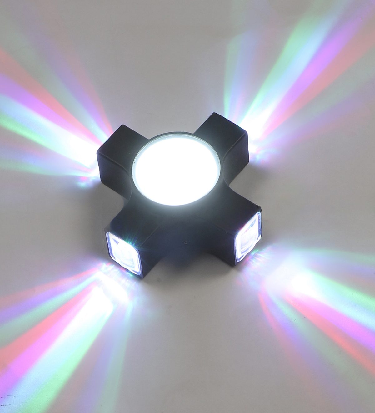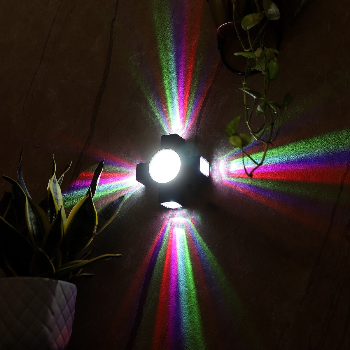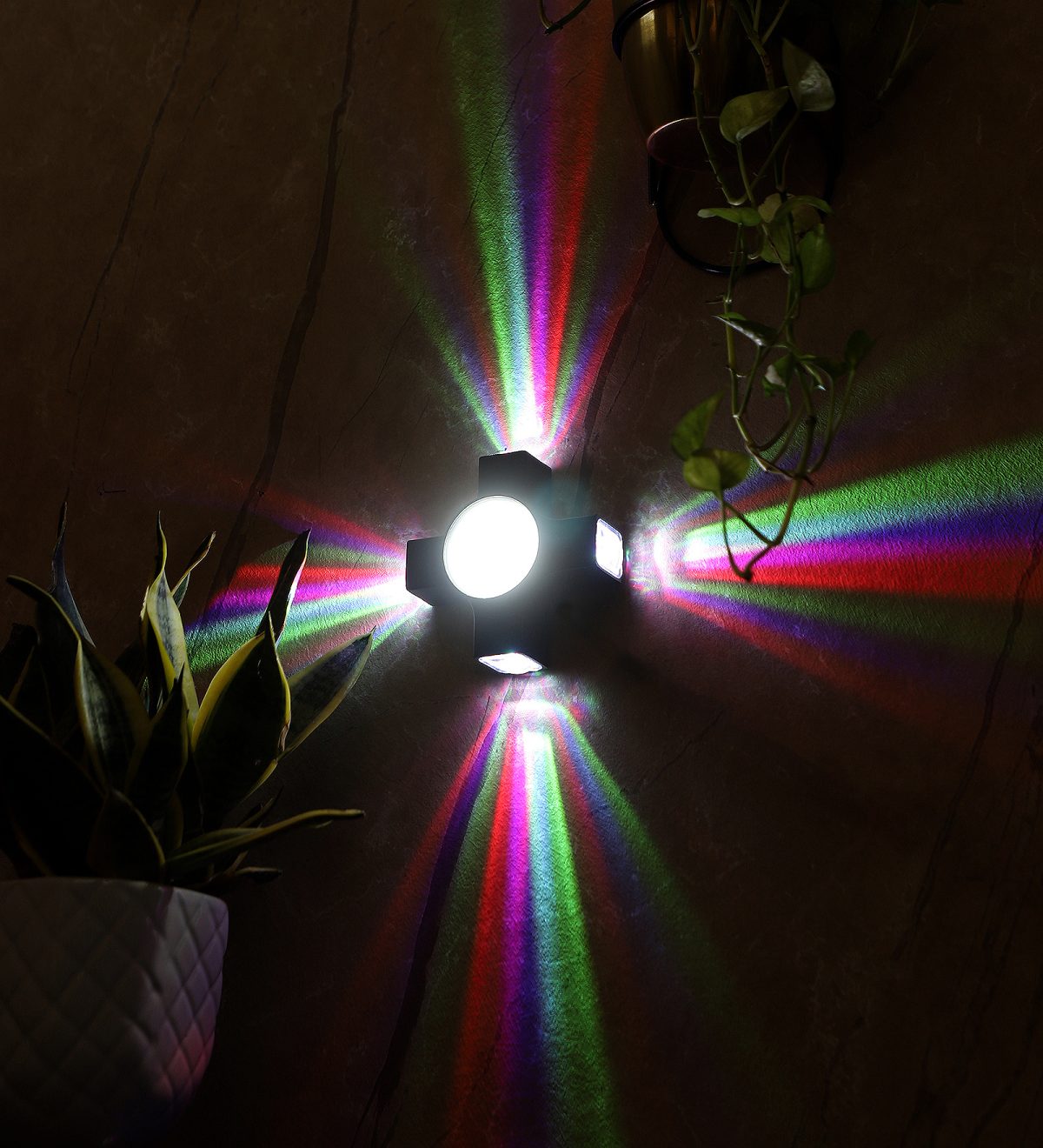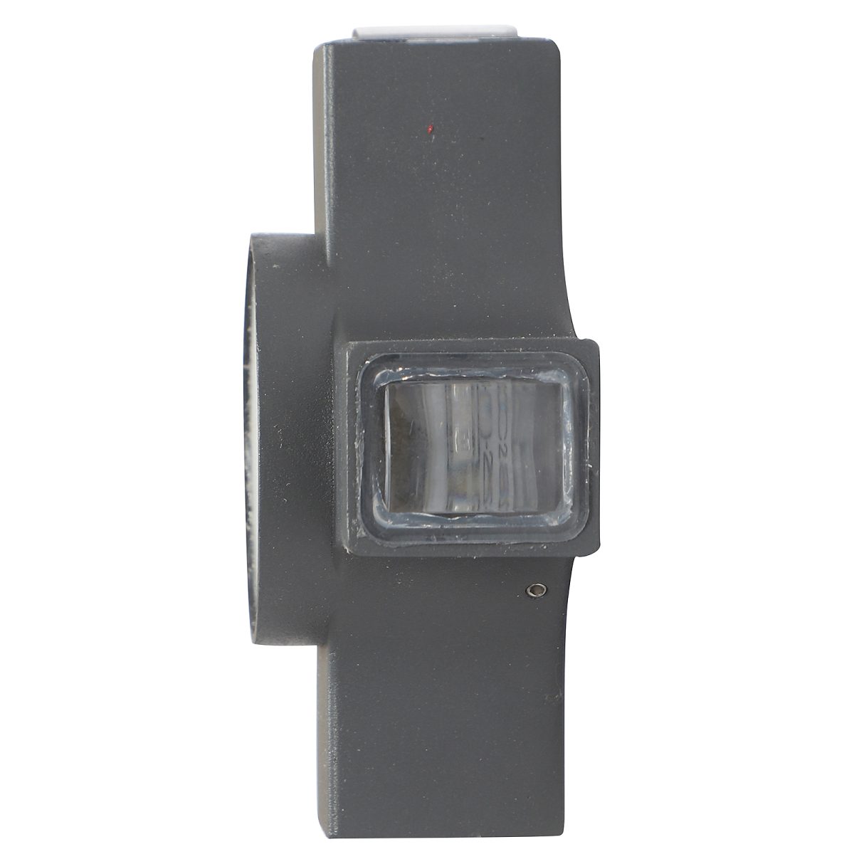 Elegant nicely shaped aluminum die cast outdoor wall light in grey finish using high quality LED and driver. It is a four way multicolour light with lens to enhance the output to give a defined beam spread in all the four directions. Central part also has light form general lighting.This in combination with multiple pieces is preferred by the lighting designers to create a lighting effect in a single wide wall, and multiple units are used to create the design.
