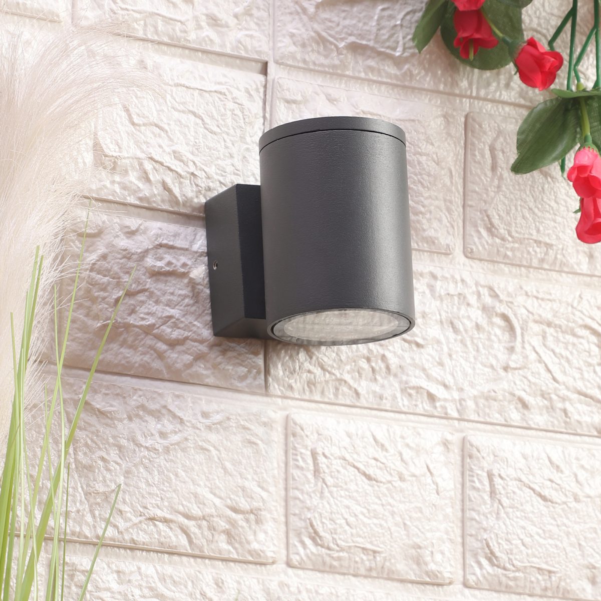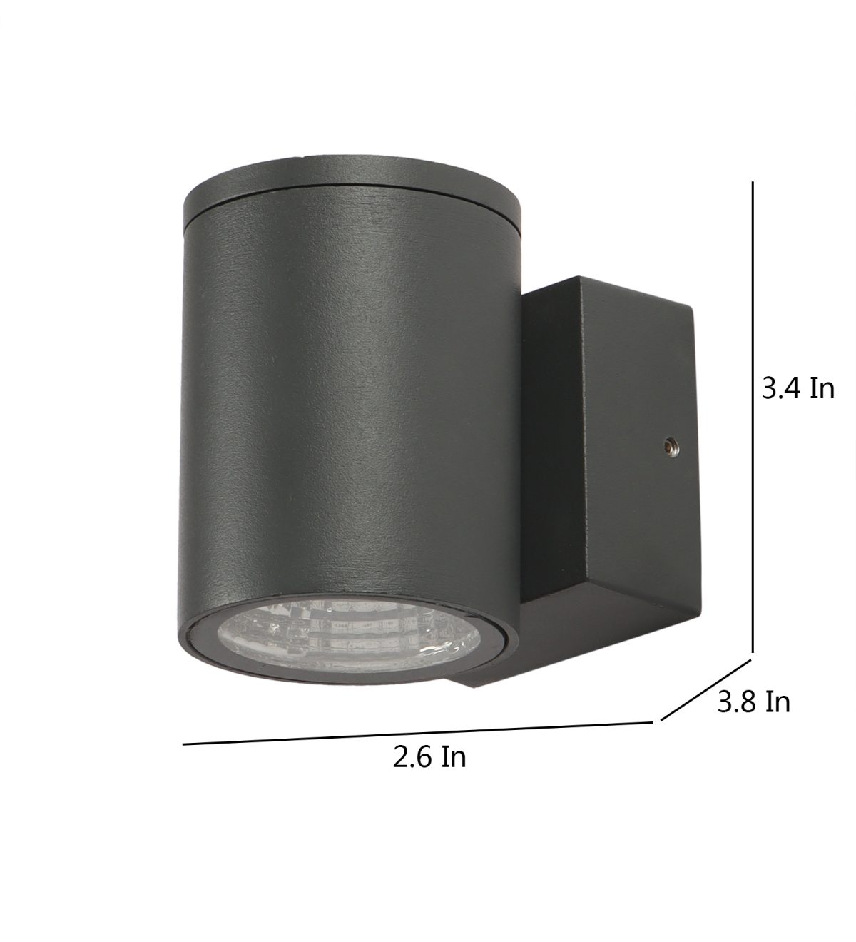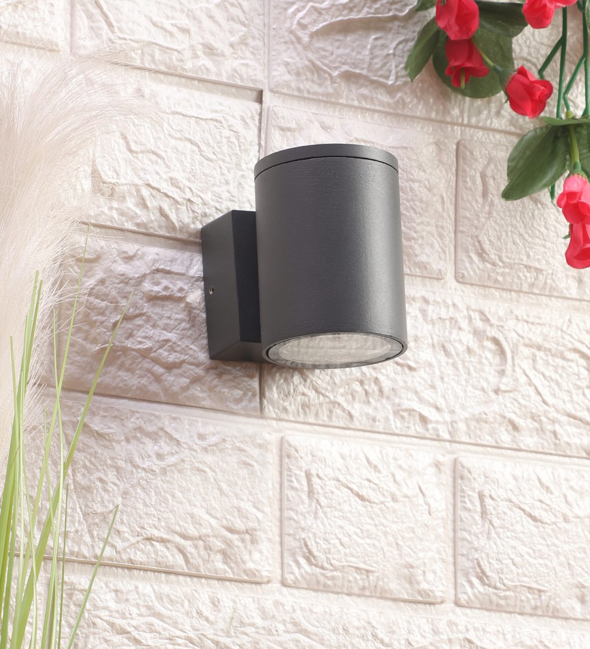 Vertical, cylindrical ,one way, up or down aluminum die cast outdoor wall light in gray finish using high quality LED and driver with high success rate having less than 0.5% replacement. It is a one way light with high output having 5W COB with reflector for more light output. It is economical and one of the most popular design preferred by the lighting designers, builders and architects. It can be used in both indoor and outdoor applications such as stair case walls, terrace walls, outdoor walls, boundary walls, open parking, stilt parking, basement parking, passage walls, entrance pillars. IP54 rated. Protection against splashed water. Also available in two way output with code WL2325. Can be customized as per requirement for bulk quantities.