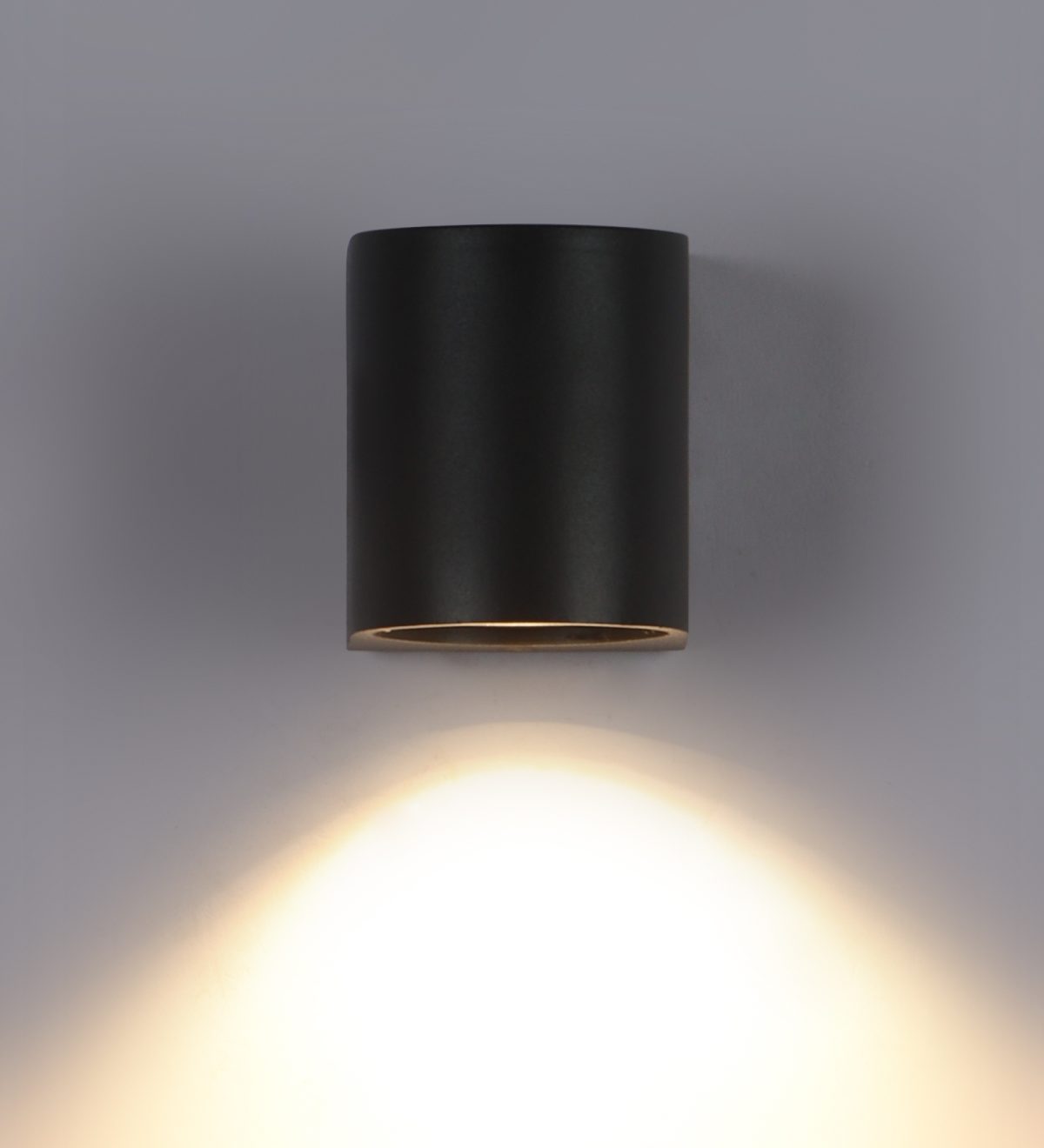 Vertical, round ,one way, up or down aluminum die cast outdoor wall light in grey finish using high quality LED and driver with high success rate having less than 0.5% replacement. It is a one way light with high output having 5W COB with reflector for more light output. It is economical and one of the most popular design preferred by the lighting designers, builders and architects. It can be used in both indoor and outdoor applications such as stair case walls, terrace walls, outdoor walls, boundary walls, open parking, stilt parking, basement parking, passage walls, entrance pillars. IP54 rated. Protection against splashed water. Also available in two way output with code WL2504. Can be customized as per requirement for bulk quantities.