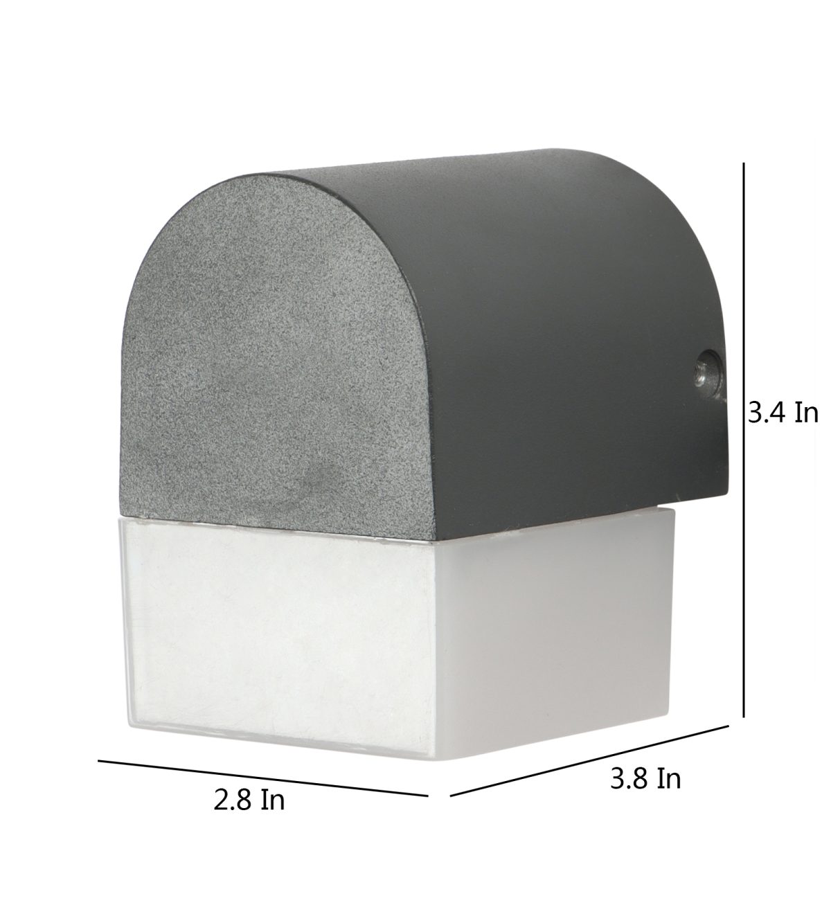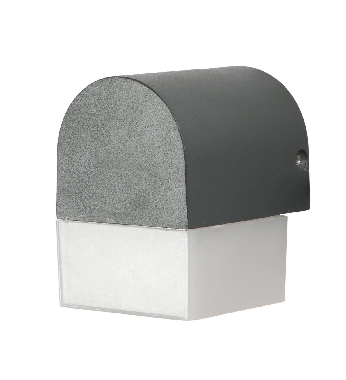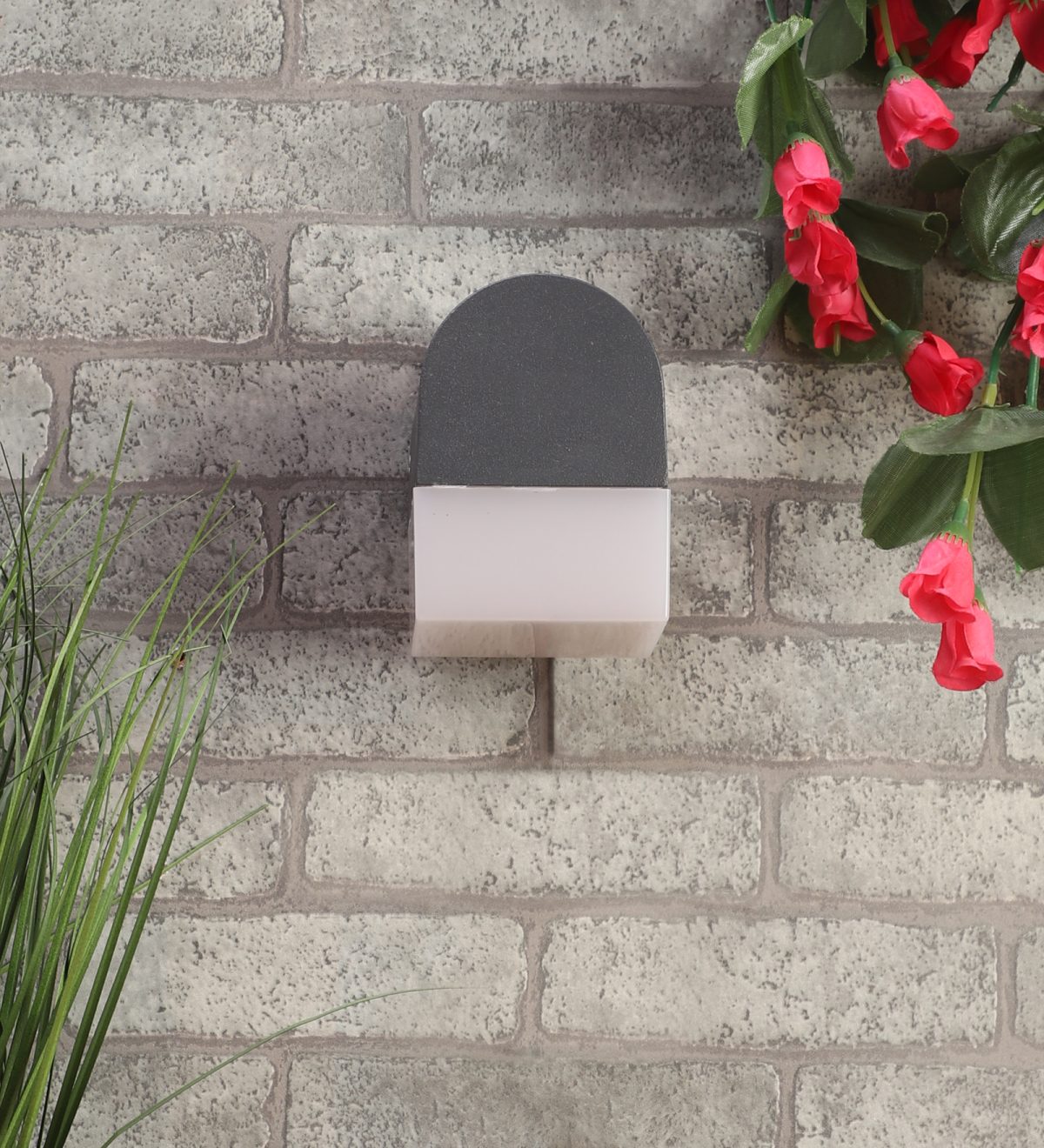 Elegant one way (up or down) aluminum die cast outdoor wall light in gray finish using high quality LED and driver with high success rate having less than 0.5% replacement. It is a premium design with a very bright one way output. It can be used in both indoor and outdoor applications such as stair case walls, terrace walls, outdoor walls, boundary walls, open parking, stilt parking, basement parking, passage walls, entrance pillars. IP54 rated. Protection against splashed water can be customized as per requirement for bulk quantities.