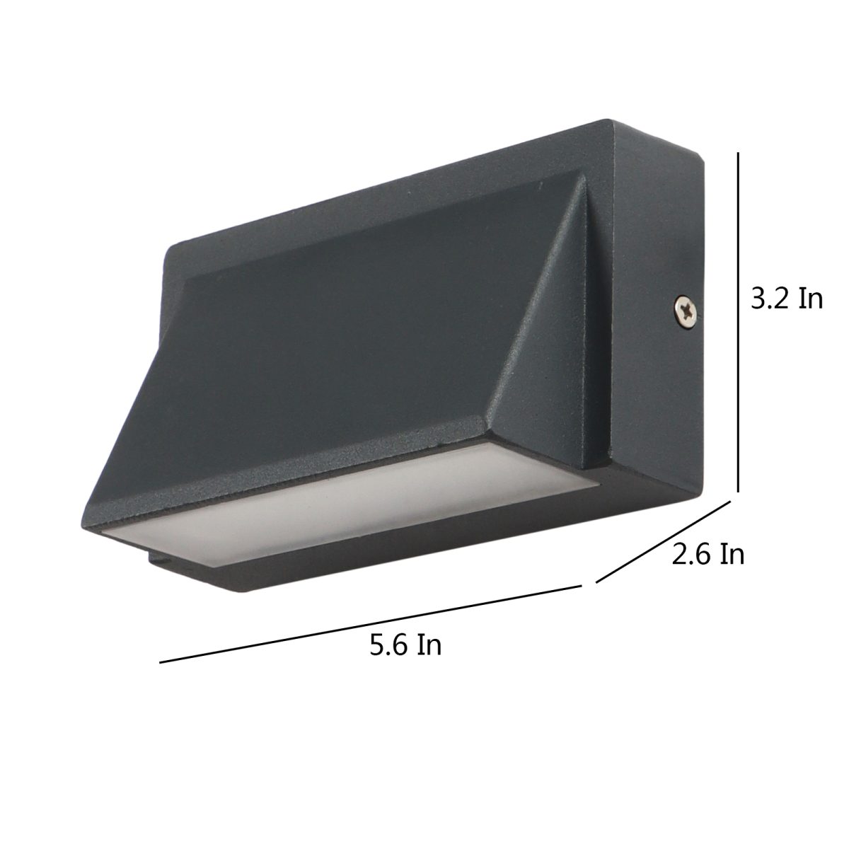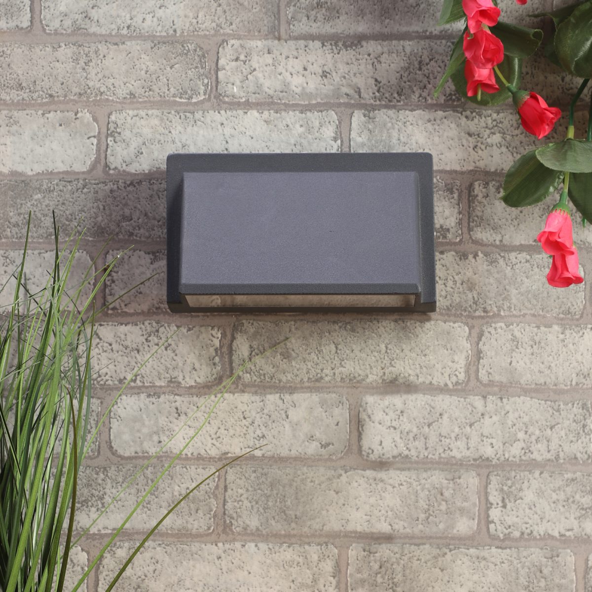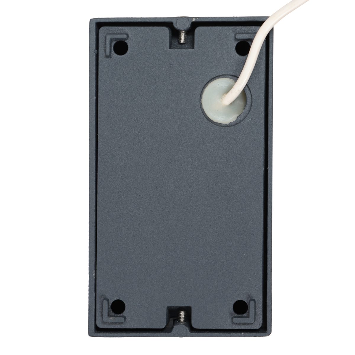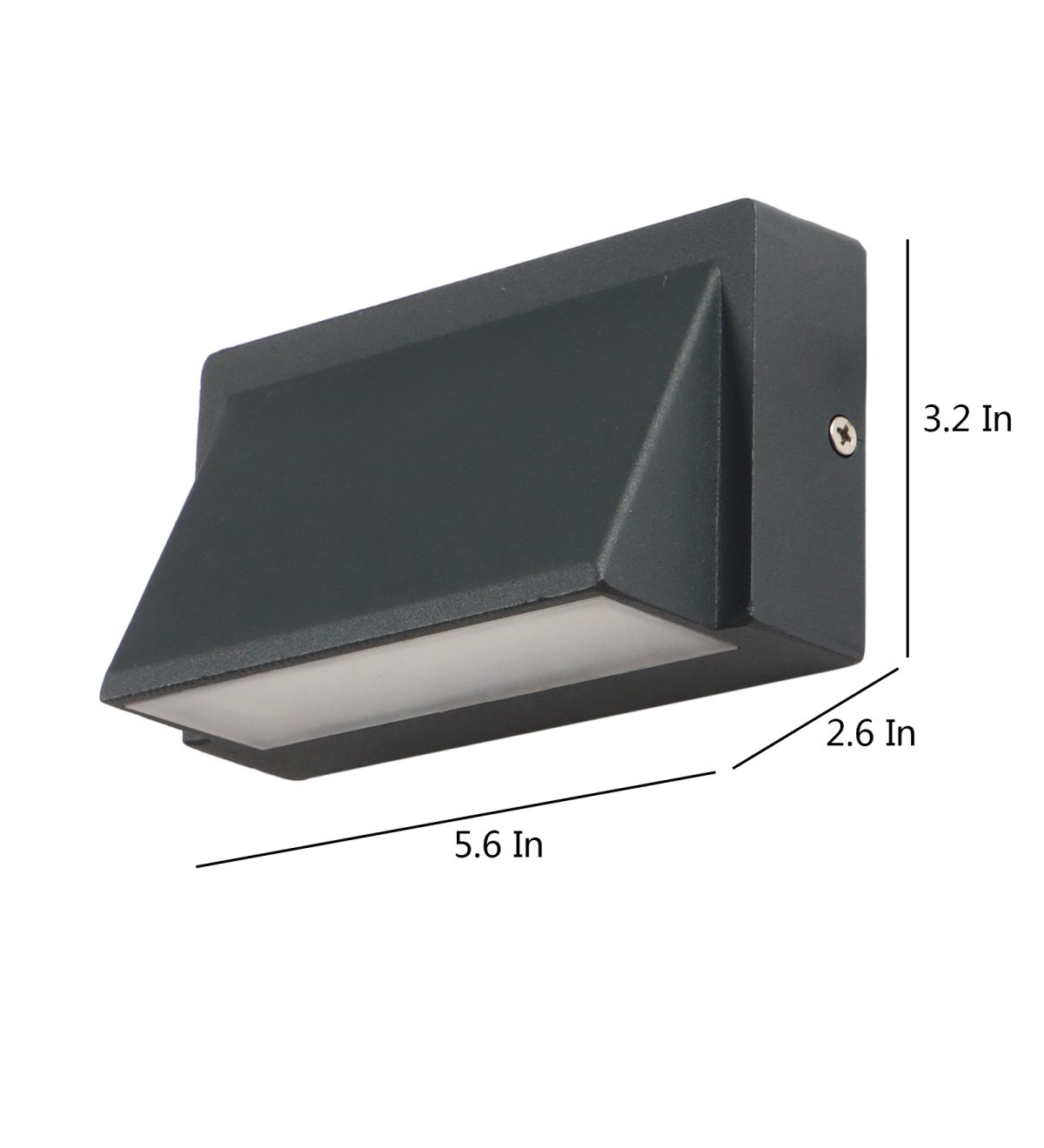 Rectangular one way (up or down) aluminum die cast outdoor wall light in gray finish using high quality LED and driver with high success rate having less than 0.5% replacement. It is a one way light with high light output. It is a premium design with good width and wider light output. It can be used in both indoor and outdoor applications such as stair case walls, terrace walls, outdoor walls, boundary walls, open parking, stilt parking, basement parking, passage walls, entrance pillars, name / address plate. Can also be used as surface foot light. IP54 rated. Protection against splashed water can be customized as per requirement for bulk quantities.
