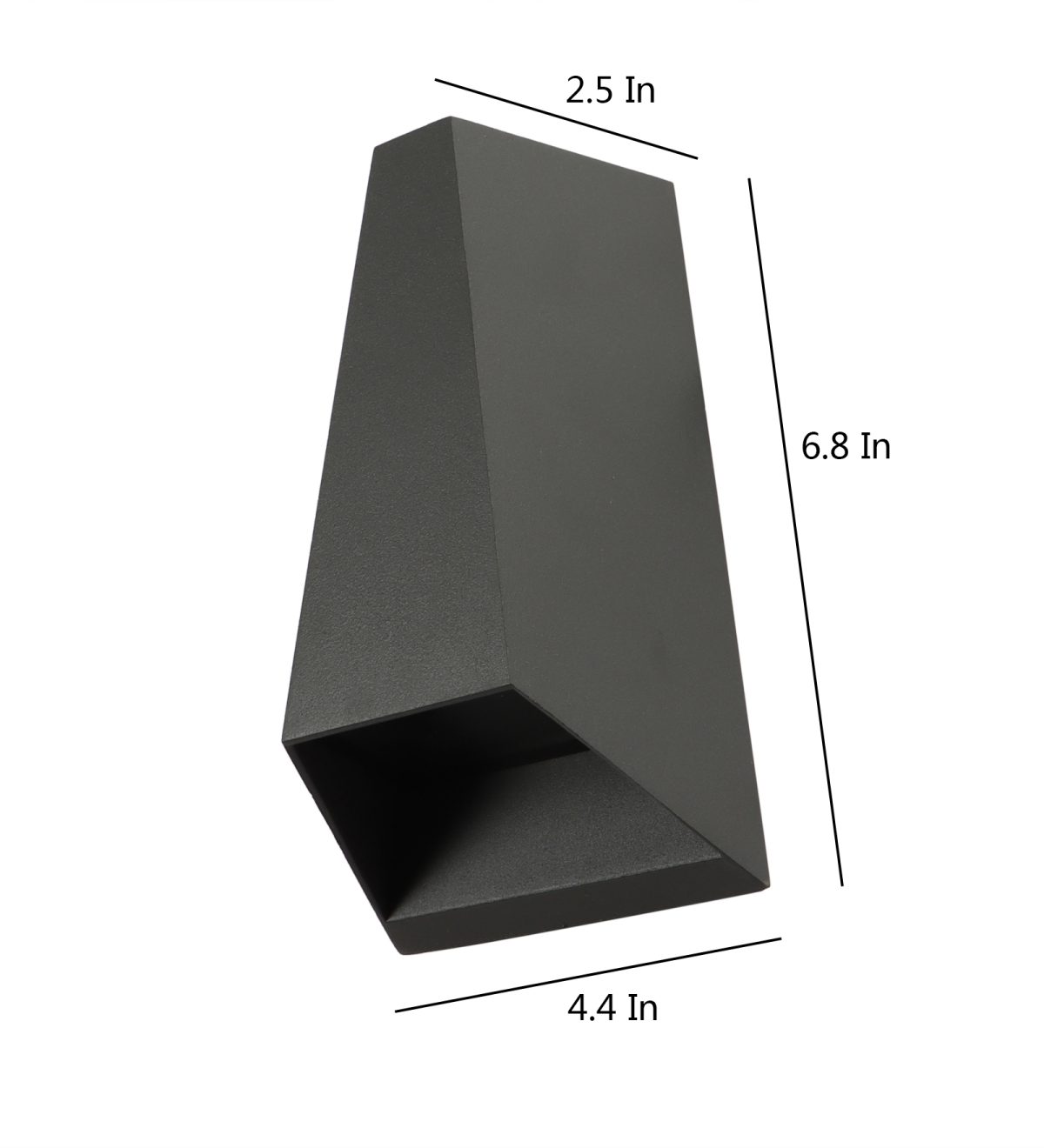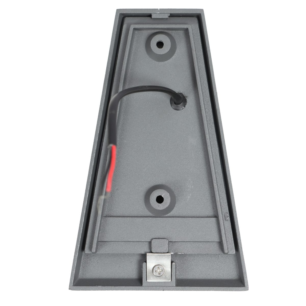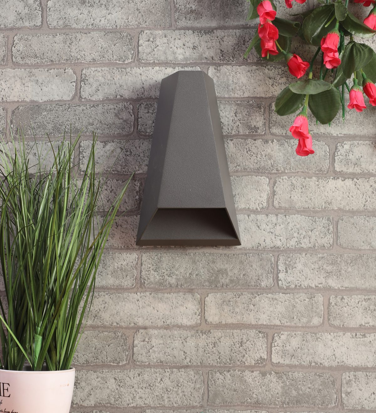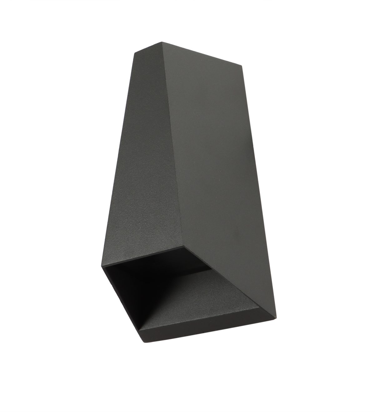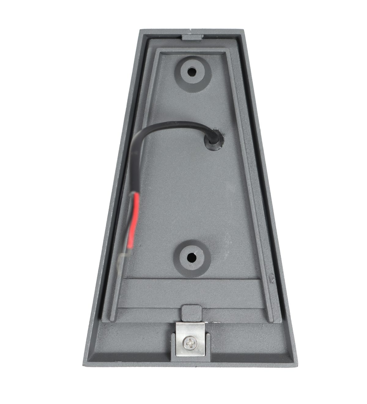 Vertical up and down aluminum die cast outdoor wall light in gray finish using high quality LED and driver with high success rate having less than 0.5% replacement. It is a unique two way light providing a narrow beam in one direction and spread output in another direction. It is economical and one of the most popular design preferred by the lighting designers, builders and architects. It can be used in both indoor and outdoor applications such as stair case walls, terrace walls, outdoor walls, boundary walls, open parking, stilt parking, basement parking, passage walls, entrance pillars. IP54 rated. Protection against splashed water can be customized as per requirement for bulk quantities.