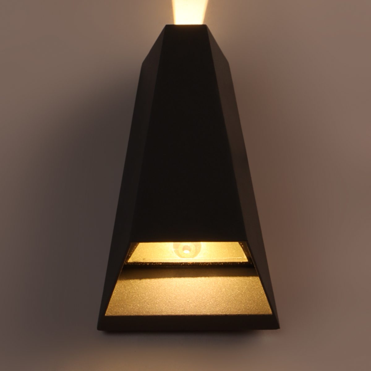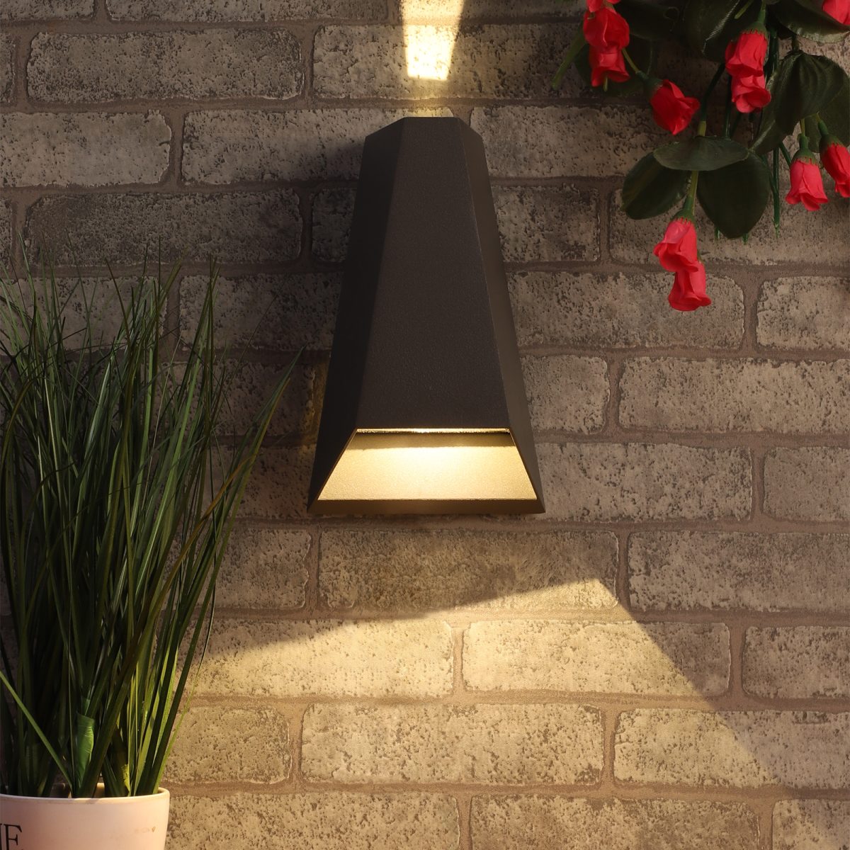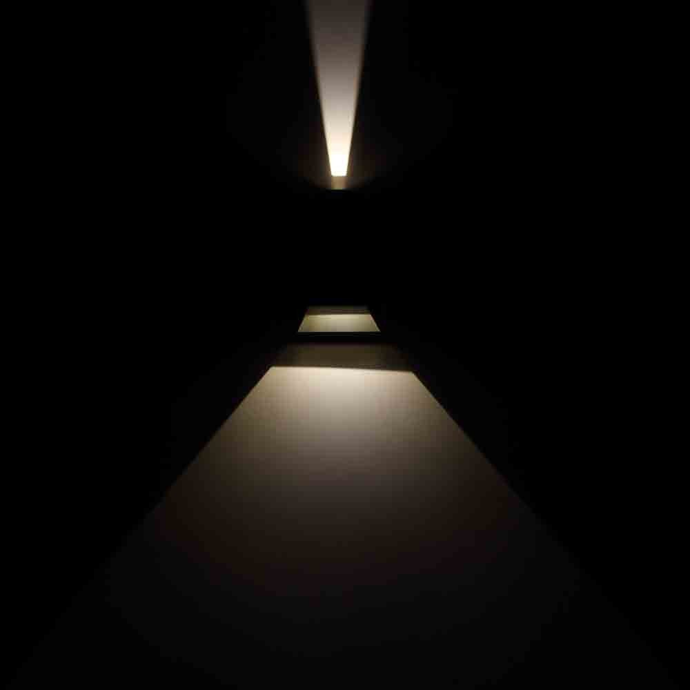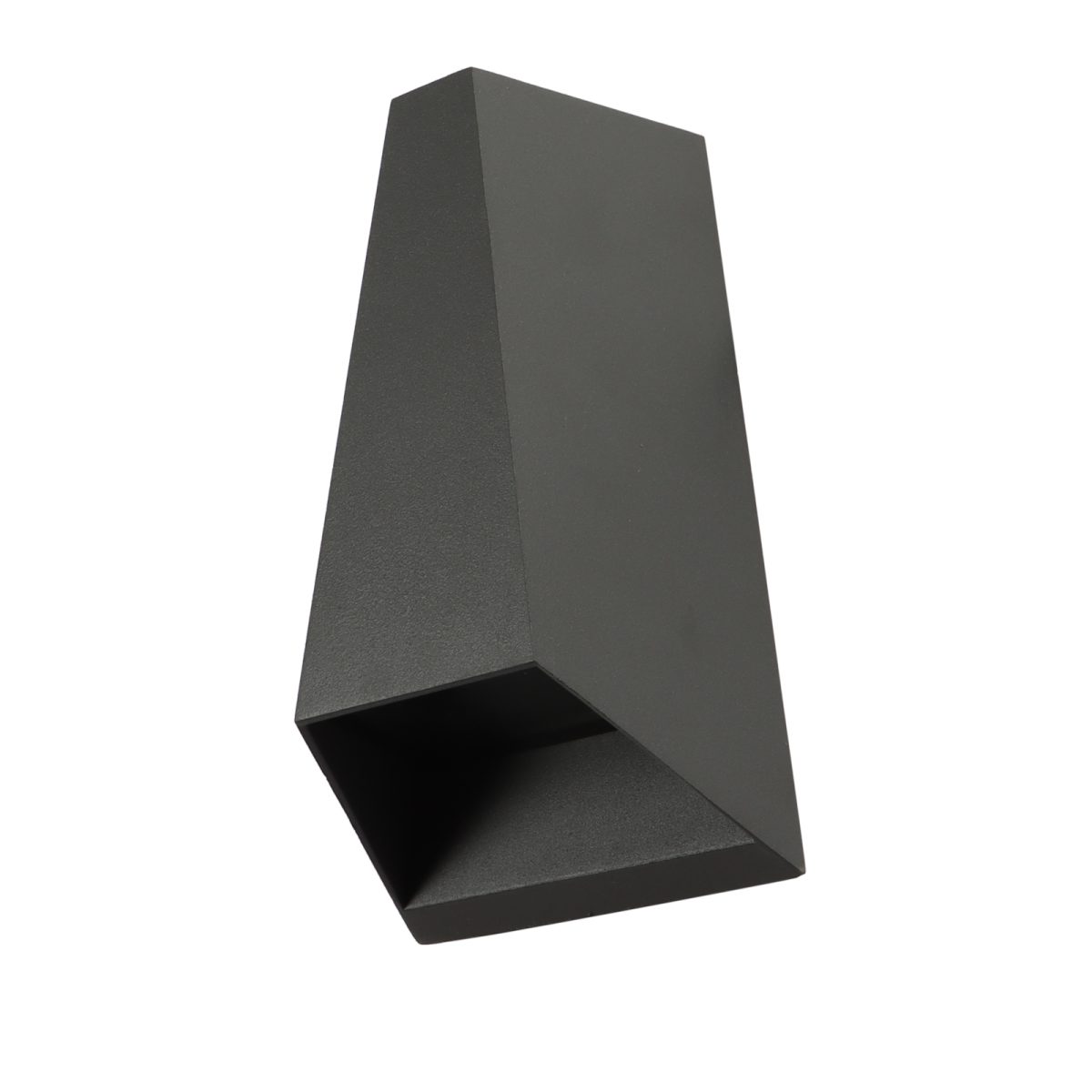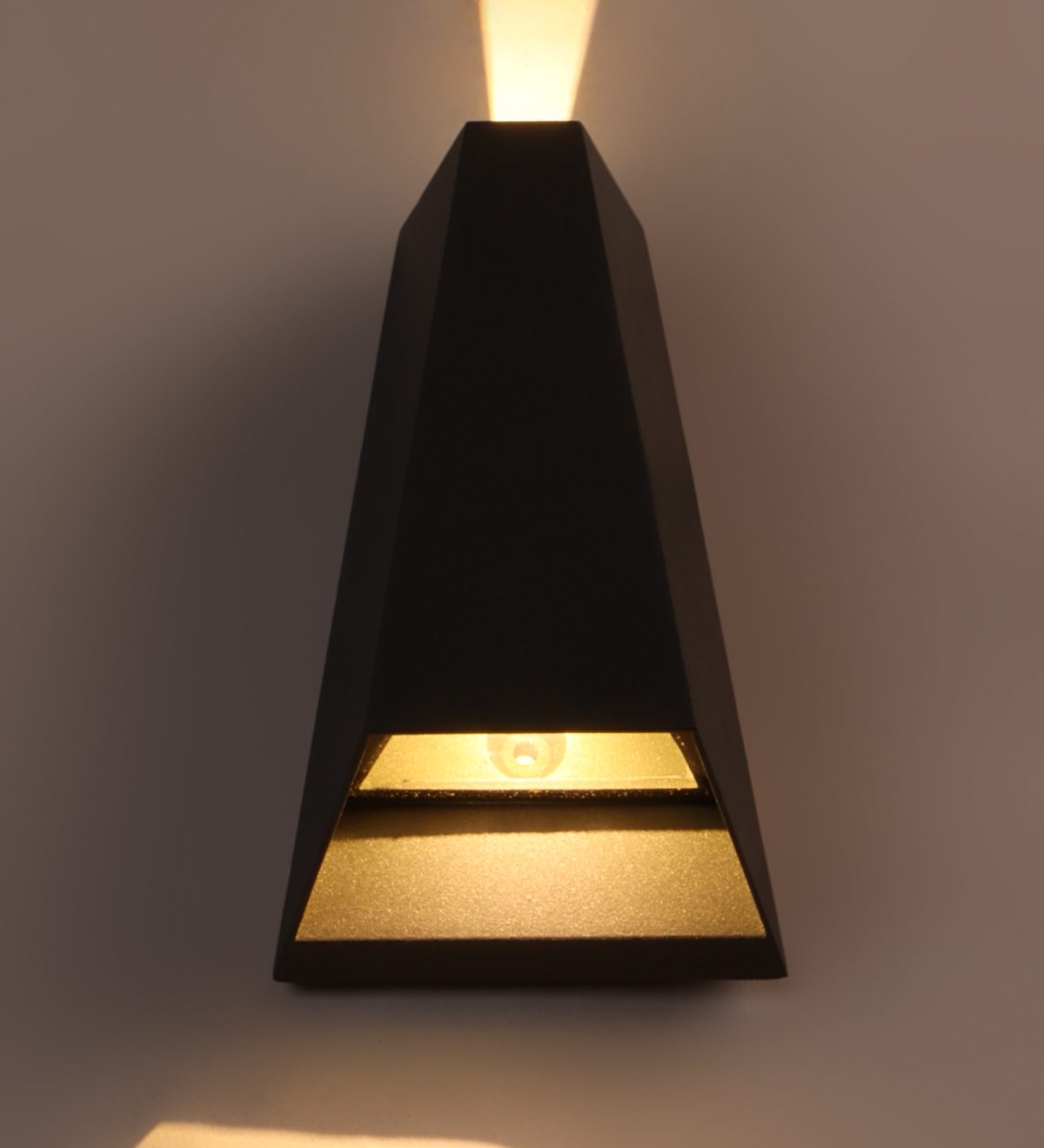 Vertical up and down aluminum die cast outdoor wall light in gray finish using high quality LED and driver with high success rate having less than 0.5% replacement. It is a unique two way light providing a narrow beam in one direction and spread output in another direction. It is economical and one of the most popular design preferred by the lighting designers, builders and architects. It can be used in both indoor and outdoor applications such as stair case walls, terrace walls, outdoor walls, boundary walls, open parking, stilt parking, basement parking, passage walls, entrance pillars. IP54 rated. Protection against splashed water can be customized as per requirement for bulk quantities.
