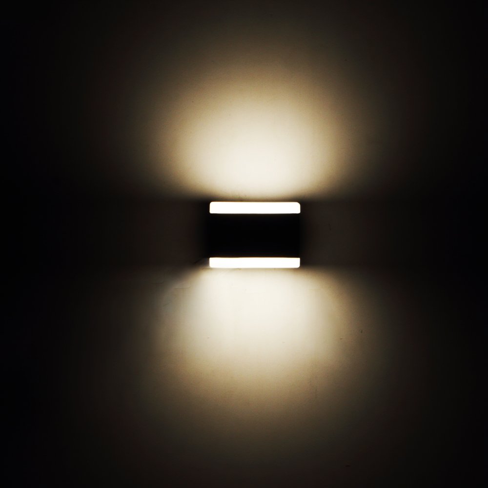Vertical, elegant small size up and down aluminum die cast outdoor wall light in gray finish using high quality LED and driver with high success rate having less than 0.5% replacement. It is a compact two way light with bright output speeded uniformly for a good visual effect. It is economical and one of the most popular design preferred by the lighting designers, builders and architects. It can be used in both indoor and outdoor applications such as stair case walls, terrace walls, outdoor walls, boundary walls, open parking, stilt parking, basement parking, passage walls, entrance pillars. IP54 rated. Protection against splashed water can be customized as per requirement for bulk quantities.