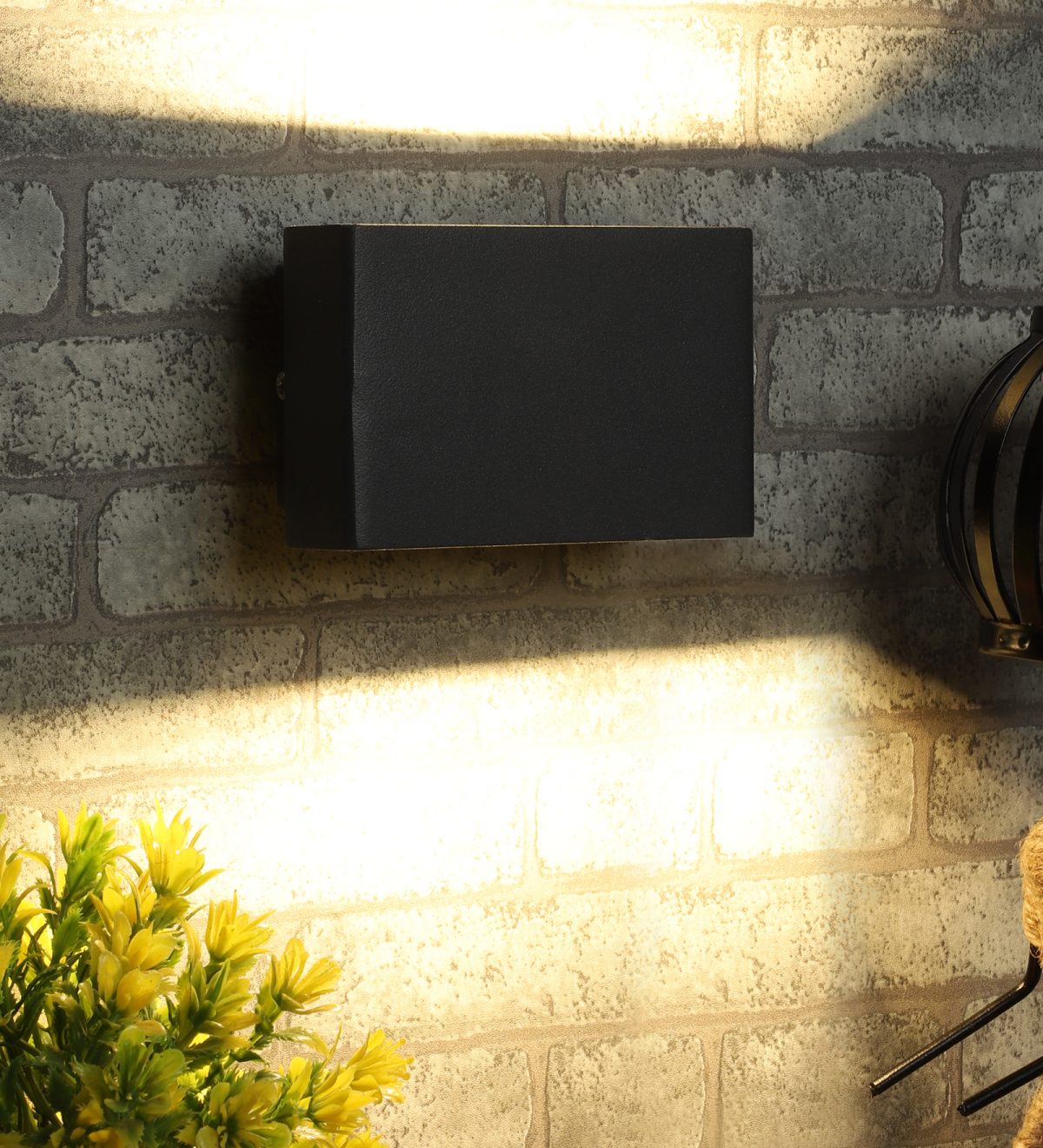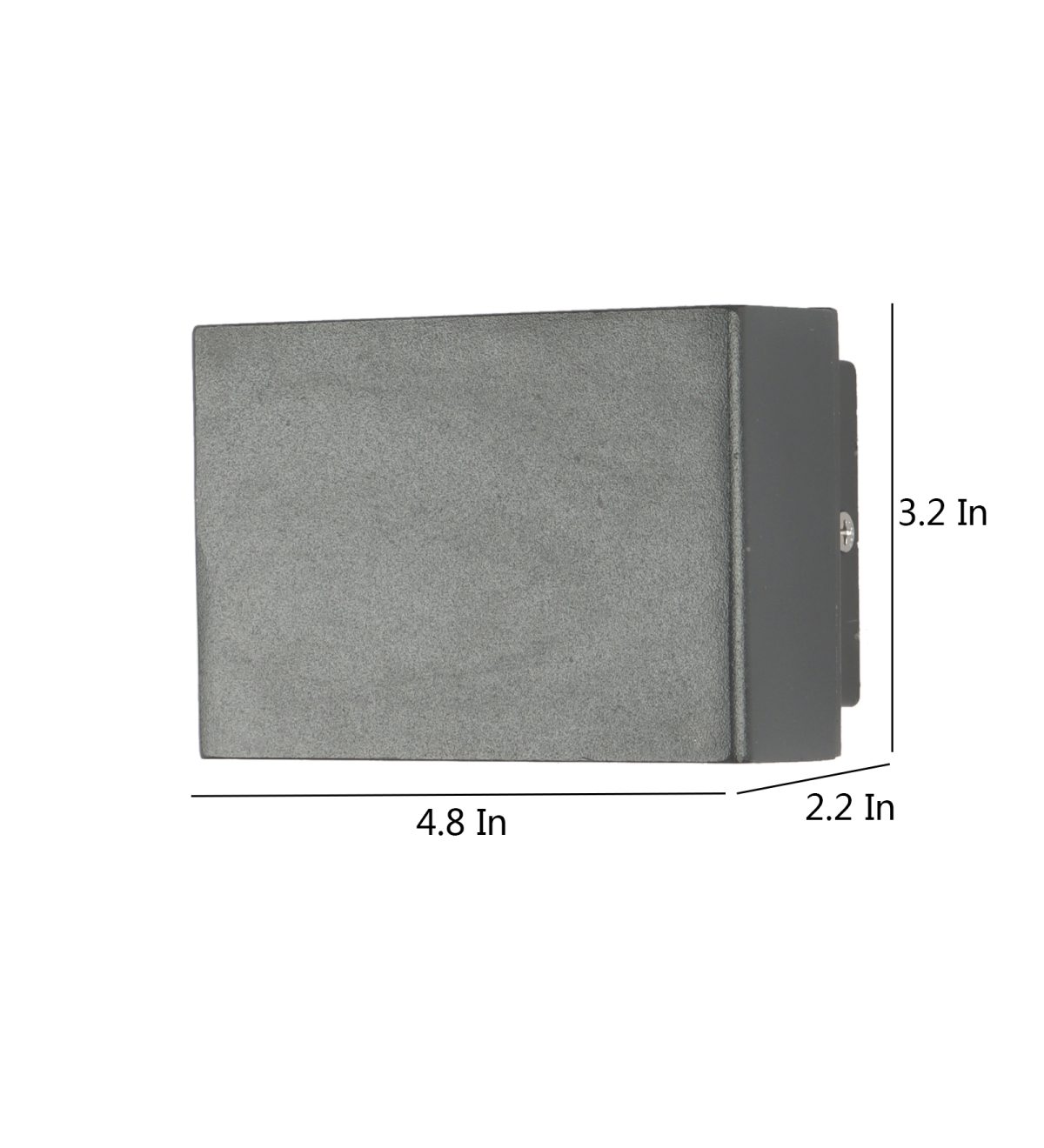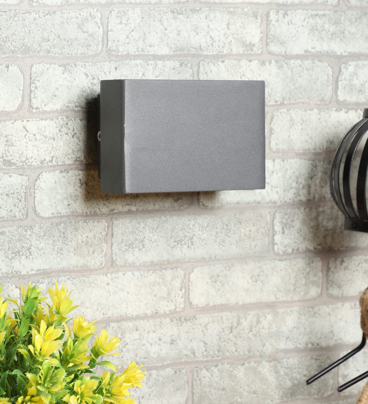 Rectangular up and down aluminum die cast indirect lighting outdoor wall light in grey finish using high quality LED and driver with high success rate having less than 0.5% replacement. It is a two way light It can be used in both indoor and outdoor applications such as stair case walls, terrace walls, outdoor walls, boundary walls, open parking, stilt parking, basement parking, passage walls, entrance pillars. IP54 rated. Protection against splashed water can be customized as per requirement for bulk quantities.