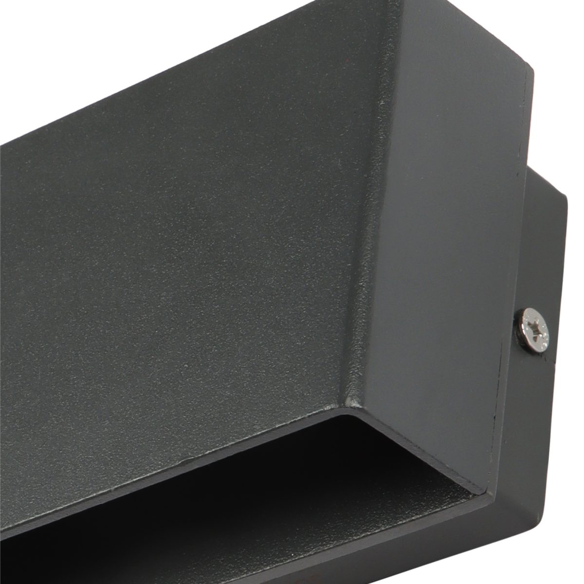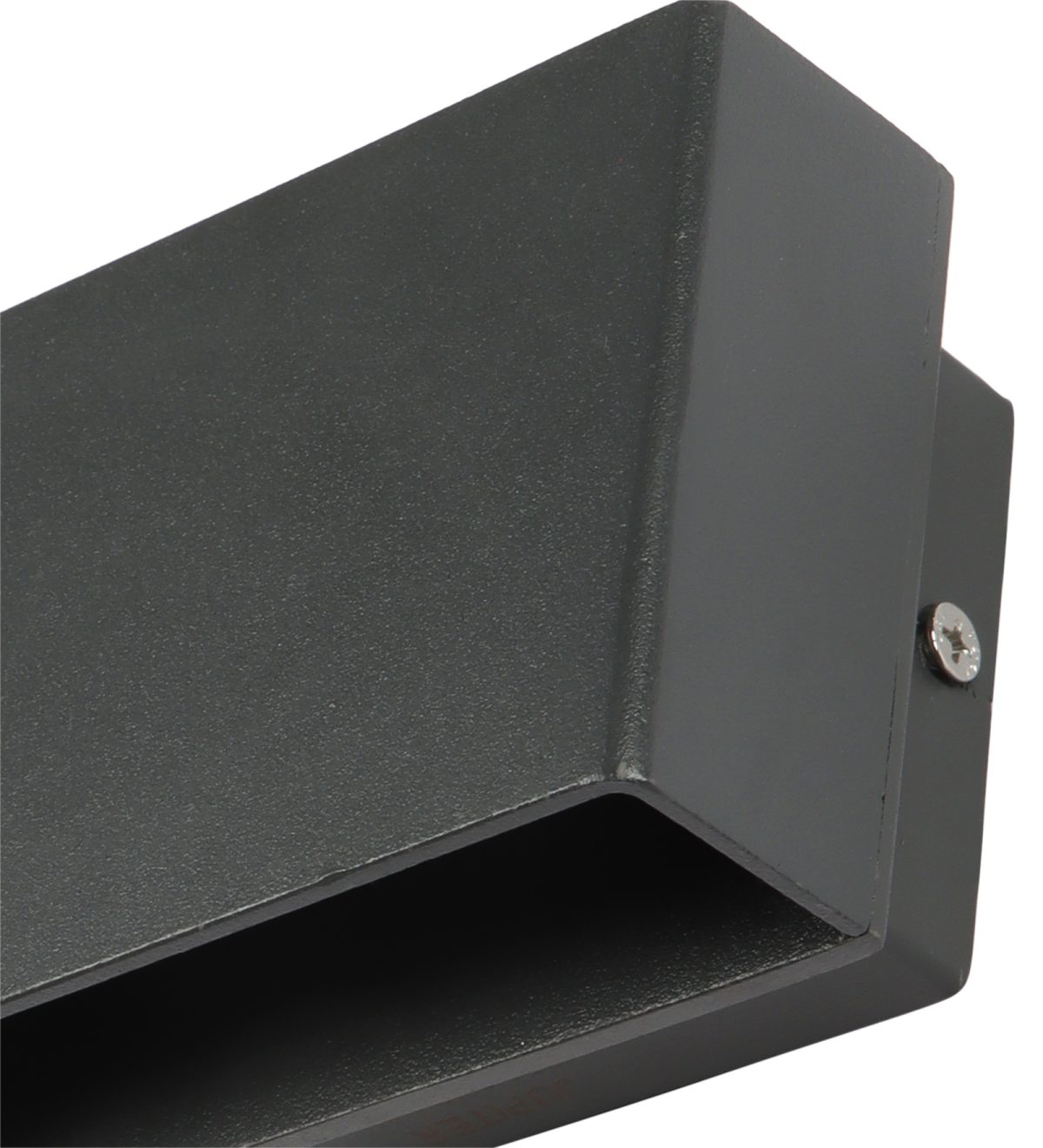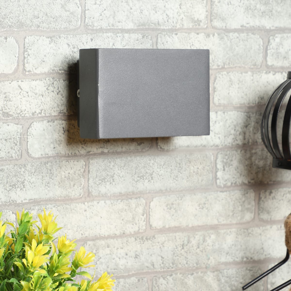 Rectangular up and down aluminum die cast indirect lighting outdoor wall light in grey finish using high quality LED and driver with high success rate having less than 0.5% replacement. It is a two way light It can be used in both indoor and outdoor applications such as stair case walls, terrace walls, outdoor walls, boundary walls, open parking, stilt parking, basement parking, passage walls, entrance pillars. IP54 rated. Protection against splashed water can be customized as per requirement for bulk quantities.
