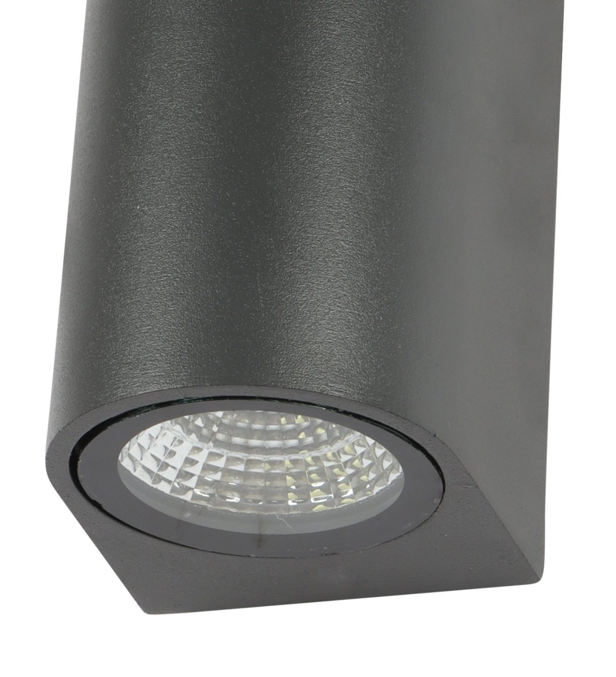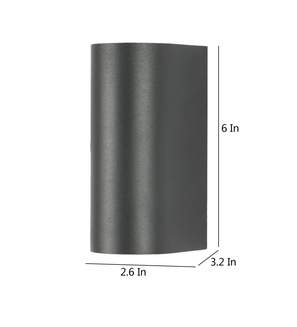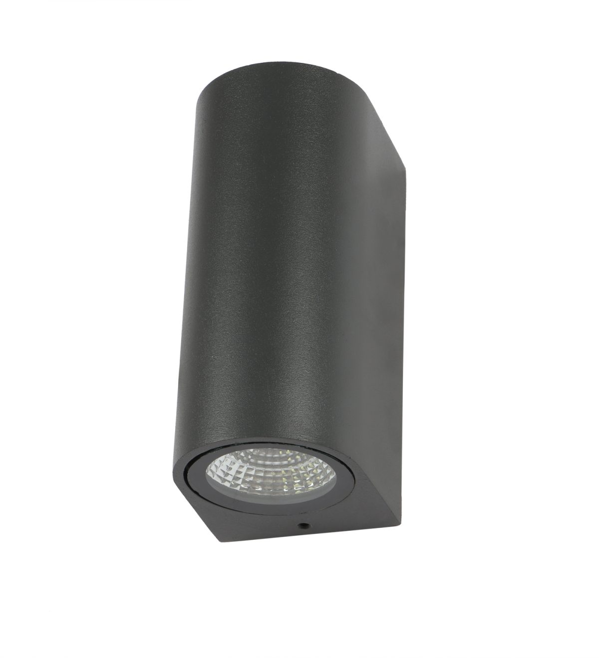 Vertical, round, two way up and down aluminum die cast outdoor wall light in grey finish using high quality LED and driver with high success rate having less than 0.5% replacement. It is a two way light with high output having 5W COB with reflector for more light output. It is economical and one of the most popular design preferred by the lighting designers, builders and architects. It can be used in both indoor and outdoor applications such as stair case walls, terrace walls, outdoor walls, boundary walls, open parking, stilt parking, basement parking, passage walls, entrance pillars. Also available in one way (Code WL2503). IP54 rated. Protection against splashed water can be customized as per requirement for bulk quantities.