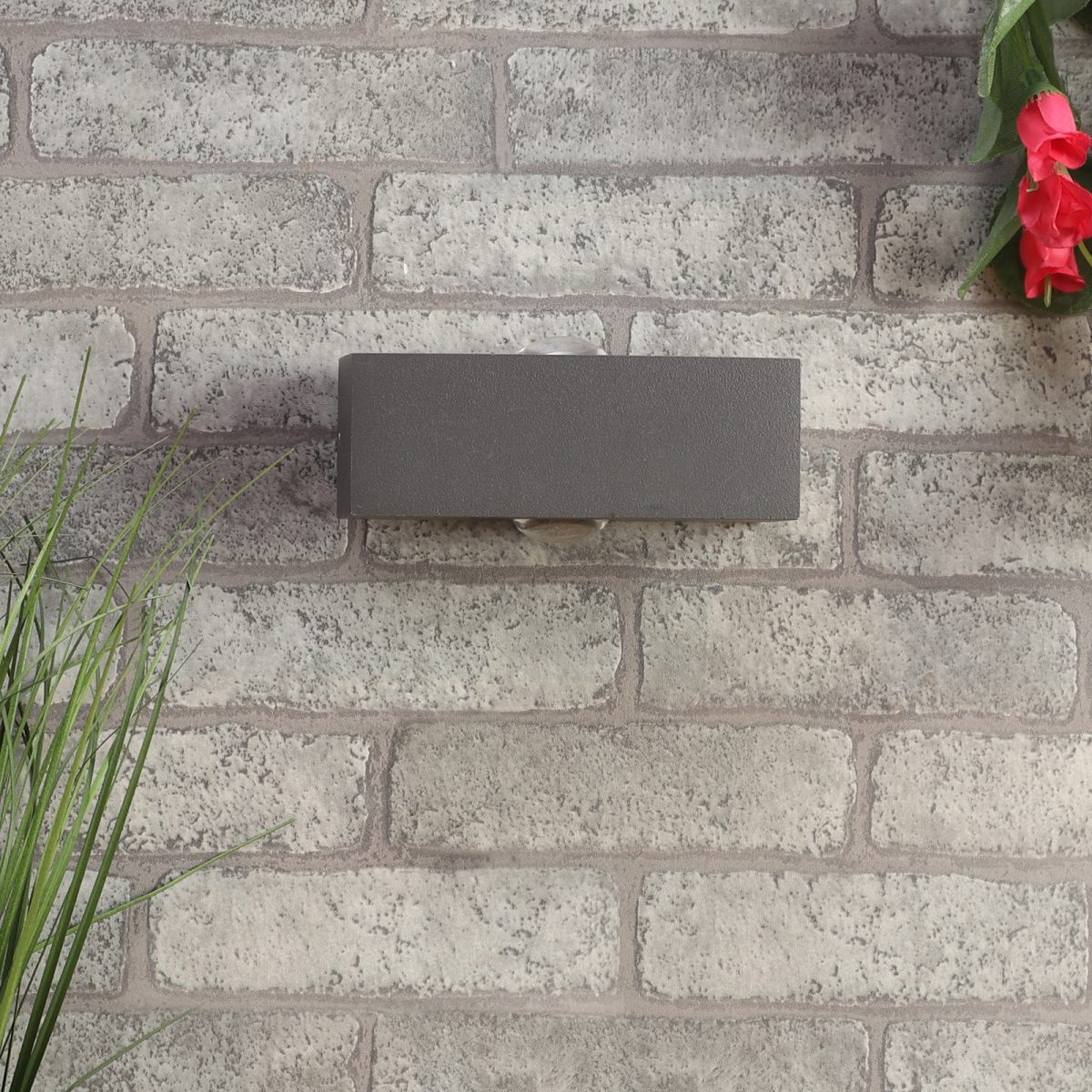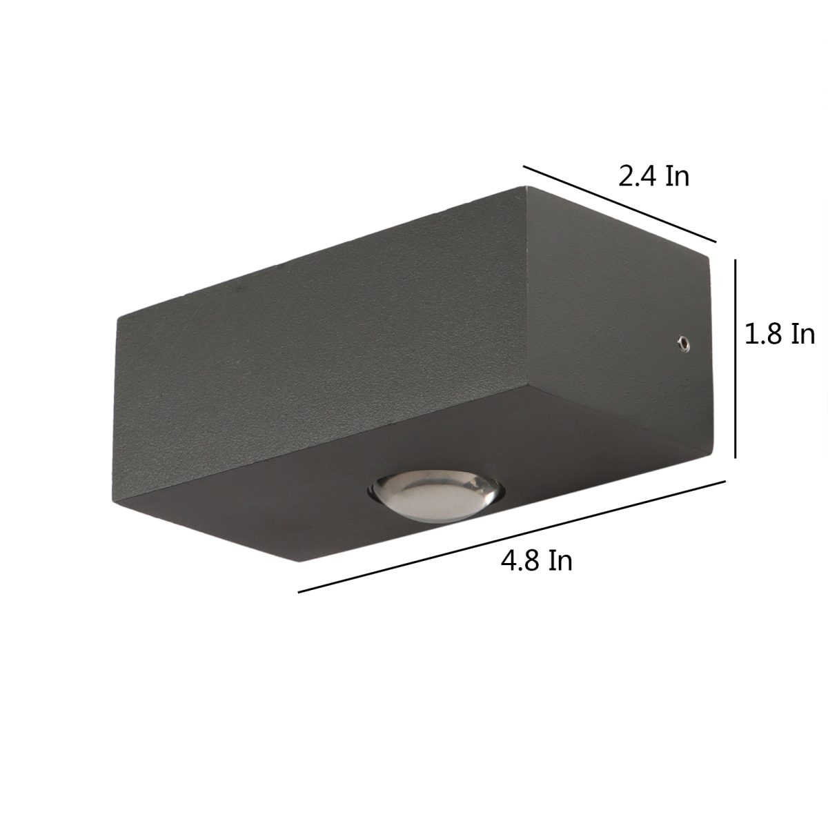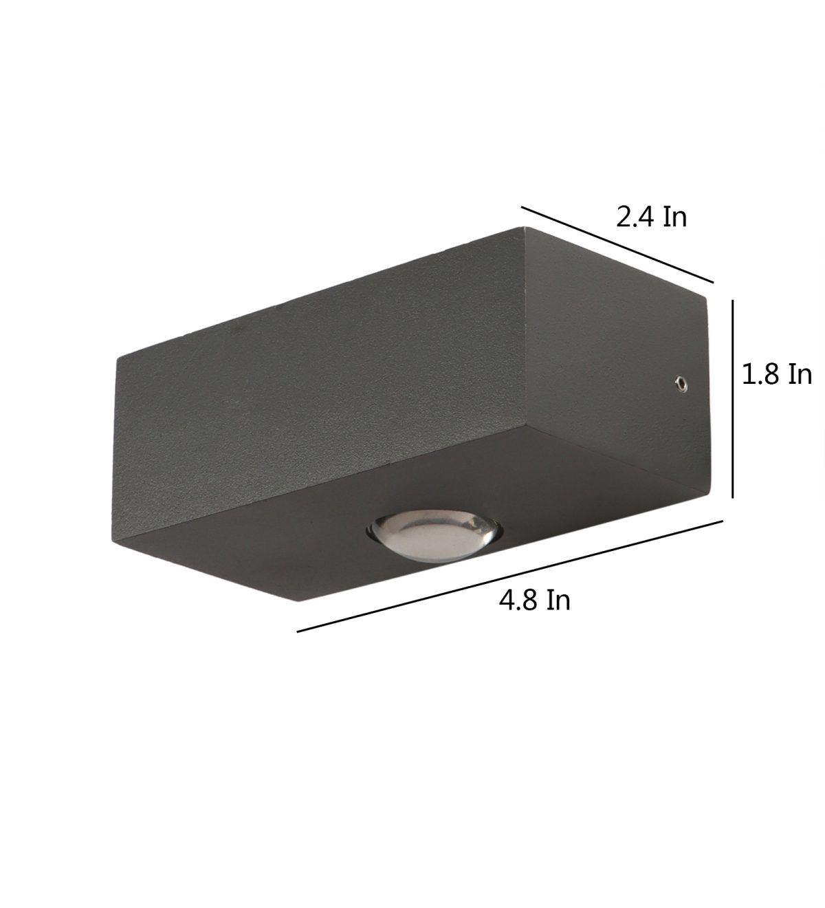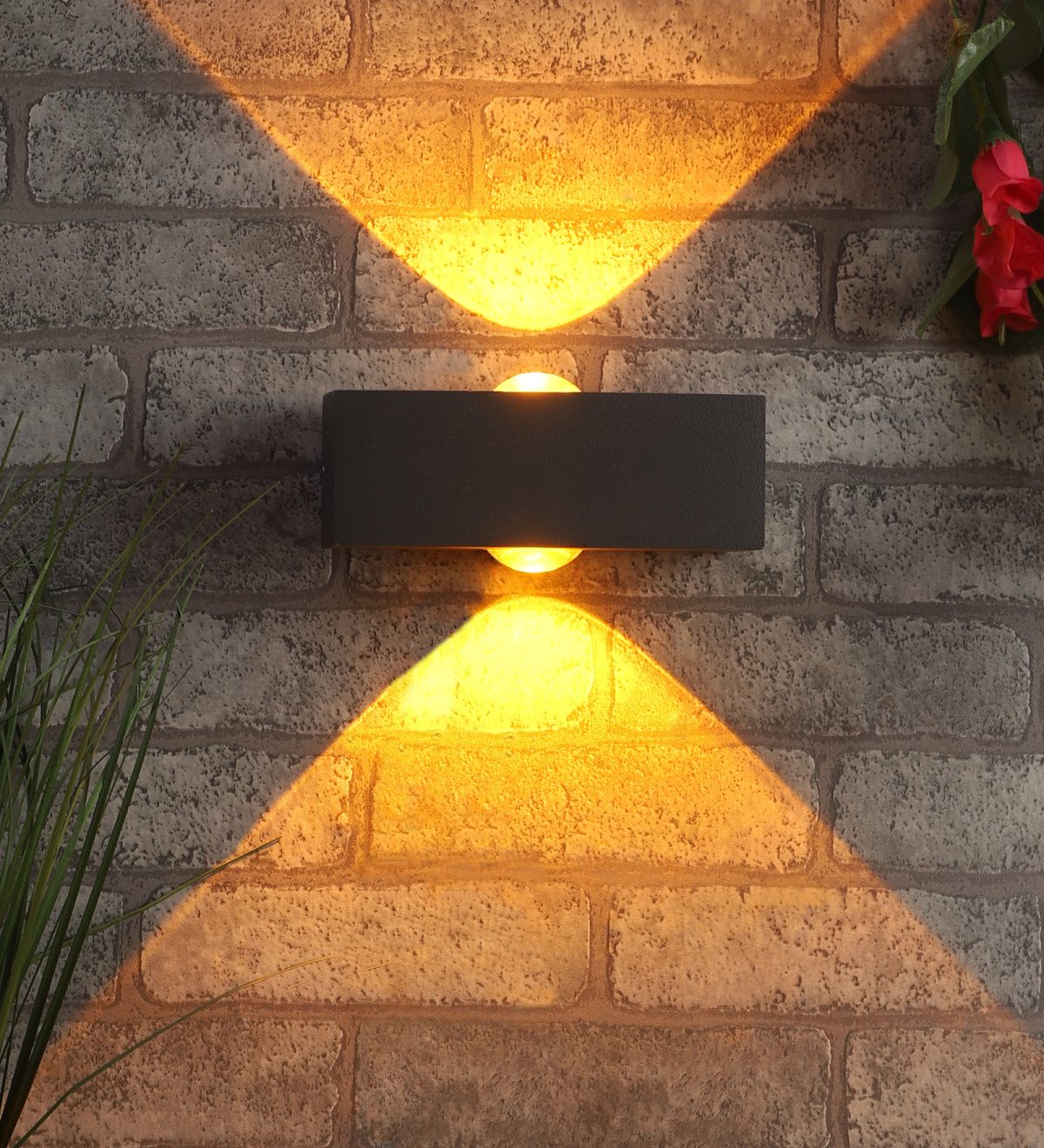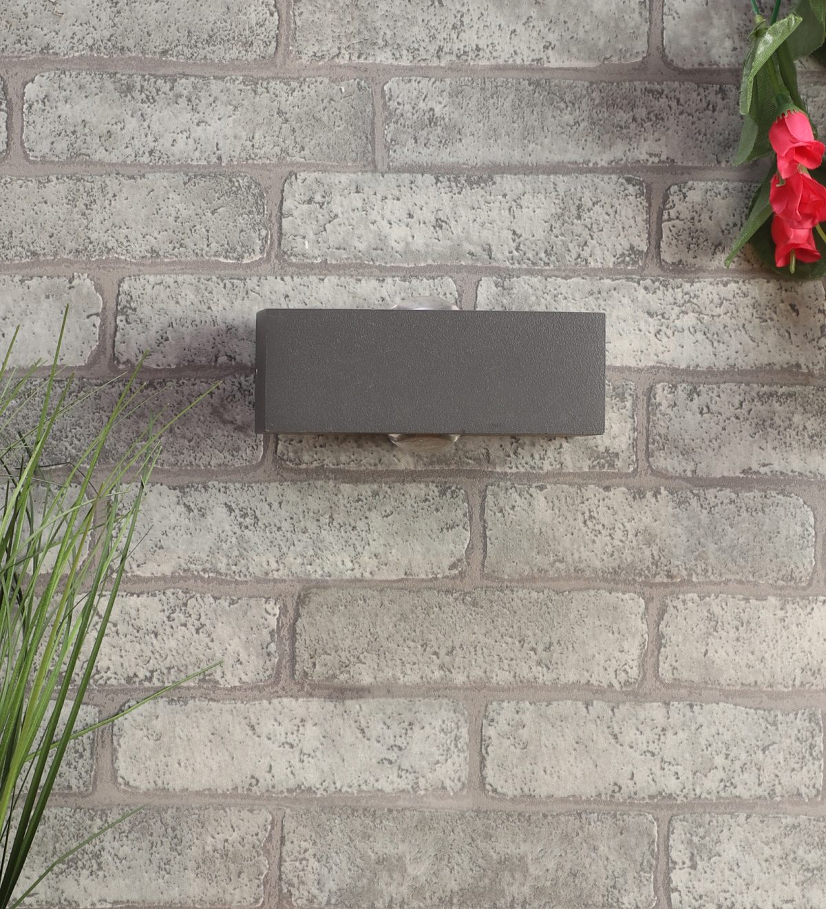 Up and down aluminum die cast outdoor wall light in gray finish using high quality LED and driver with high success rate having less than 0.5% replacement. It is a two way light with high light output creating a defined beam for a good visual effect. It is economical and one of the most popular design preferred by the lighting designers, builders and architects. It can be used in both indoor and outdoor applications such as stair case walls, terrace walls, outdoor walls, boundary walls, open parking, stilt parking, basement parking, passage walls, entrance pillars. IP54 rated. Protection against splashed water can be customized as per requirement for bulk quantities.