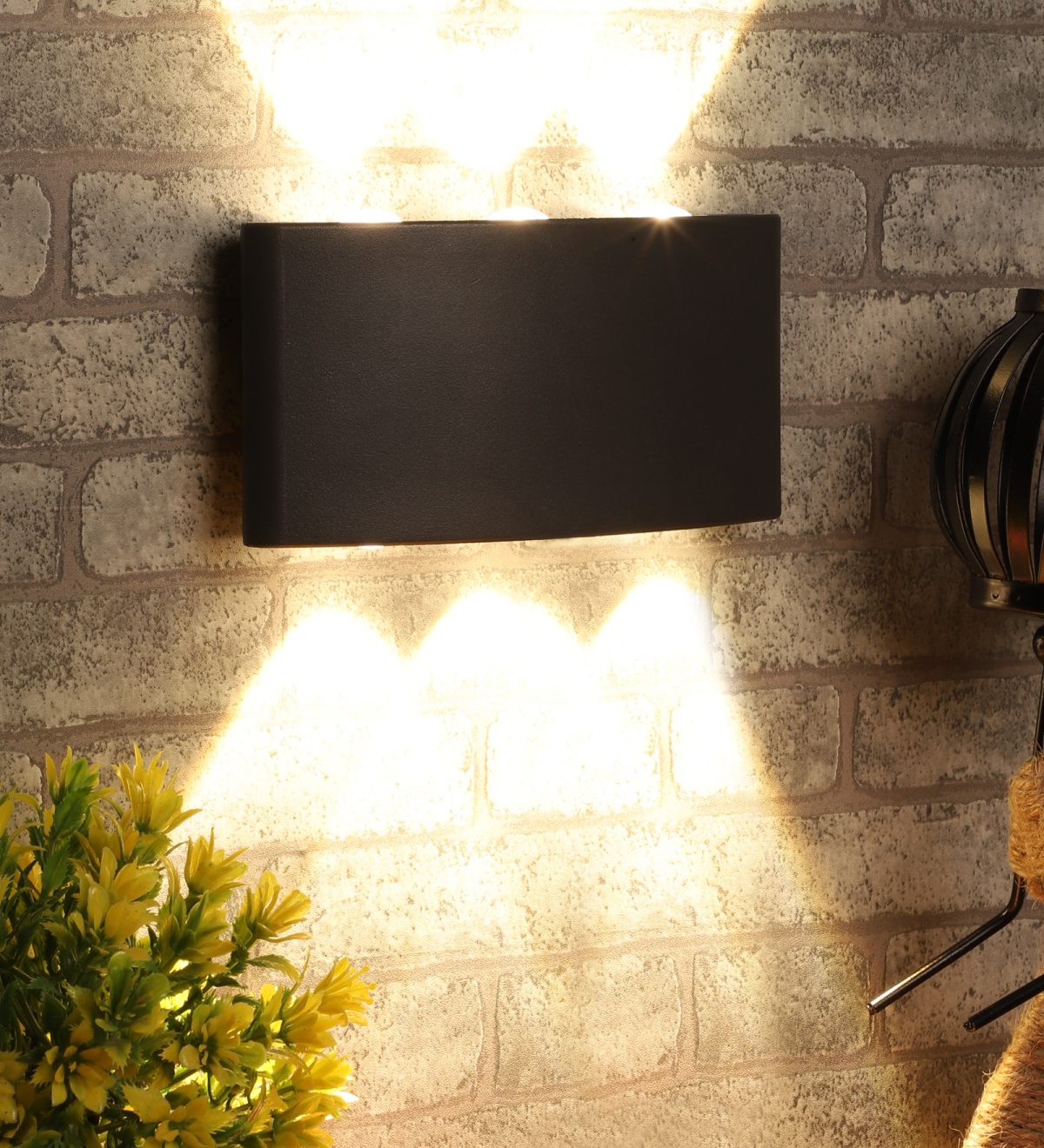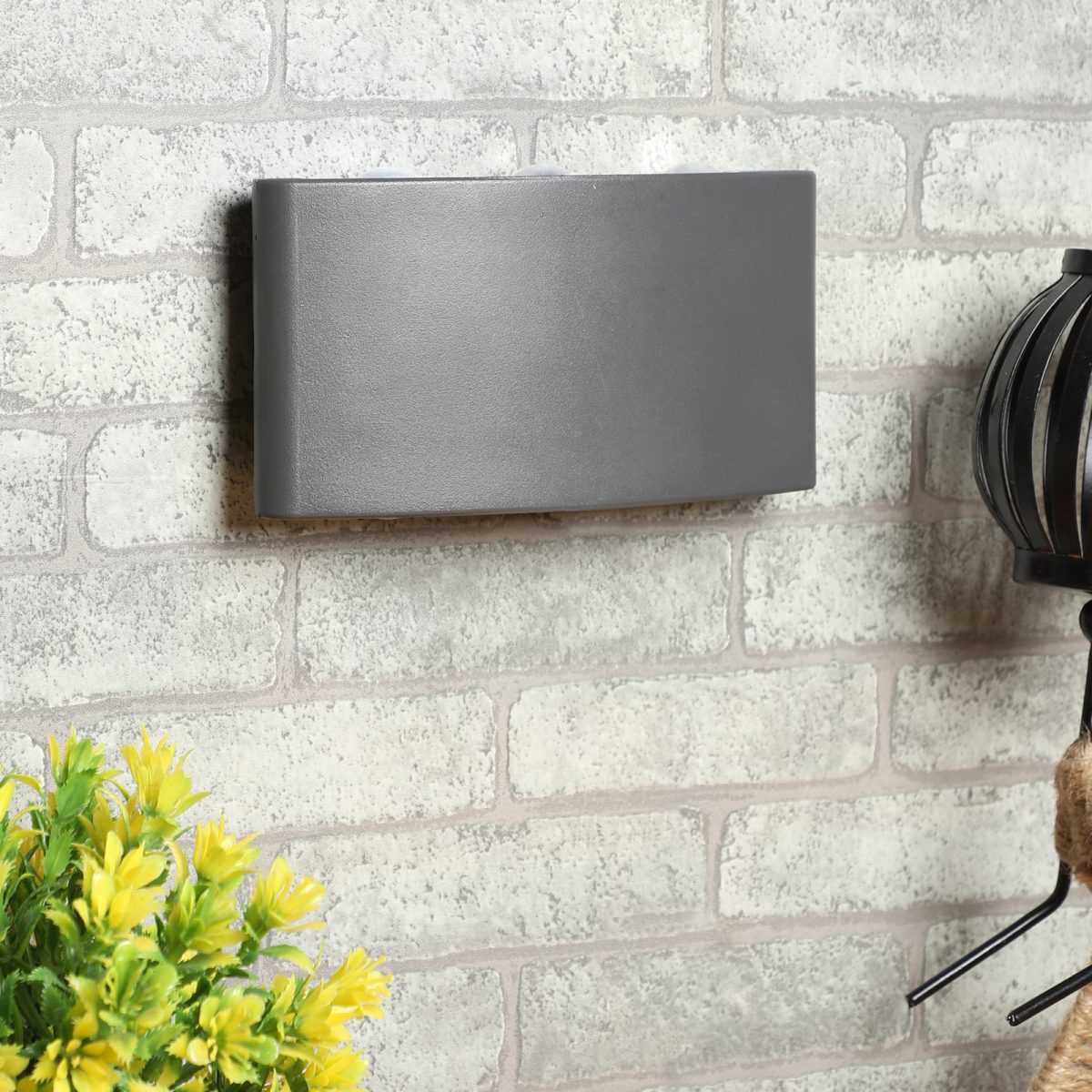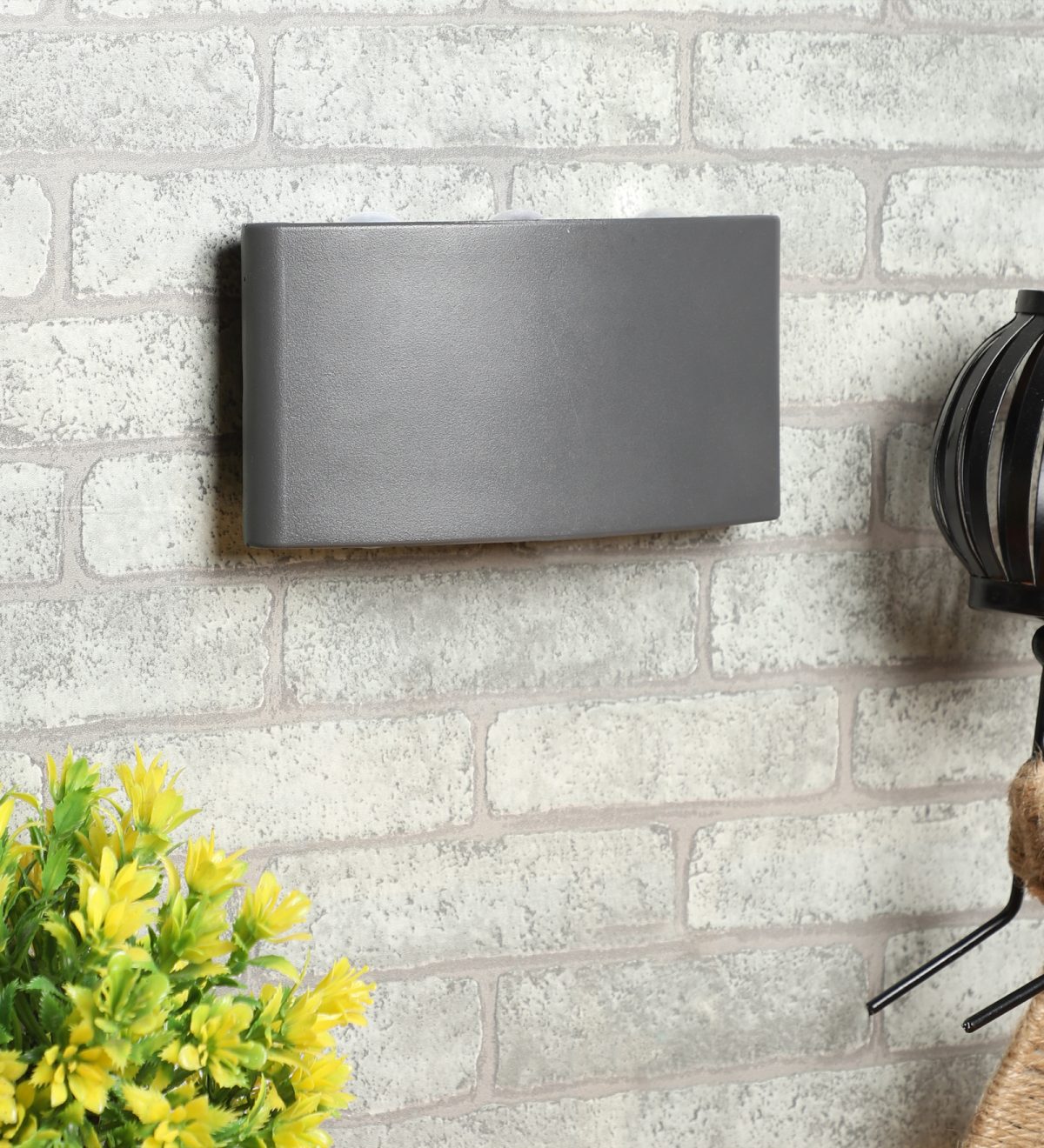 Up and down aluminium die cast outdoor wall light in grey finish using high quality LED and driver with high success rate having less than 0.5% replacement. It is a two way light with high light output creating a defined beam in warm white (yellow) light output in both the directions for a great visual effect. It can be used in both indoor and outdoor applications such as stair case walls, terrace walls, outdoor walls, boundary walls, open parking, stilt parking, basement parking, passage walls, entrance pillars. IP 54 rated. Protection against splashed water can be customized as per requirement for bulk quantities.