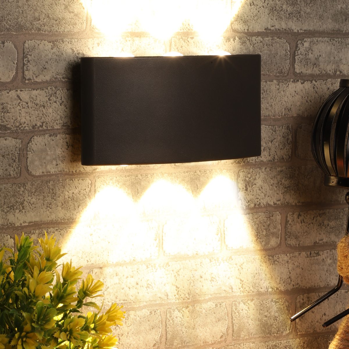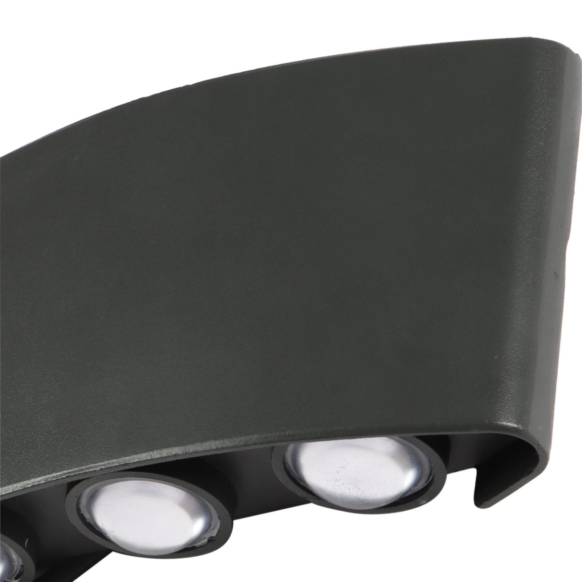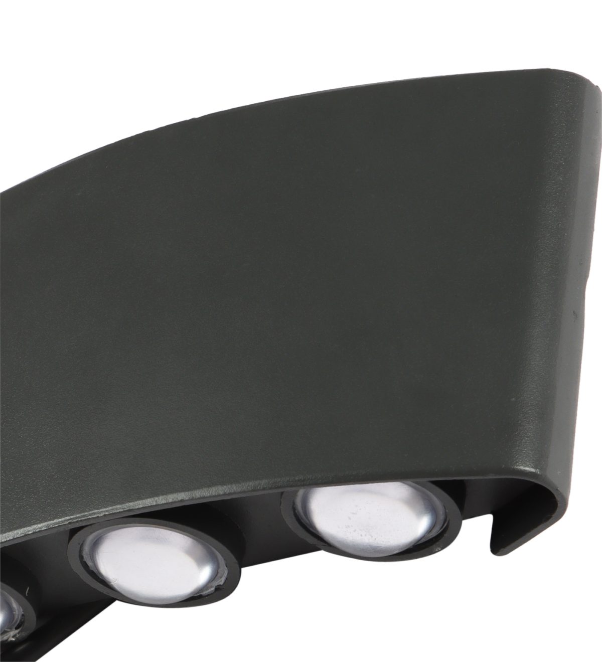 Up and down aluminium die cast outdoor wall light in grey finish using high quality LED and driver with high success rate having less than 0.5% replacement. It is a two way light with high light output creating a defined beam in warm white (yellow) light output in both the directions for a great visual effect. It can be used in both indoor and outdoor applications such as stair case walls, terrace walls, outdoor walls, boundary walls, open parking, stilt parking, basement parking, passage walls, entrance pillars. IP 54 rated. Protection against splashed water can be customized as per requirement for bulk quantities.